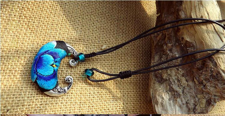 凯崎湘绣手工艺项链 刺绣饰品 民族风工艺锁骨链 少数民族女孩配饰 送礼小礼品饰品 复古红色包装款 天蓝色 领铛款 不含包装