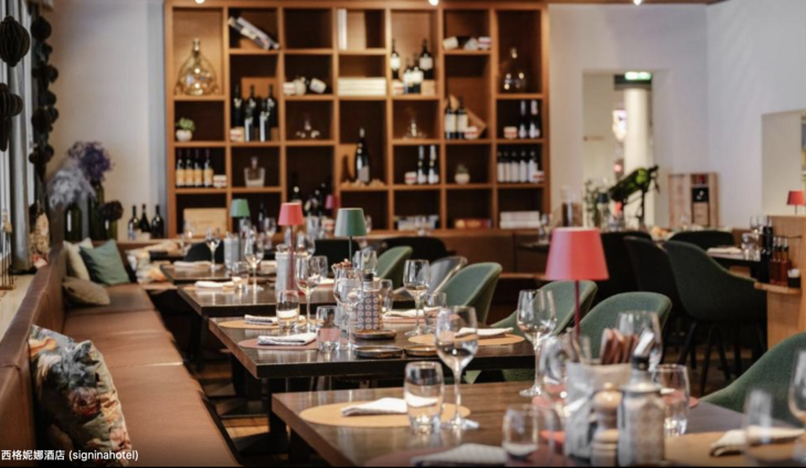 Orto Green Food & Mood餐厅提供大窗户和受大自然启发的背光壁画,供应米兰和意大利经典美食。酒店供应带鸡蛋、培根以及各种冷热饮品的美式早餐。
