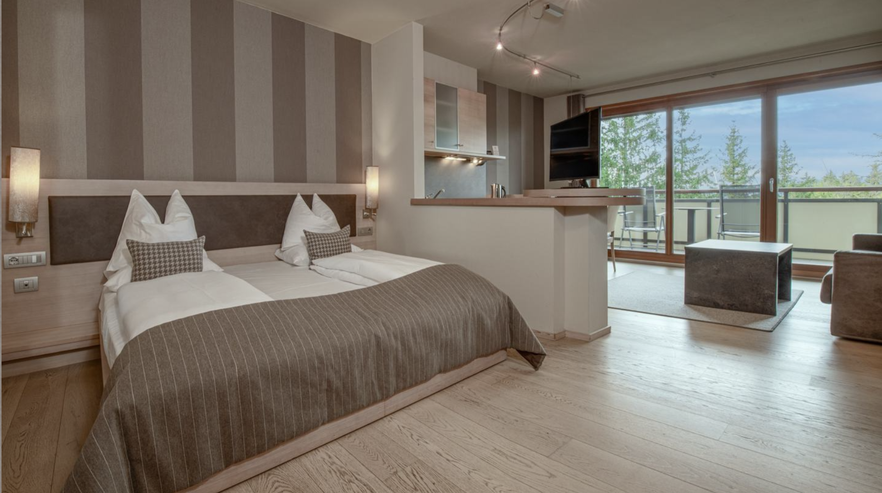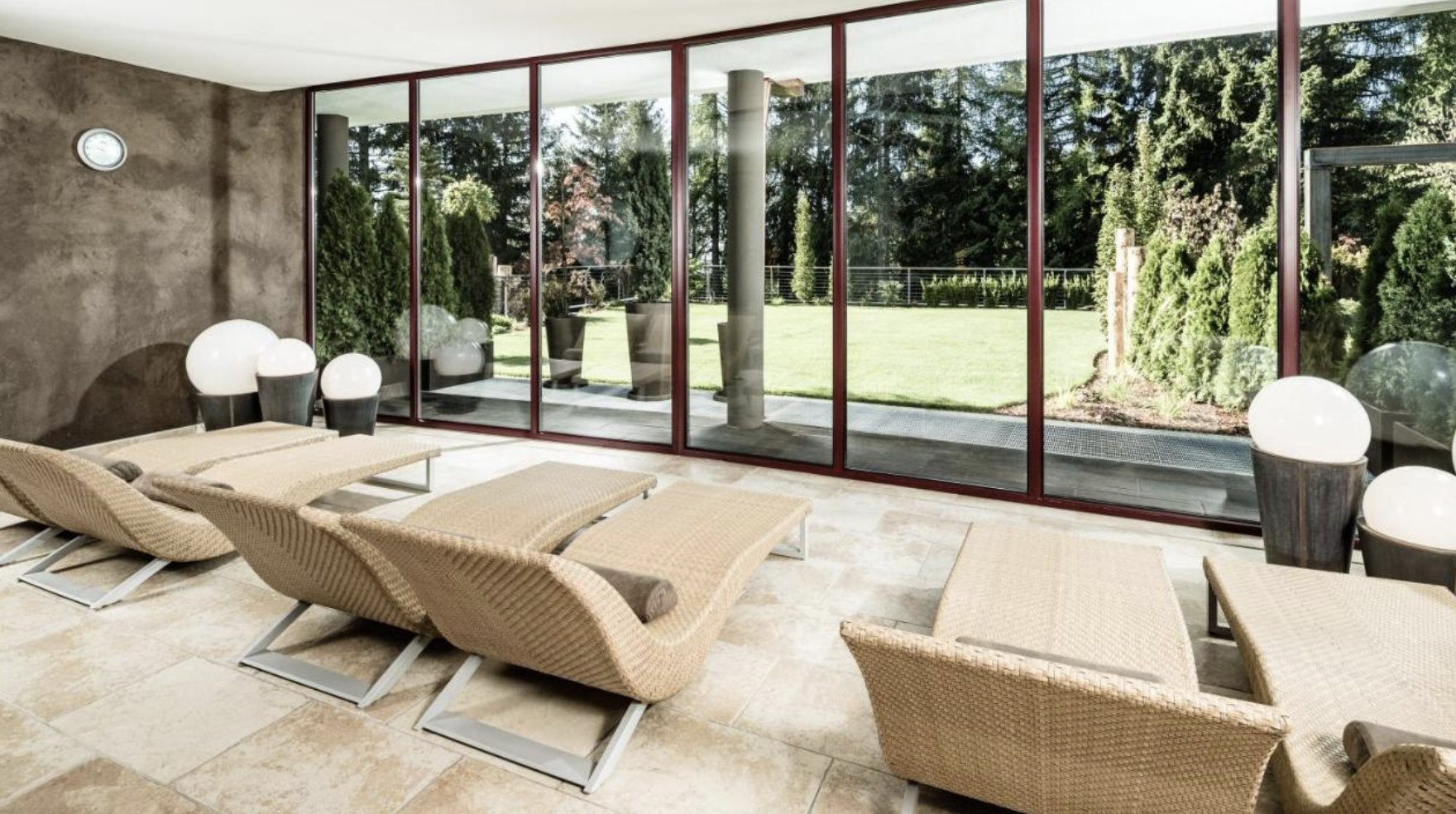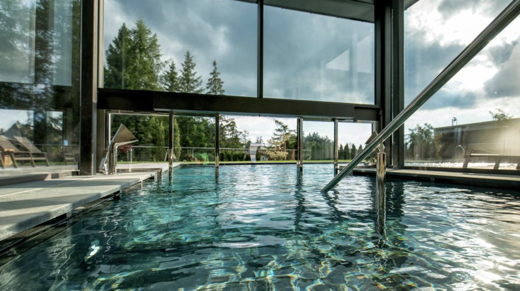 ⛰️森林水疗中心:1.300 平方米的健康区,设有室内和室外游泳池 (34°)、桑拿区、休闲室和观景健身中心