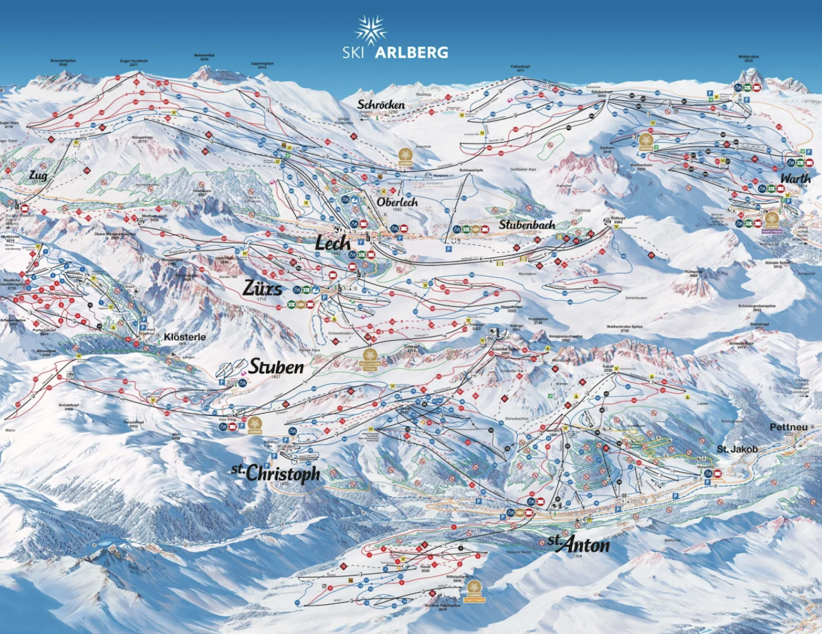 圣安东滑雪场以其高难度的雪道和广阔的野雪区而闻名。这里是全球公认的现代滑雪发源地,每年冬天吸引着无数滑雪高手前来朝拜,雪场的after party也非常受欢迎。