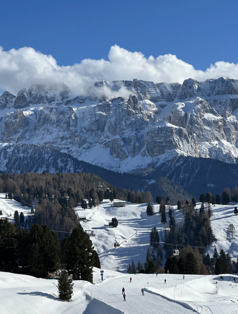 在 Dolomiti Superski 滑雪不仅是一次运动冒险,更是一次沉浸在令人惊叹的全景之中。想象一下,沿着山坡走下去,周围环绕着雄伟的山峰,例如马尔莫拉达和Tre Cime di Lavaredo,它们在蓝天的衬托下雄伟地升起。赛道的每一个弯道都展现出新的景色,冷杉林、迷人的山谷与冰雪覆盖的景观交替出现。