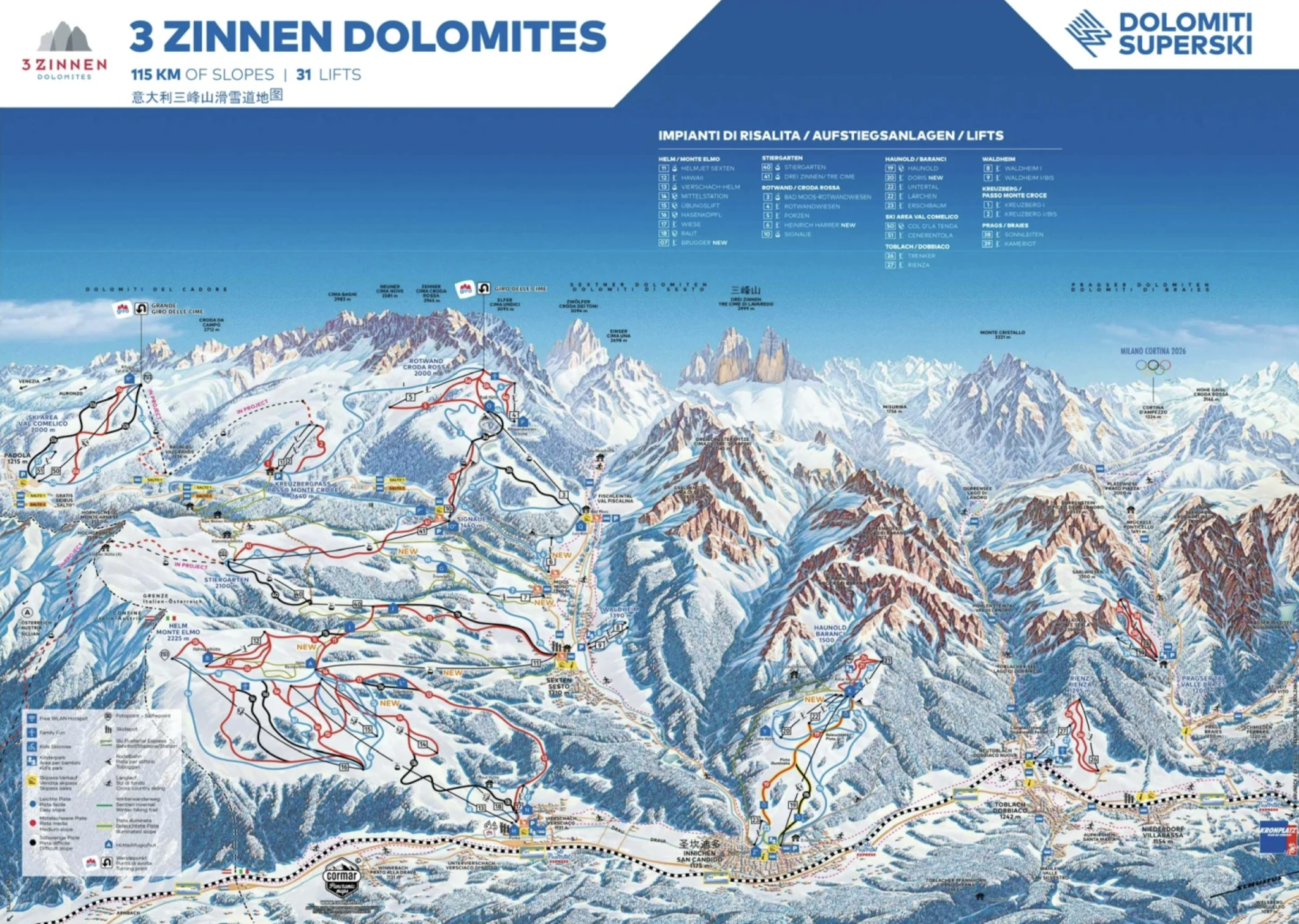 对于更大胆的人来说, Cortina d’Ampezzo 和 3 Zinnen 的黑色斜坡提供令人肾上腺素飙升的下坡,非常适合测试大家的滑雪水平。