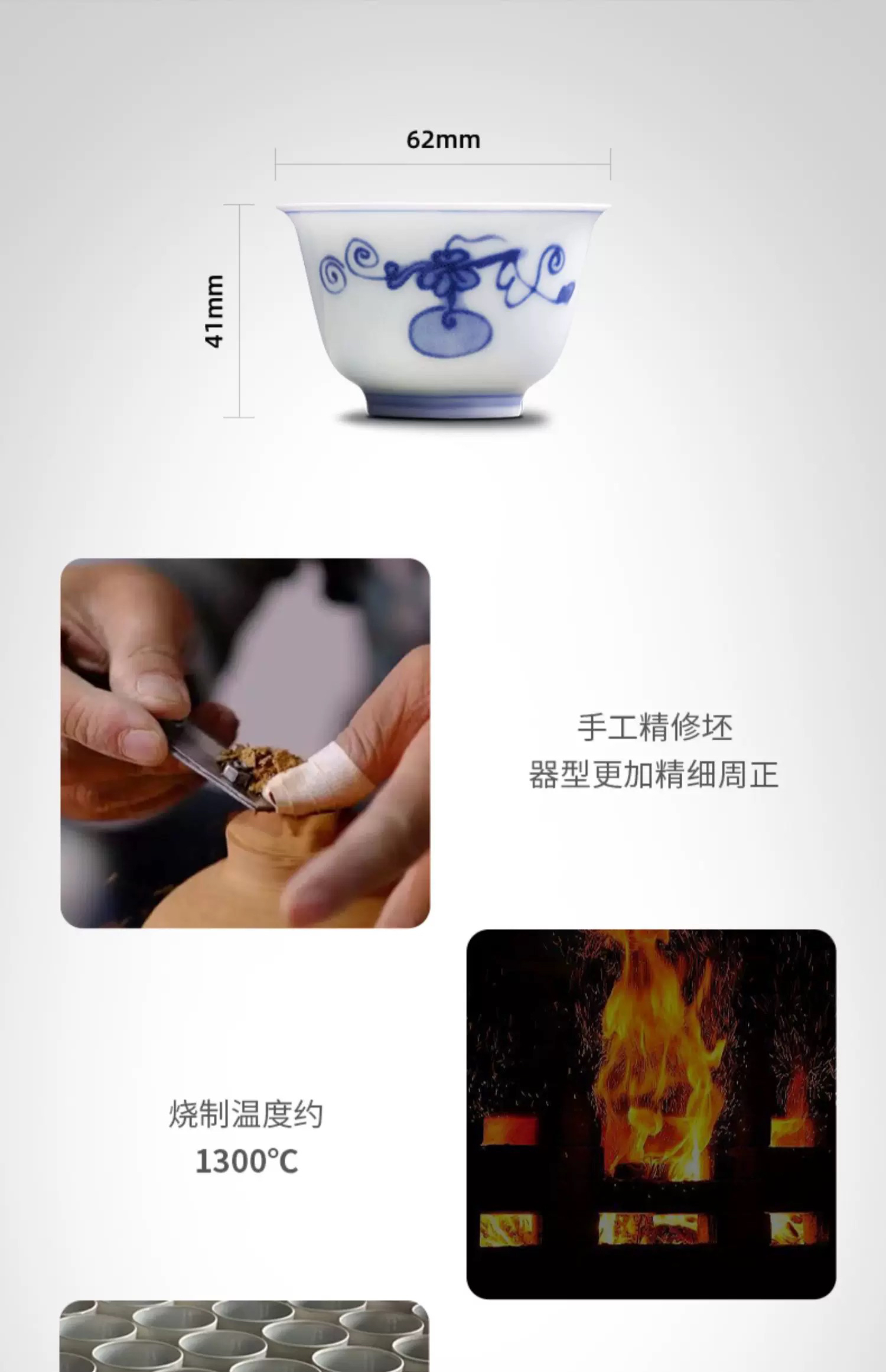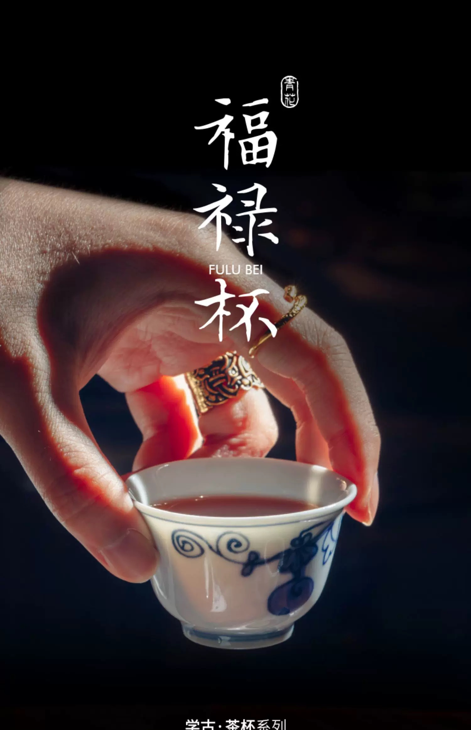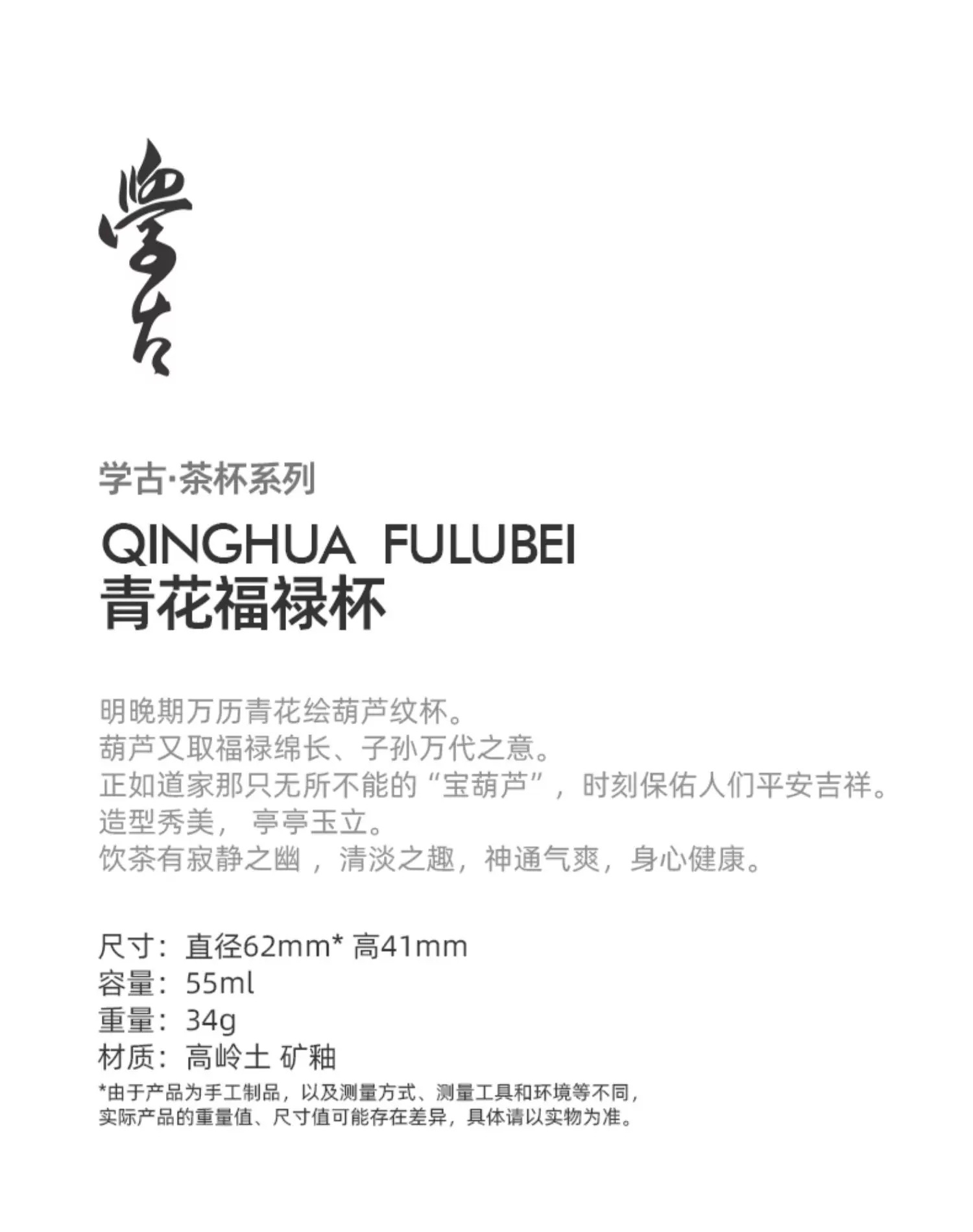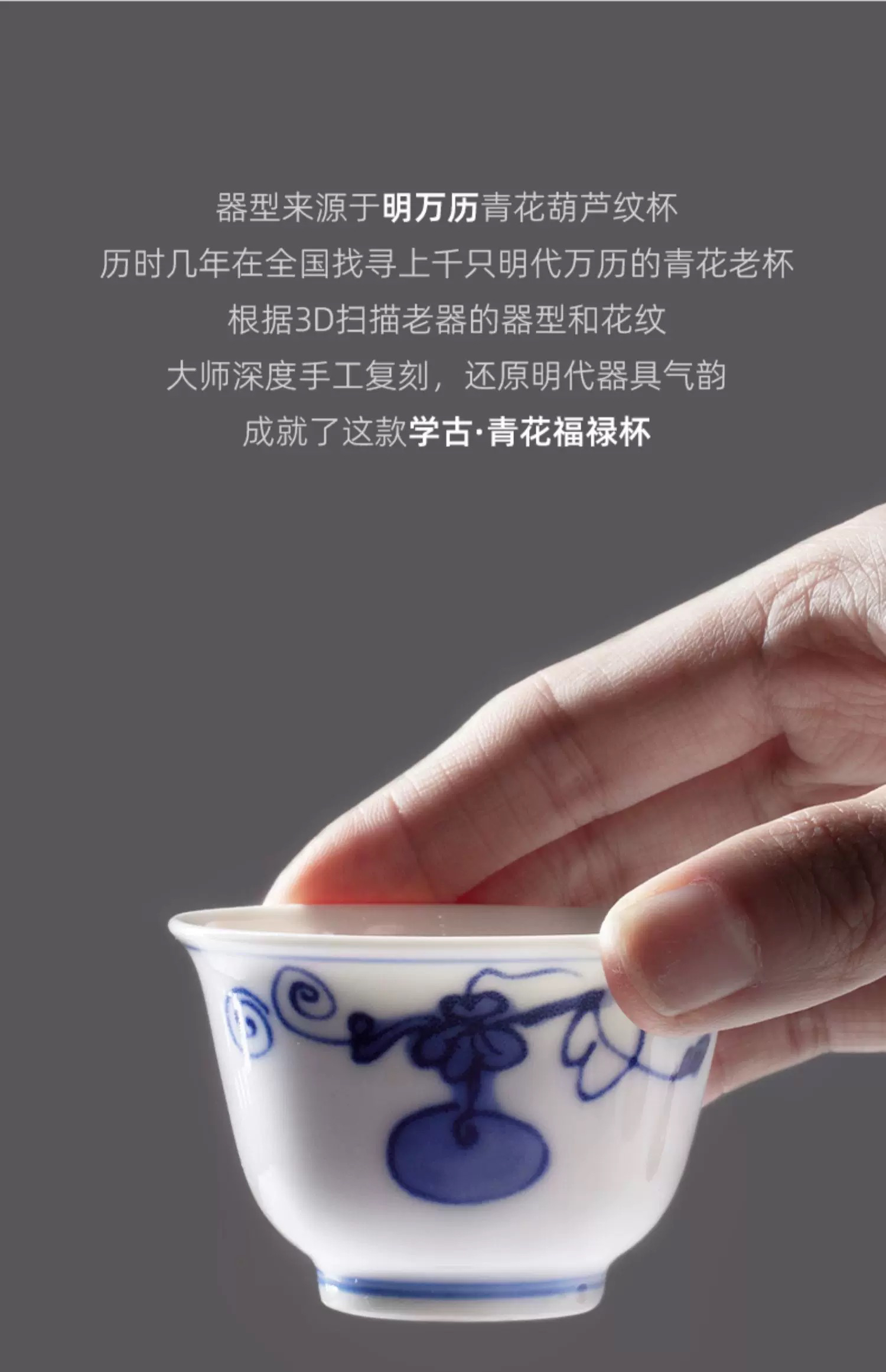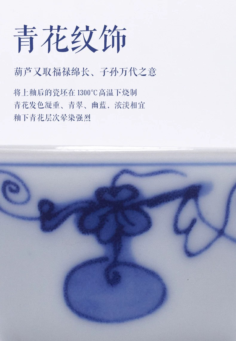 学古|青花福禄杯 手工仿明代万历器型景德镇瓷茶杯 6只礼盒装