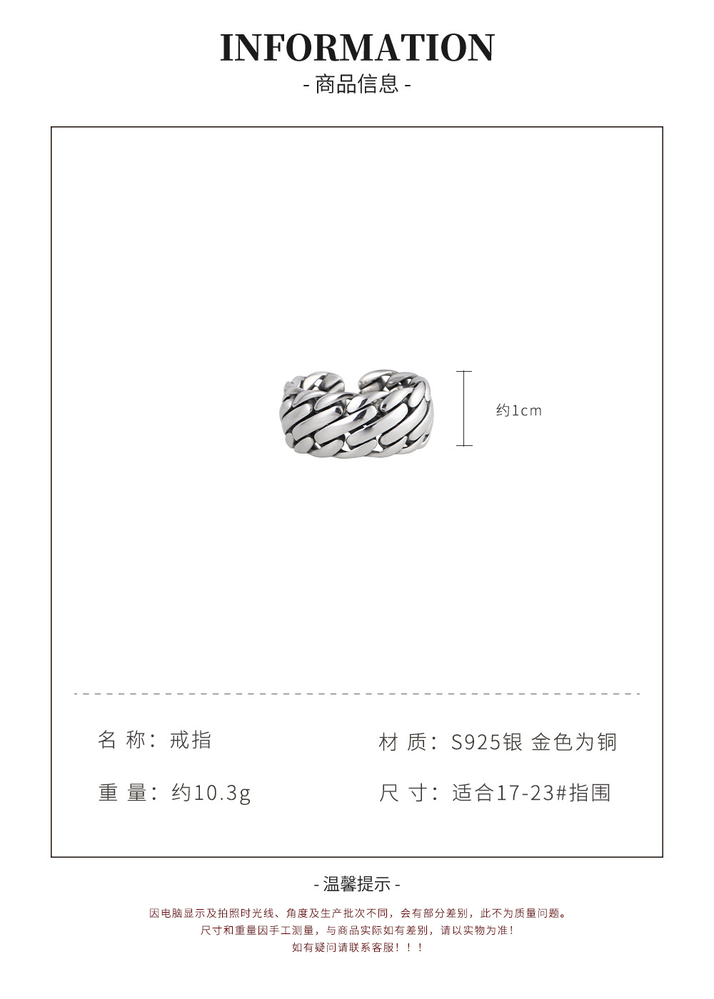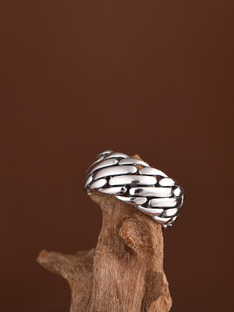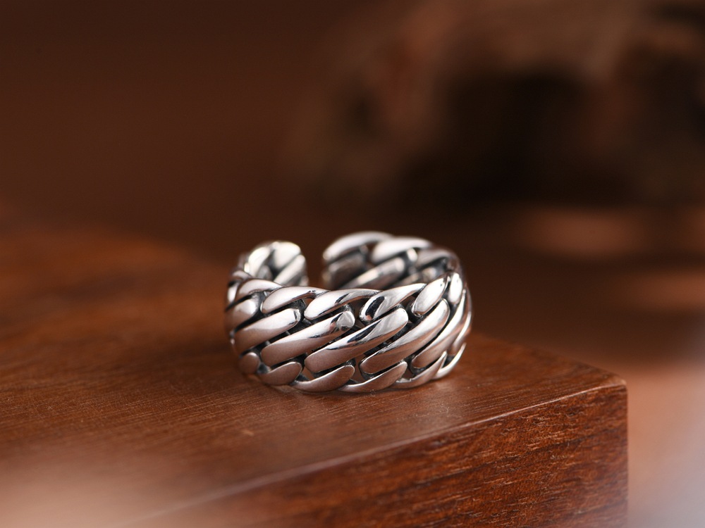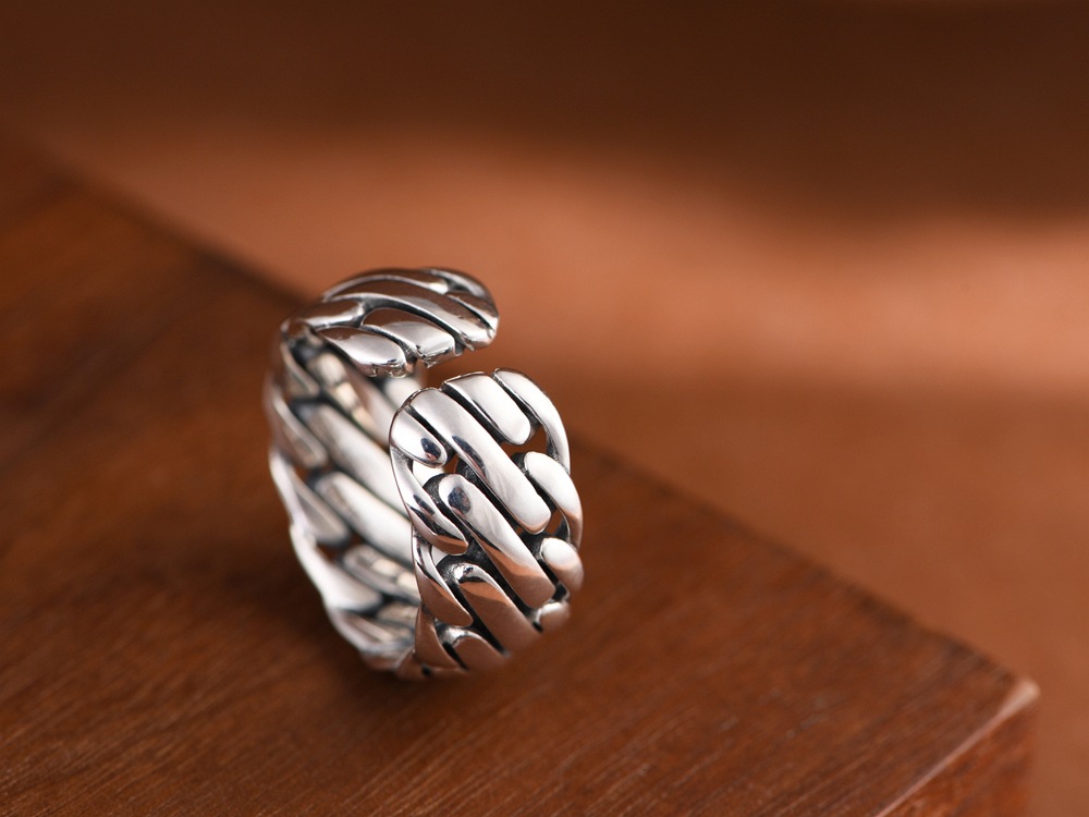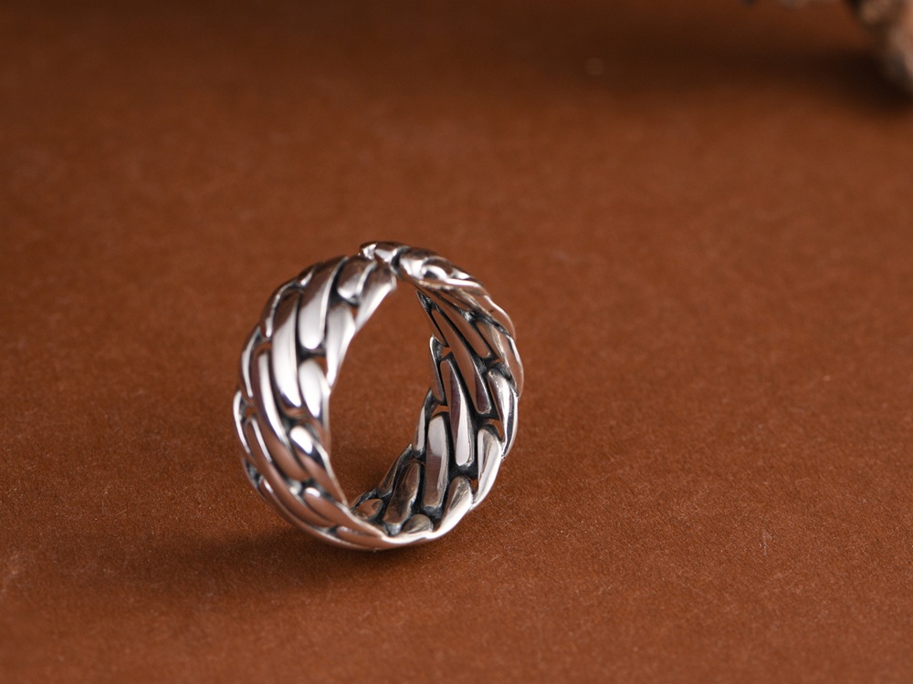 【容安】S925银复古精工编织开口戒指【SCH-SY24254】