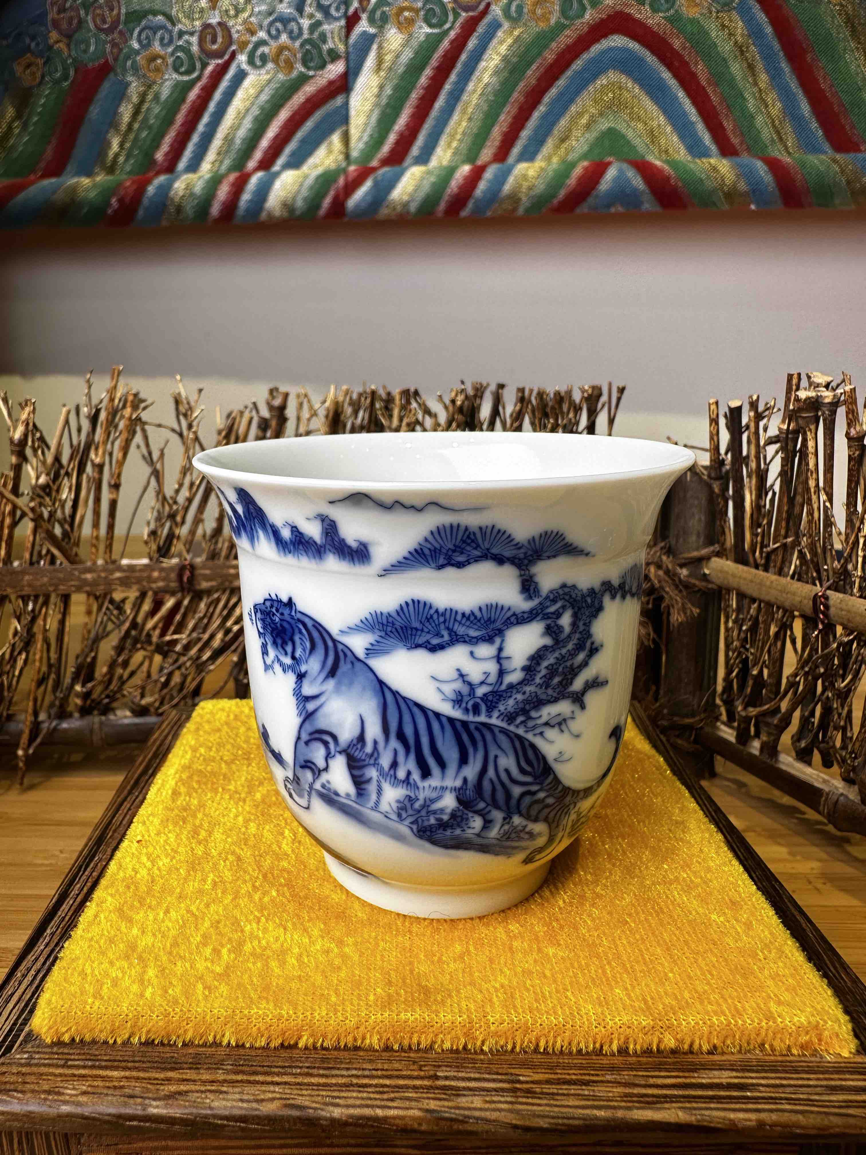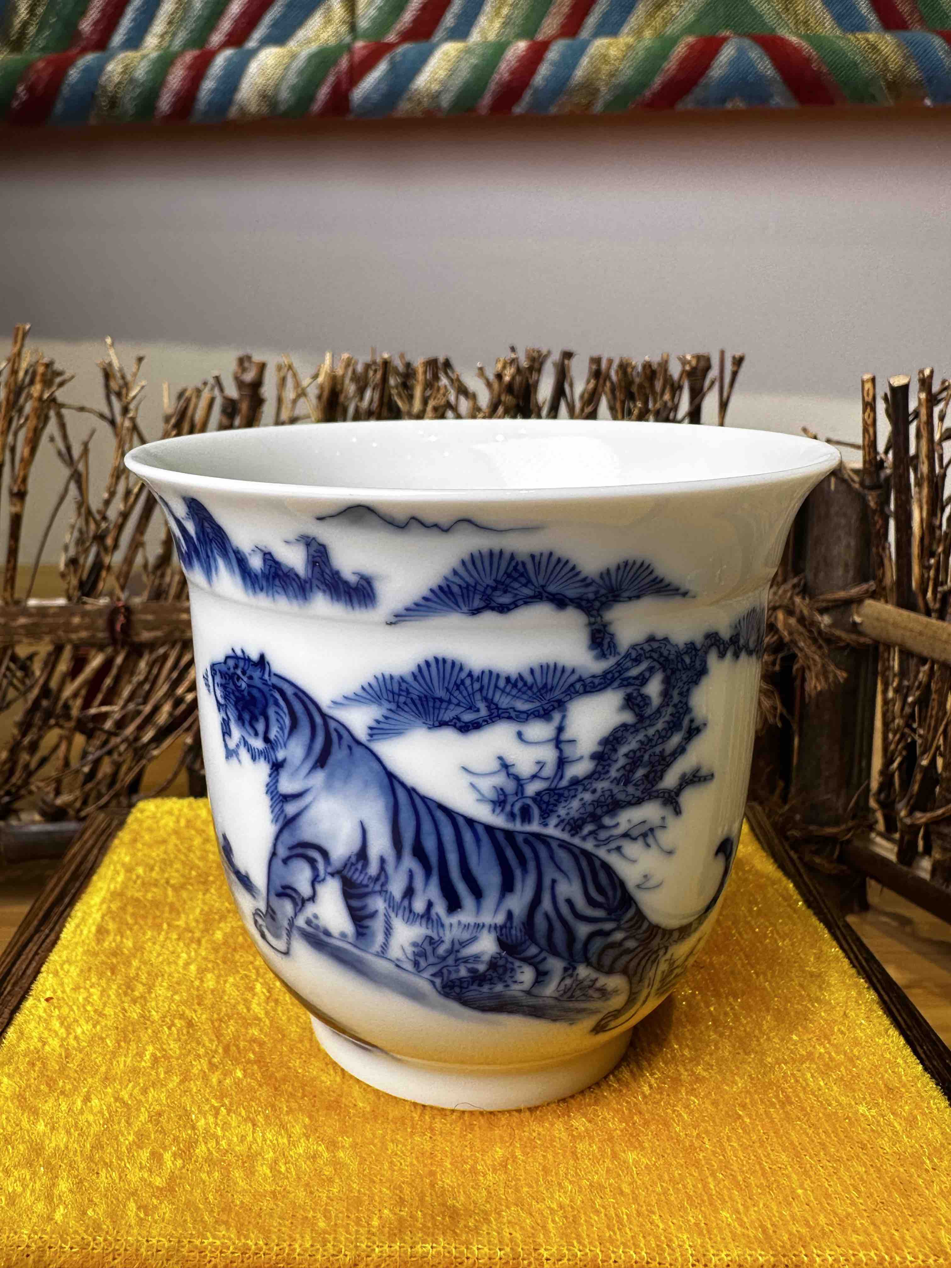 青花老虎手绘品杯