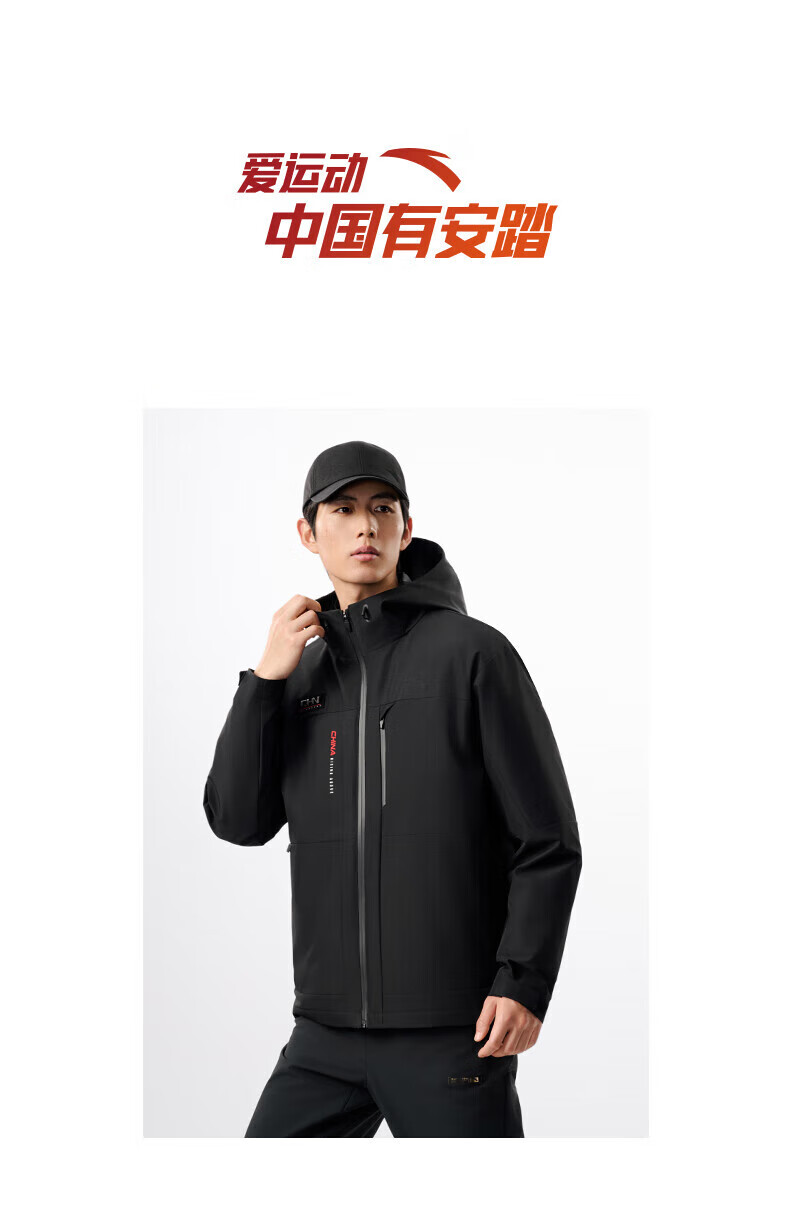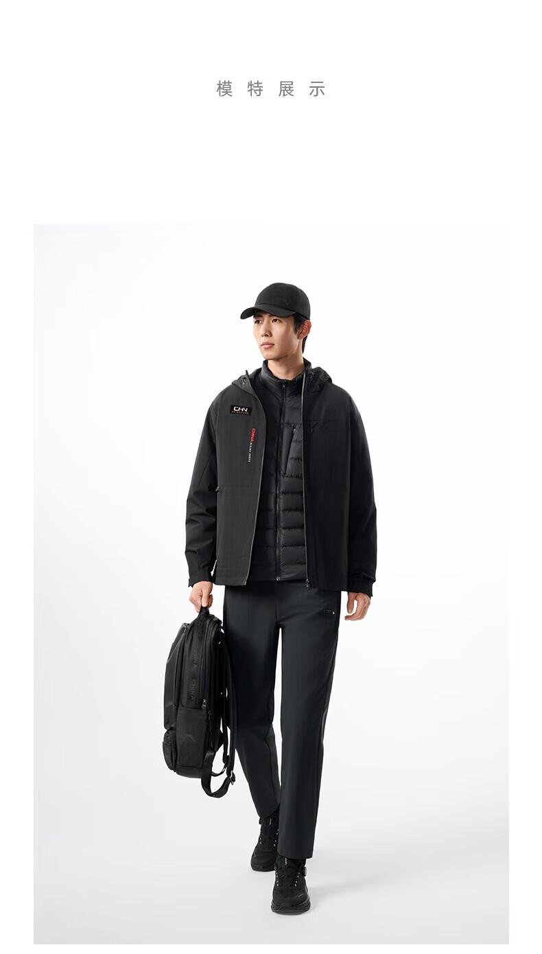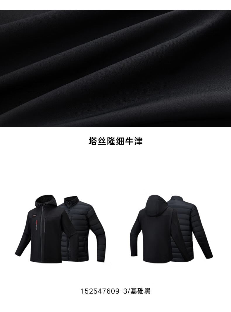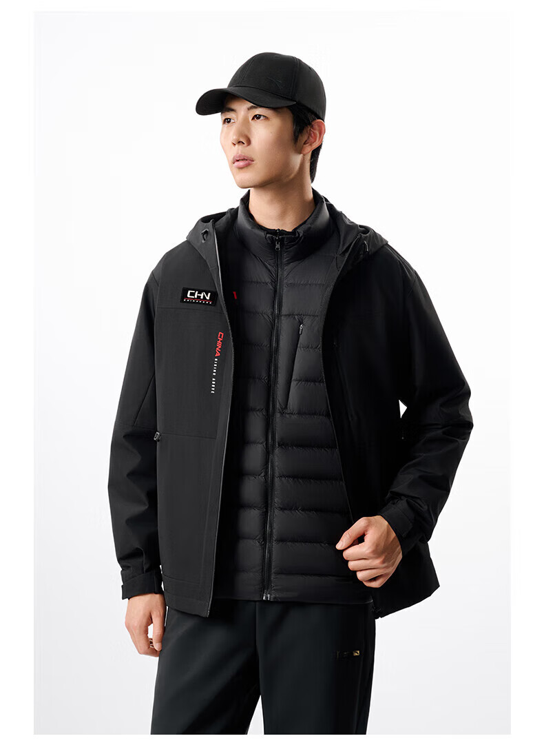 安踏三合一羽绒内胆外套男装冬季新款叠穿运动服两件套152547609 基础黑-3