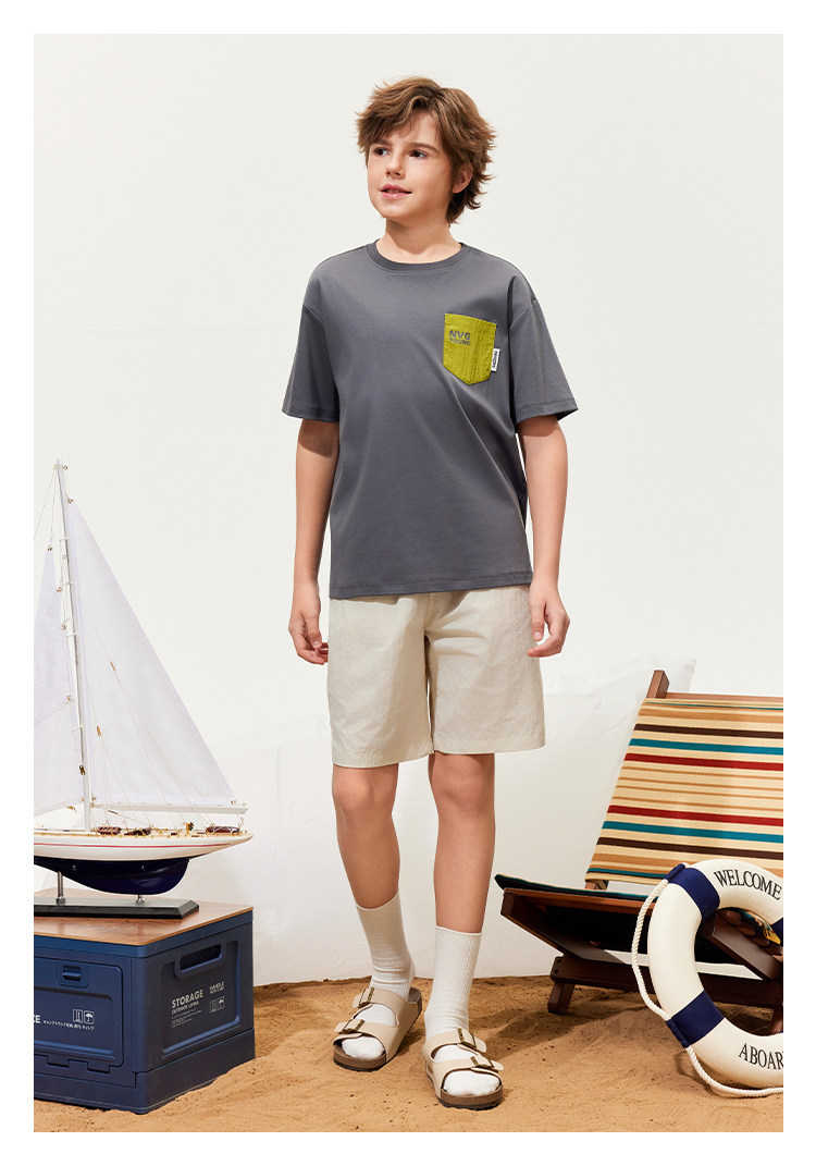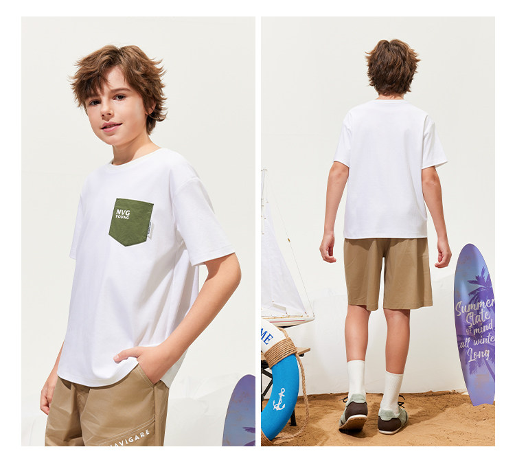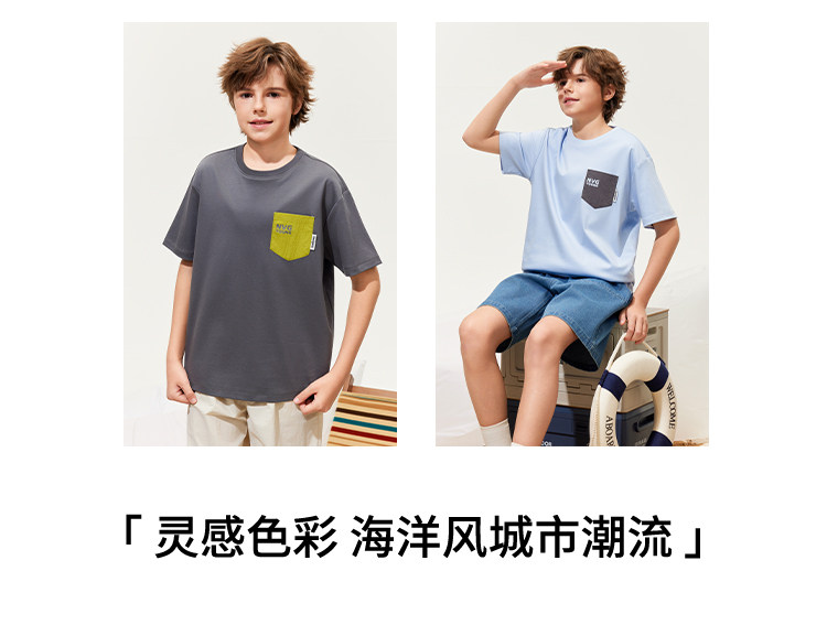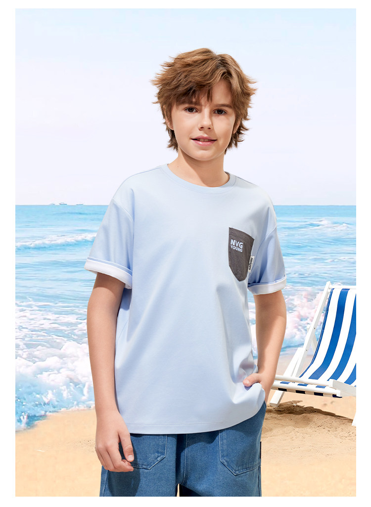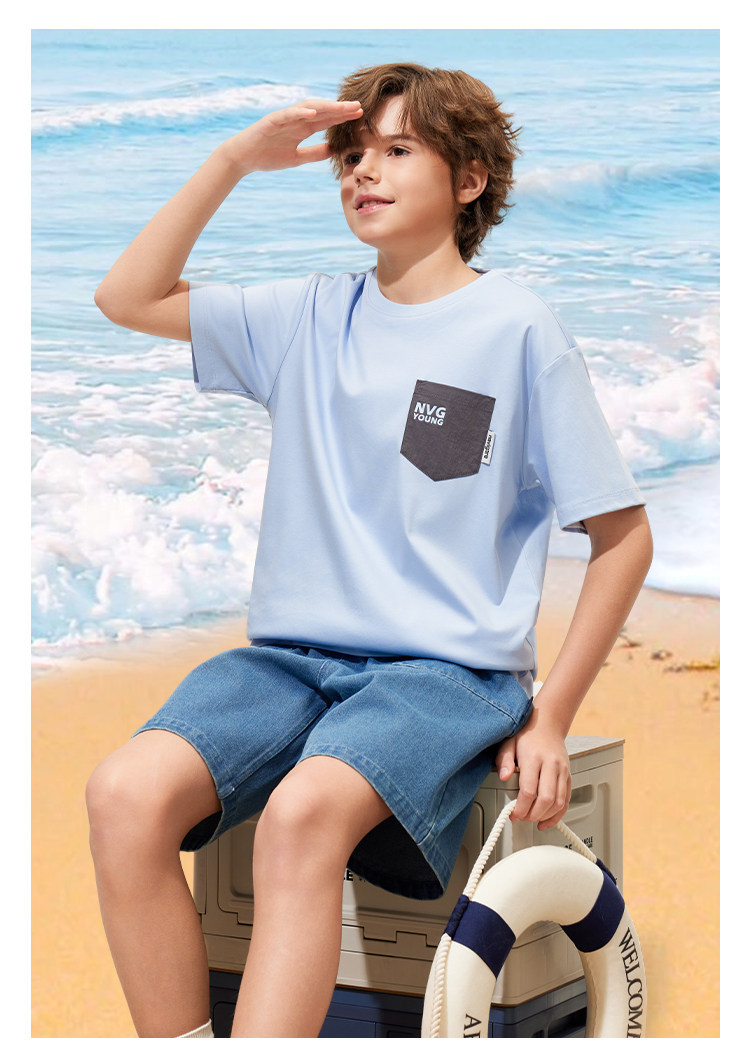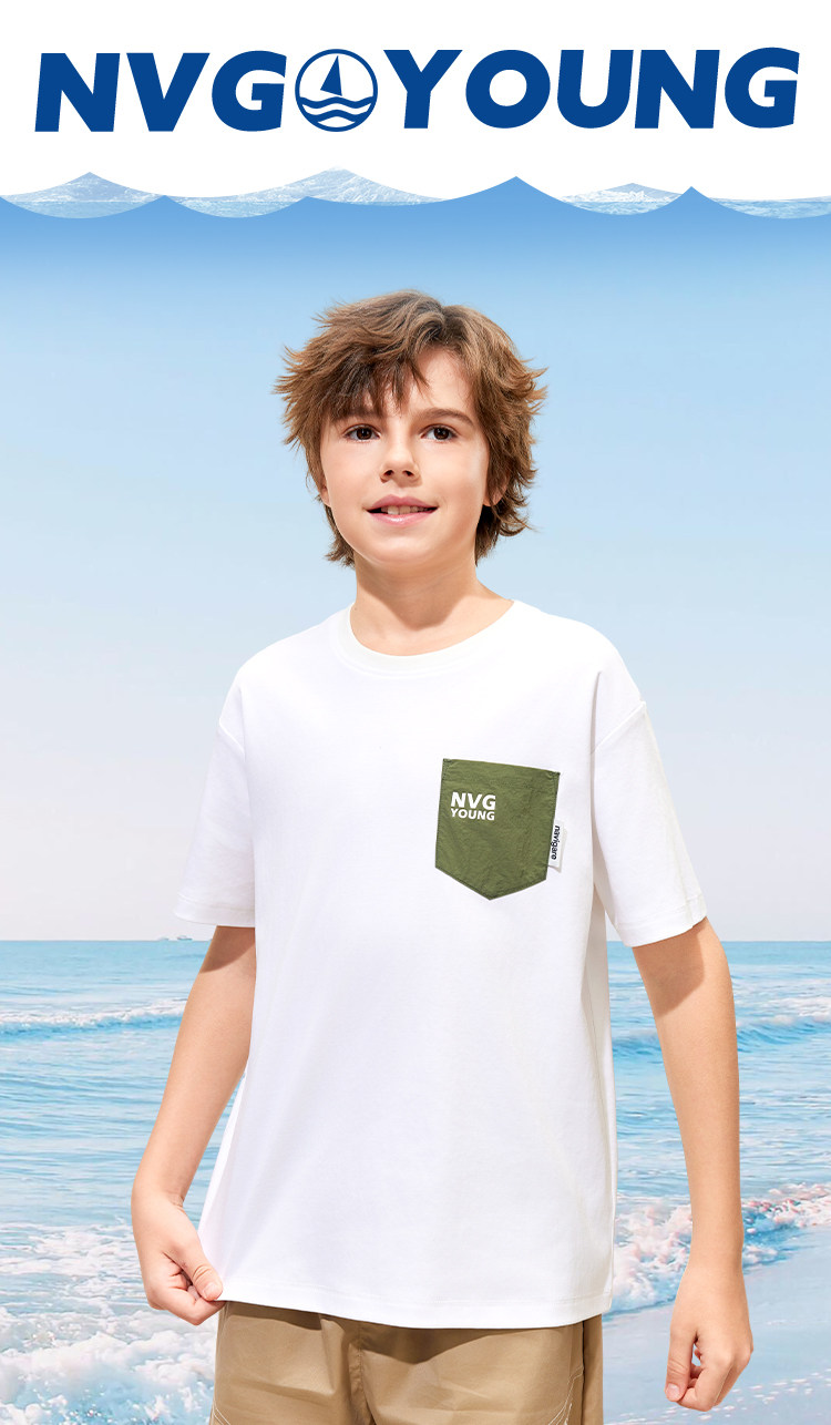 【120-165】【50支液氨纯棉】【纳维凯尔】Navigare意大利小帆船男童圆领短袖T恤