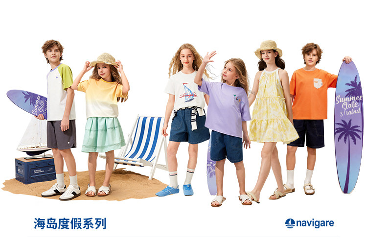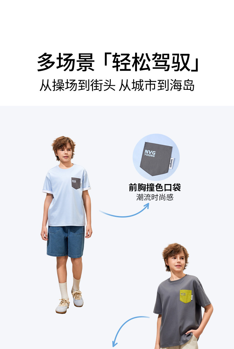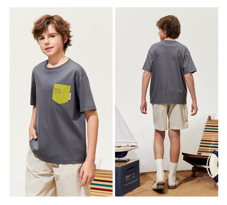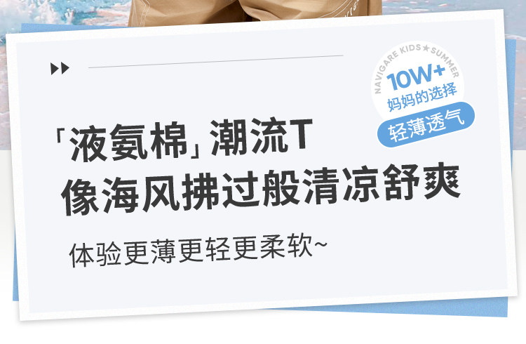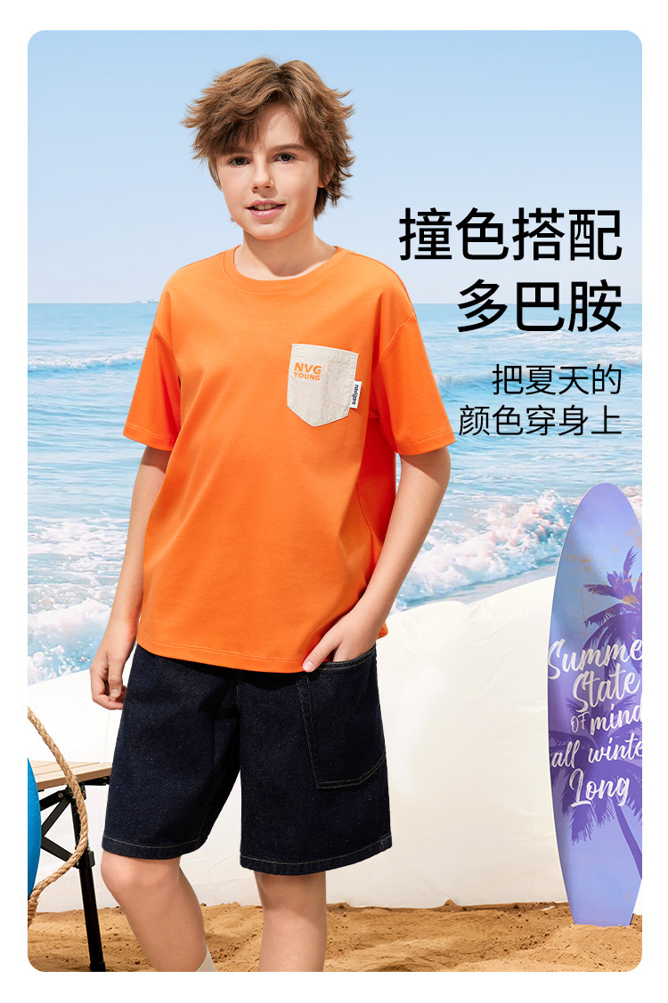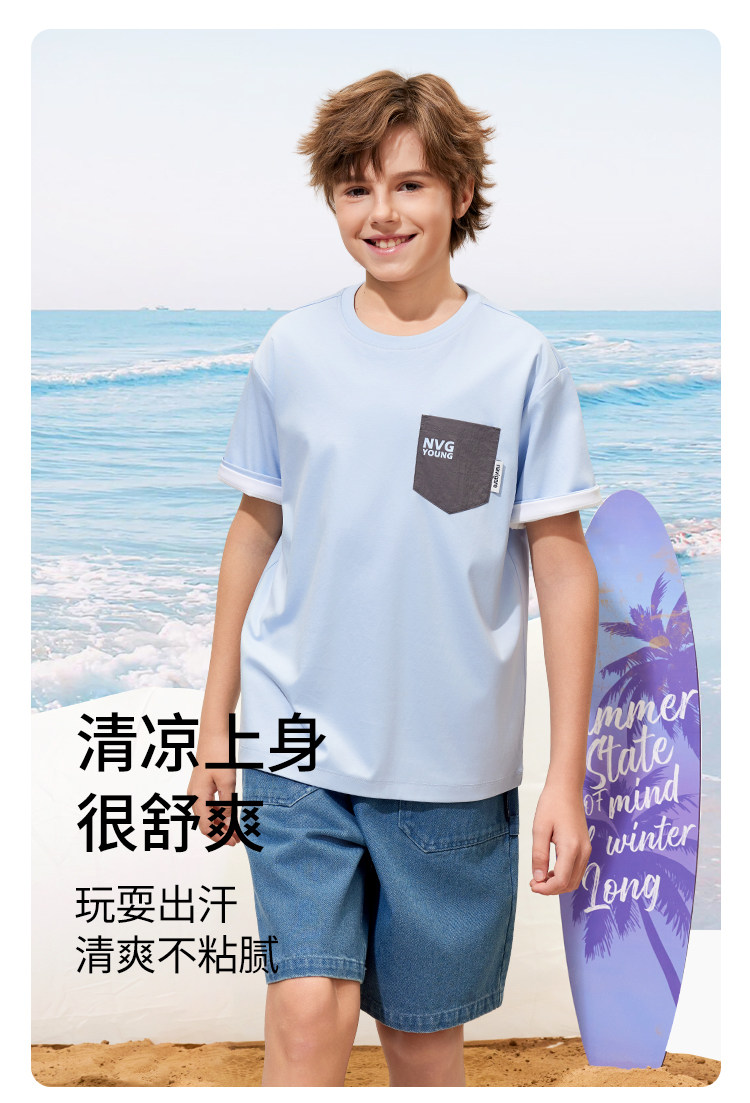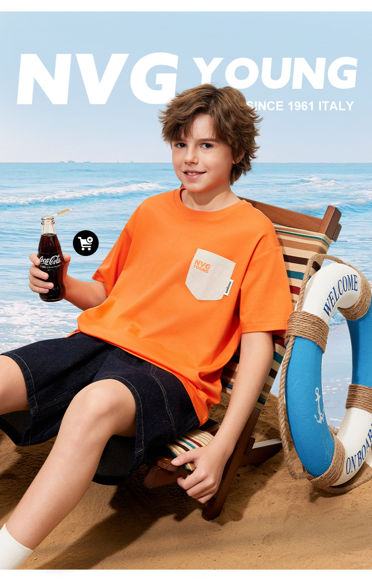 【120-165】【50支液氨纯棉】【纳维凯尔】Navigare意大利小帆船男童圆领短袖T恤