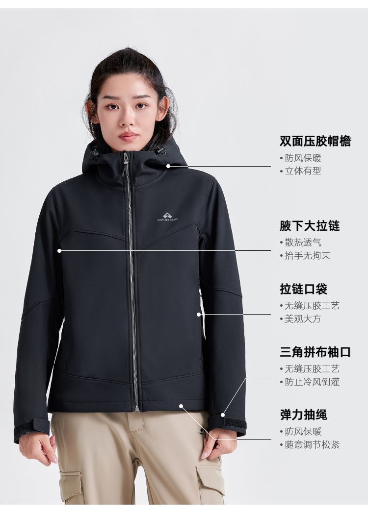 【269秒杀!女海豹软壳衣】拓路者腋下拉链女户外运动登山服防水防风拉链外套软壳衣(女)