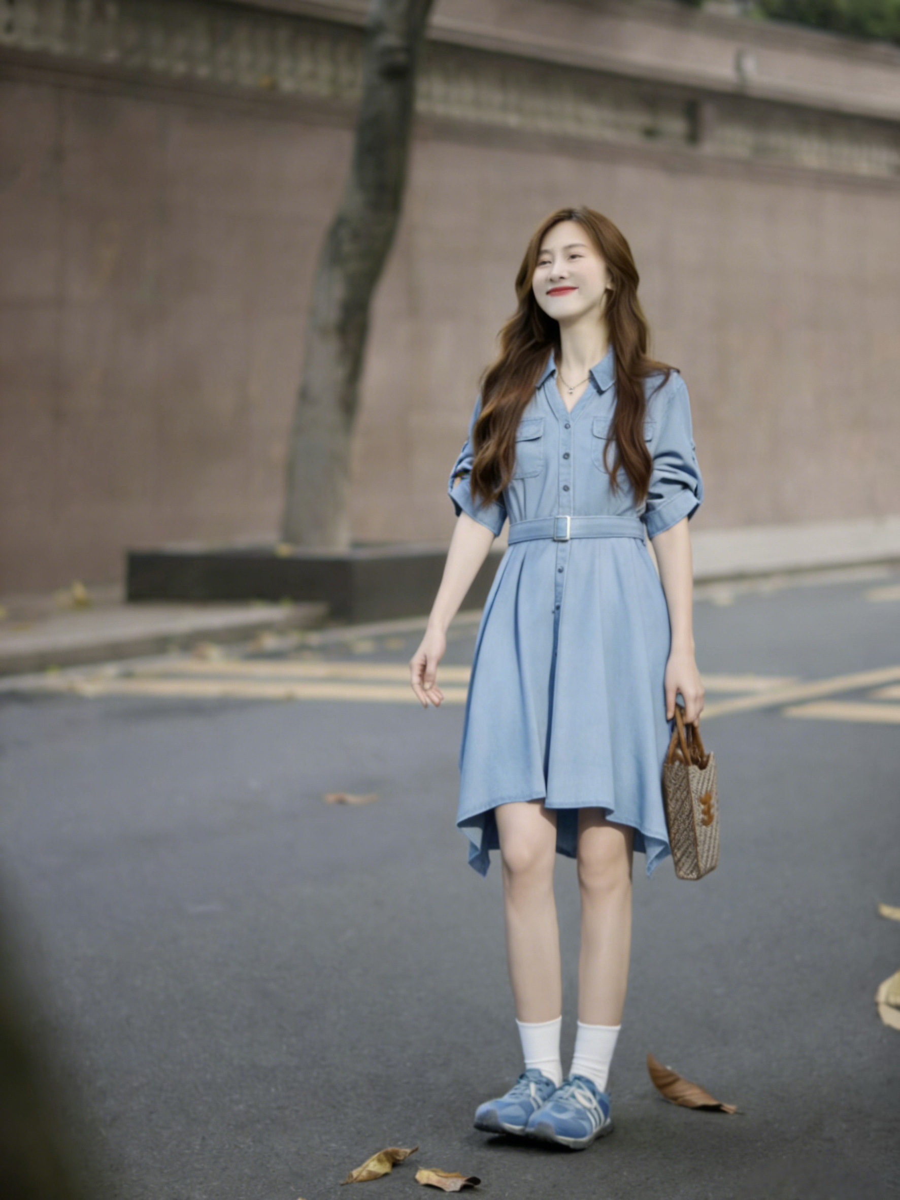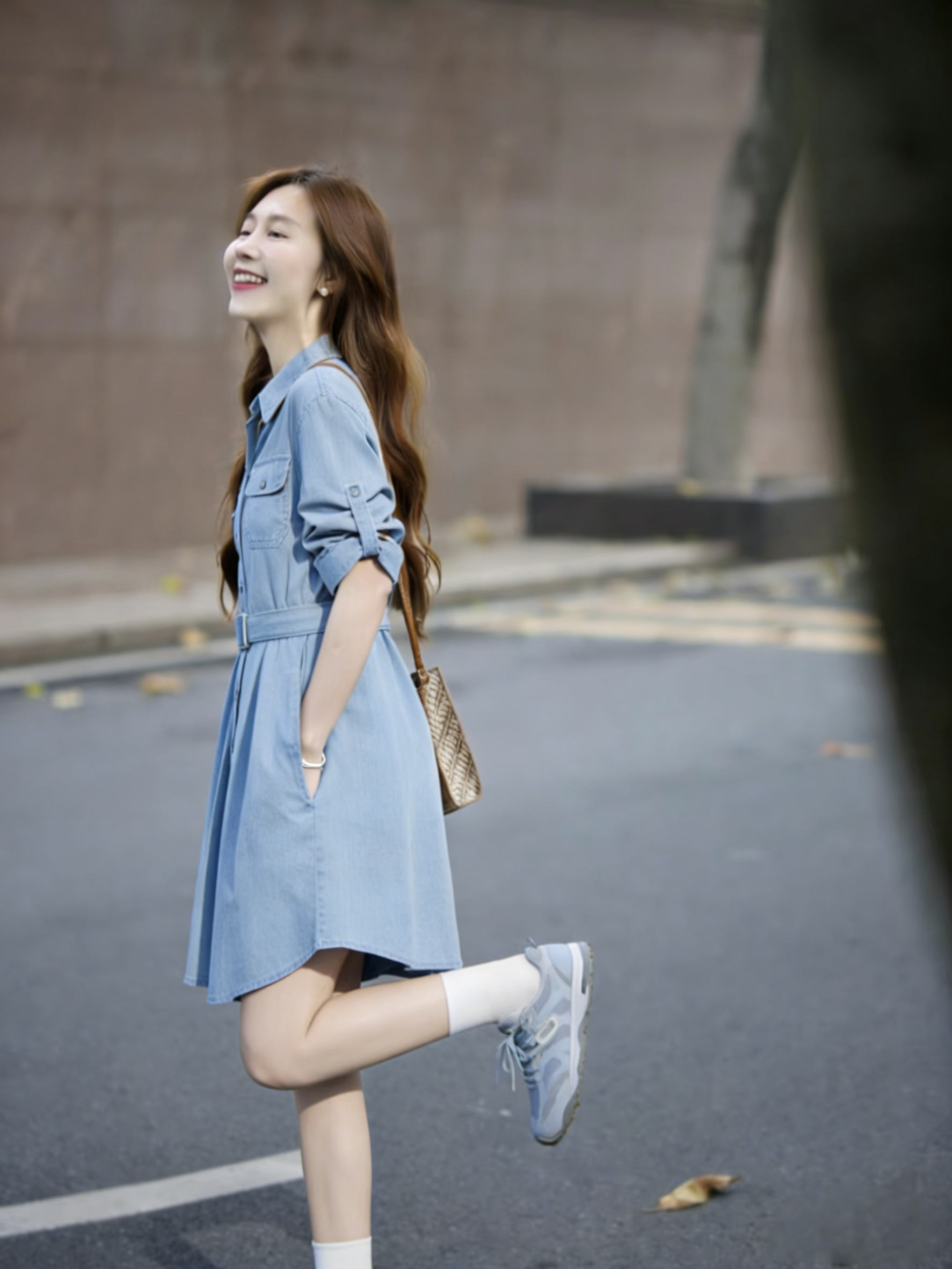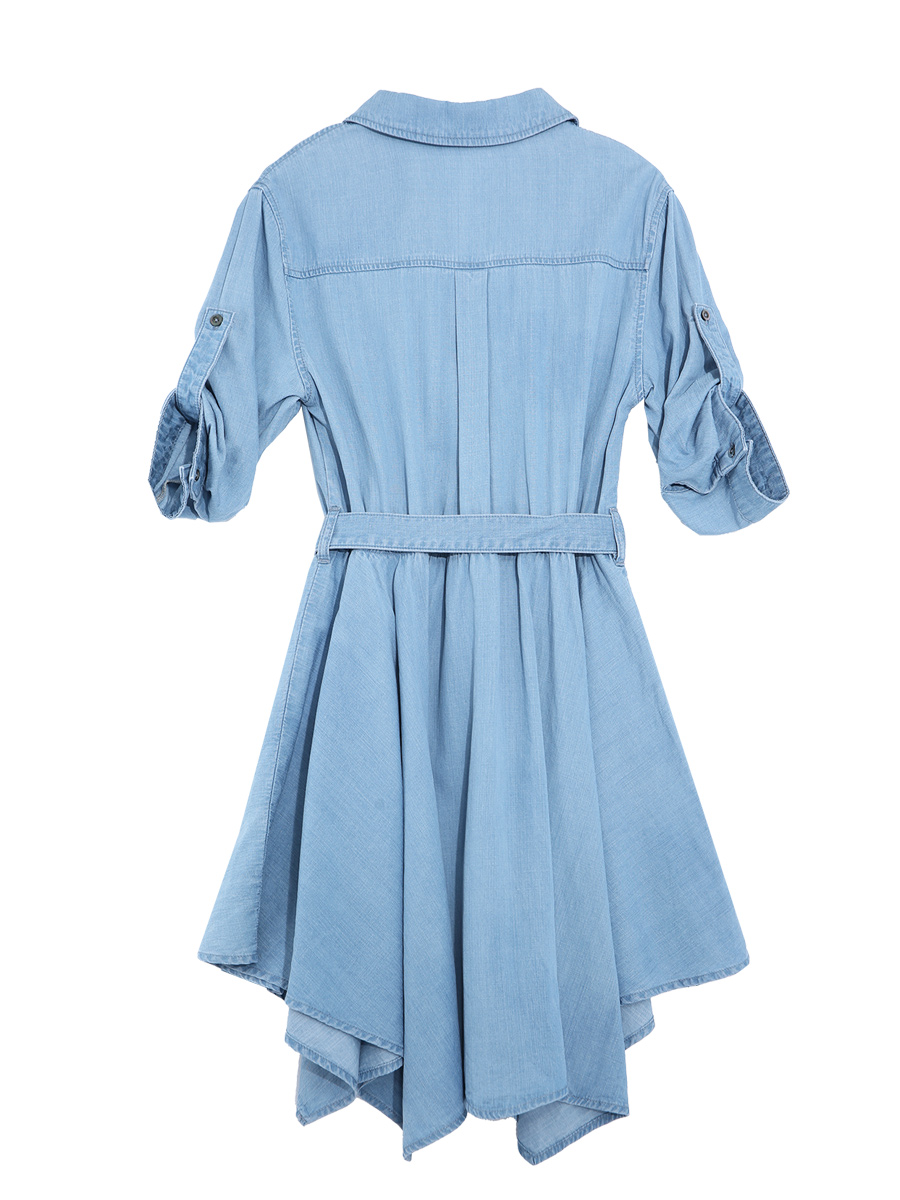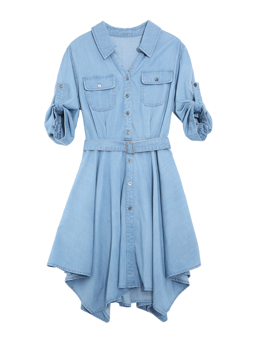 【百图lulu定制】【预售4月11日发】【少年派牛仔连衣裙】莱赛尔 棉混纺 收腰 不规则下摆 五分袖 牛仔连衣裙