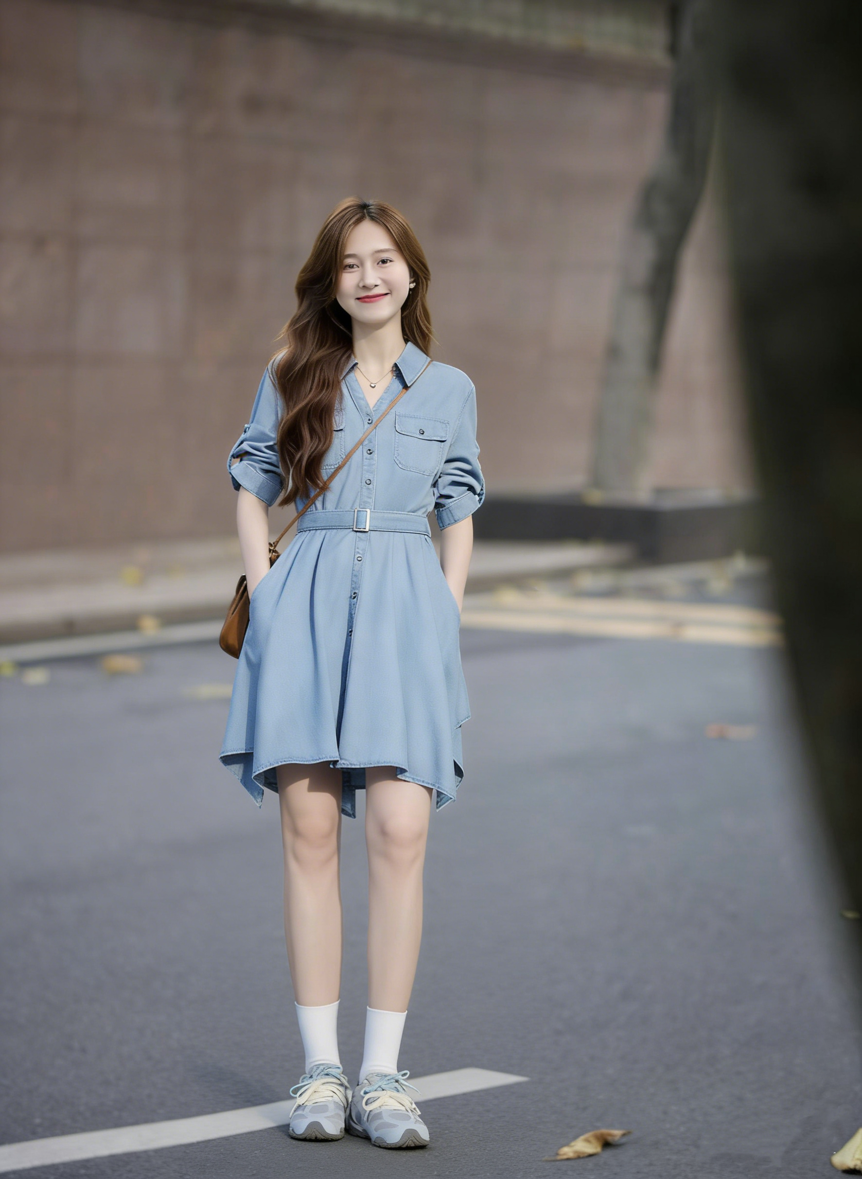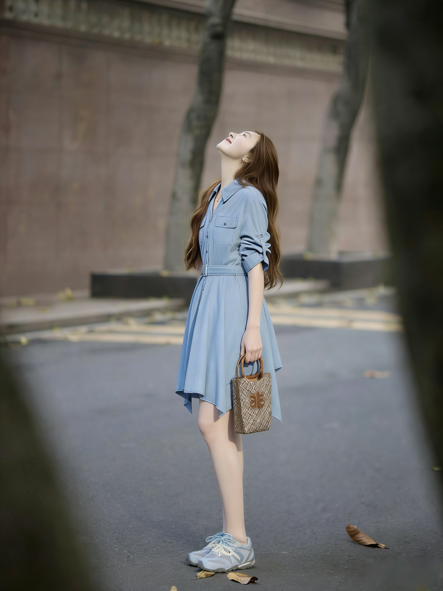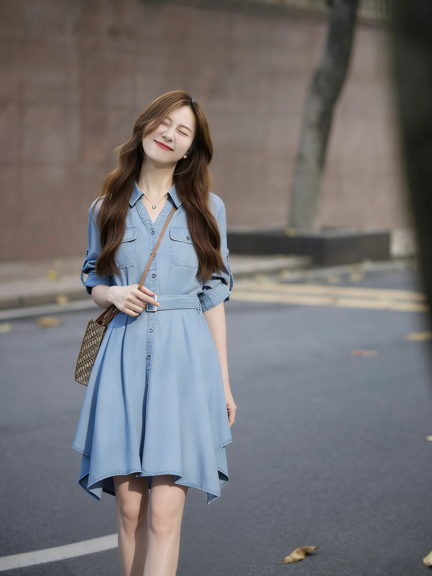 【百图lulu定制】【预售4月11日发】【少年派牛仔连衣裙】莱赛尔 棉混纺 收腰 不规则下摆 五分袖 牛仔连衣裙