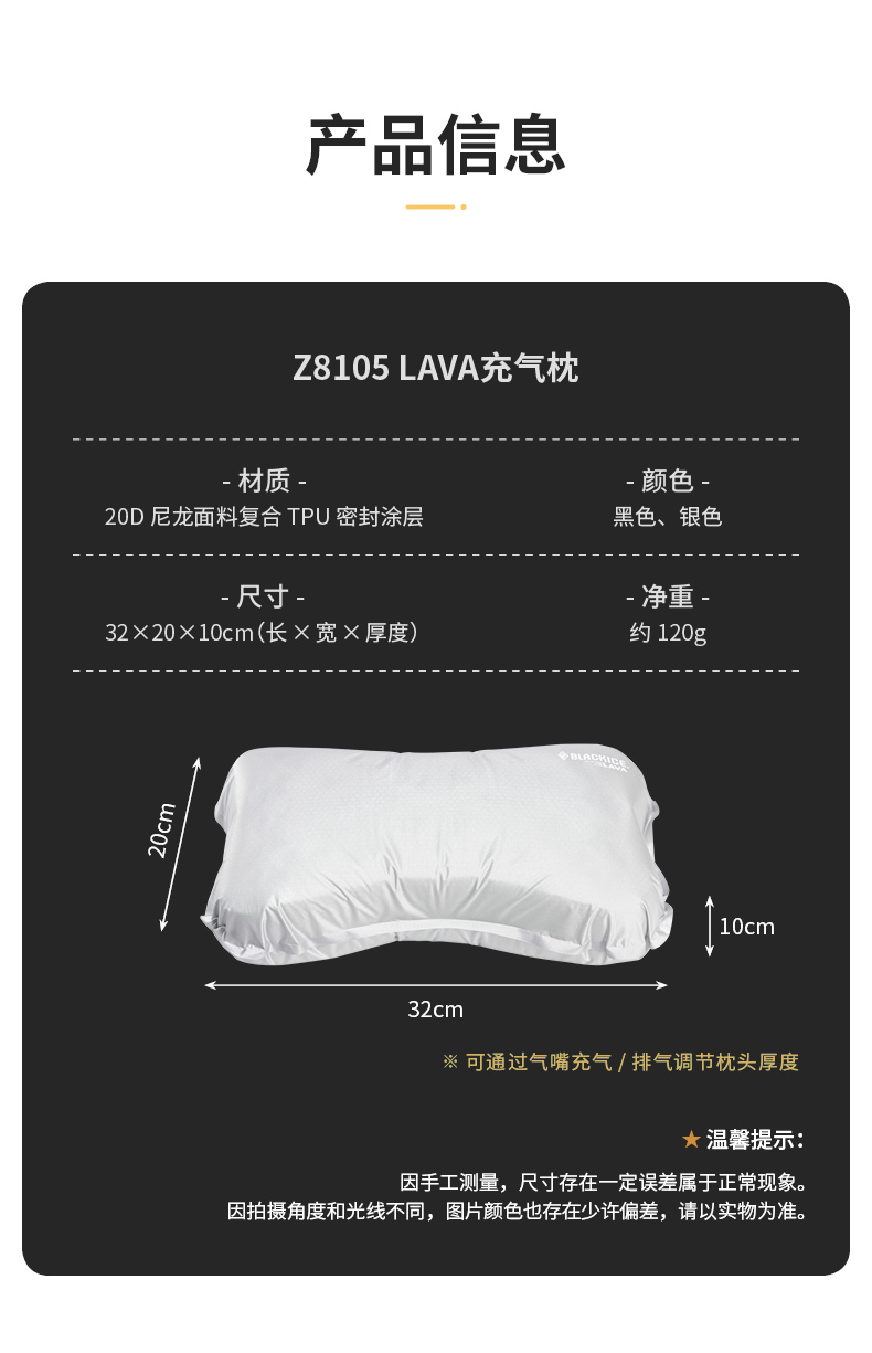 黑冰(BLACKICE)23春夏新款户外旅行便携式自充气LAVA充气枕