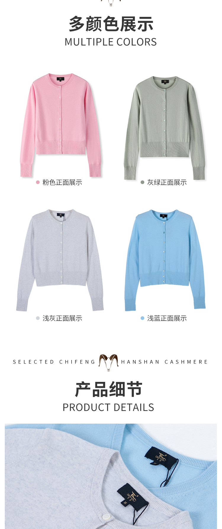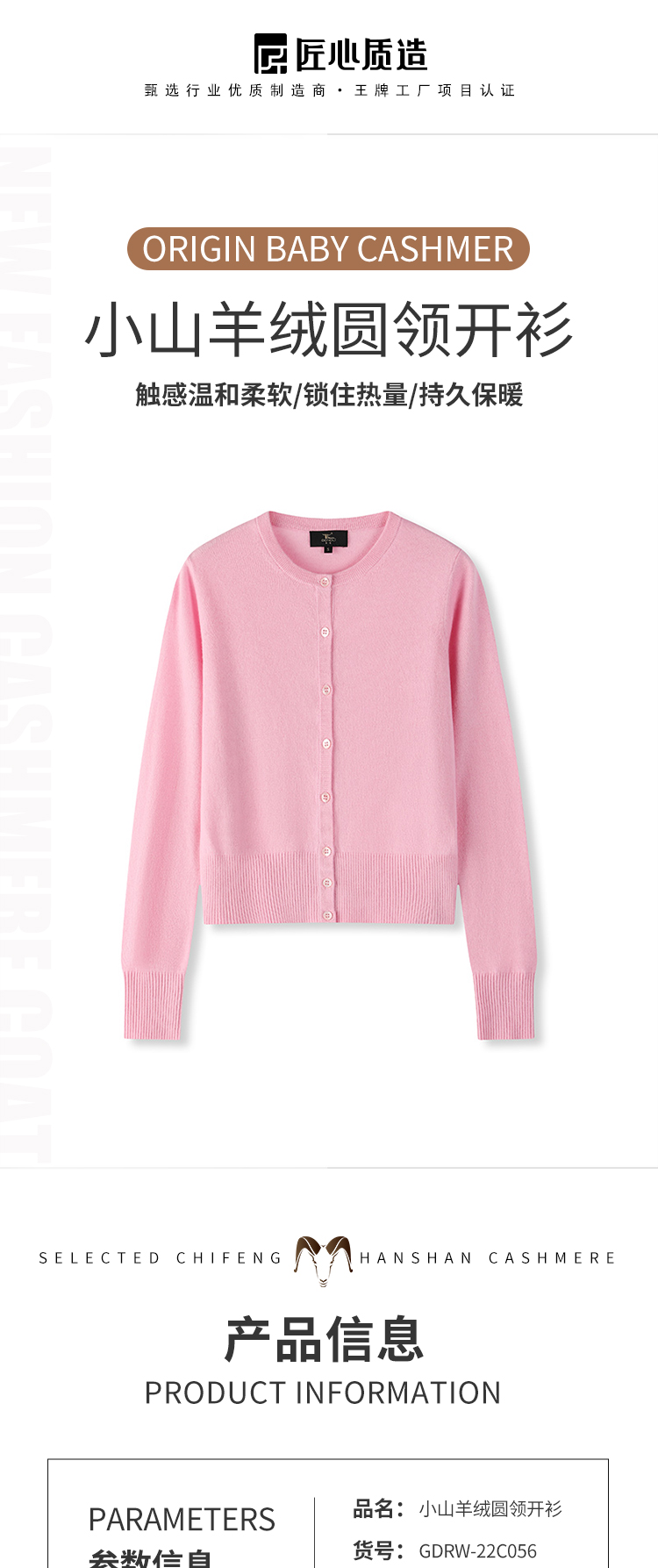 东黎 • 小山羊绒女士秋冬圆领经典休闲开衫 22C056