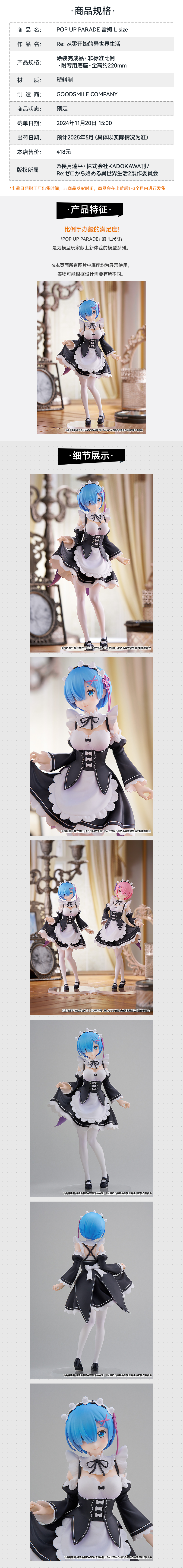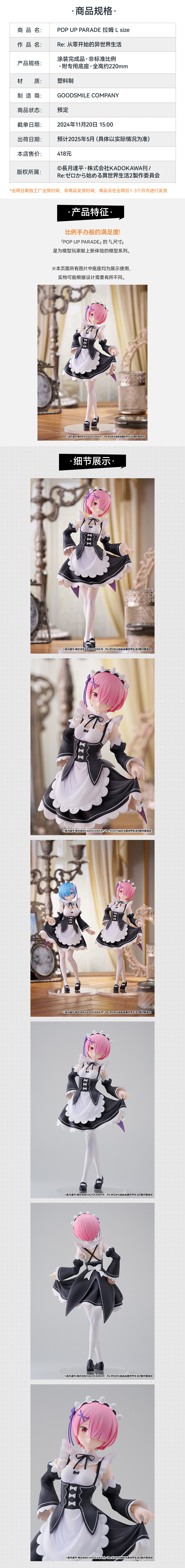 【GSC现货】POP UP PARADE 拉姆/雷姆 L size Re:从零开始的异世界生活