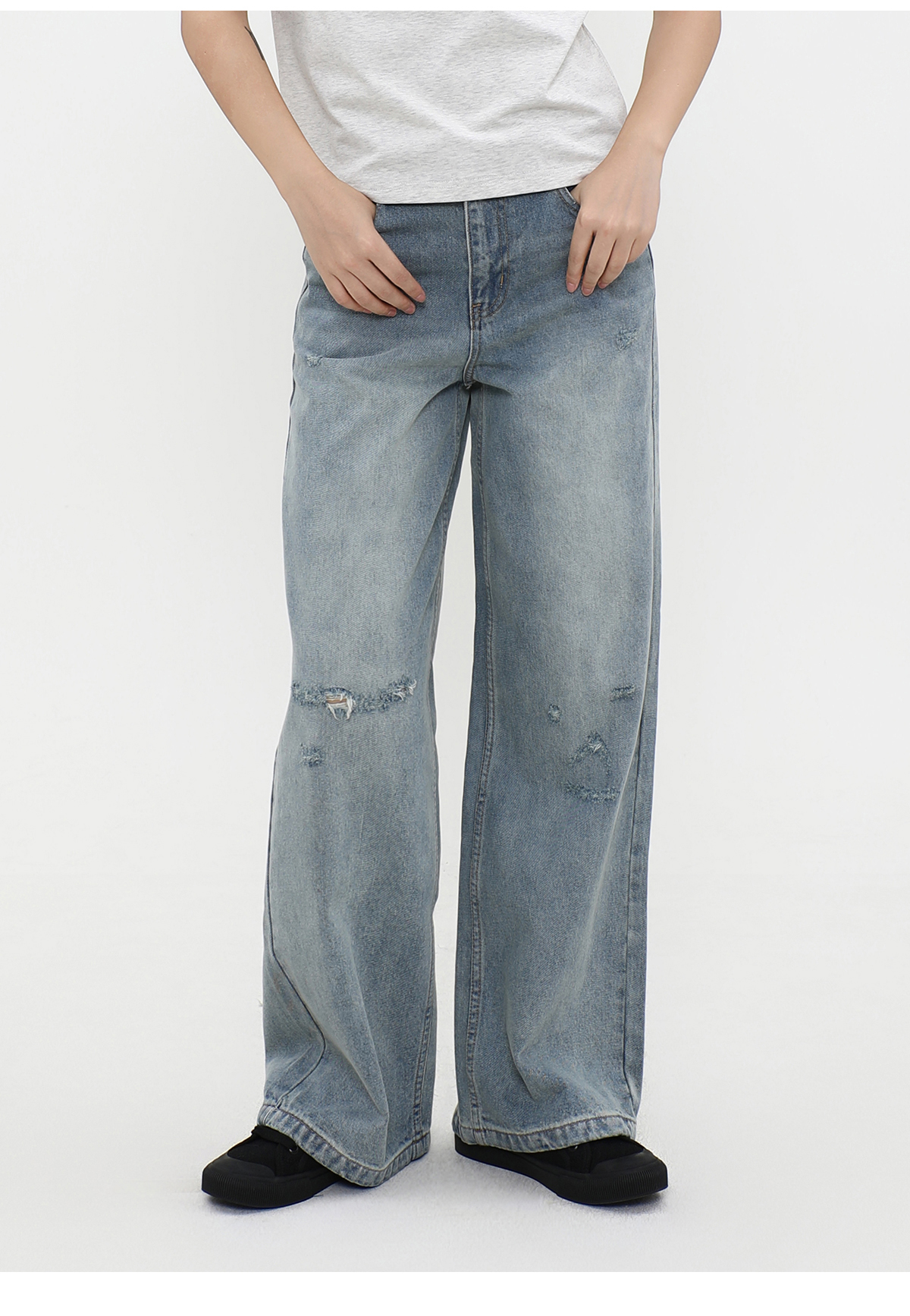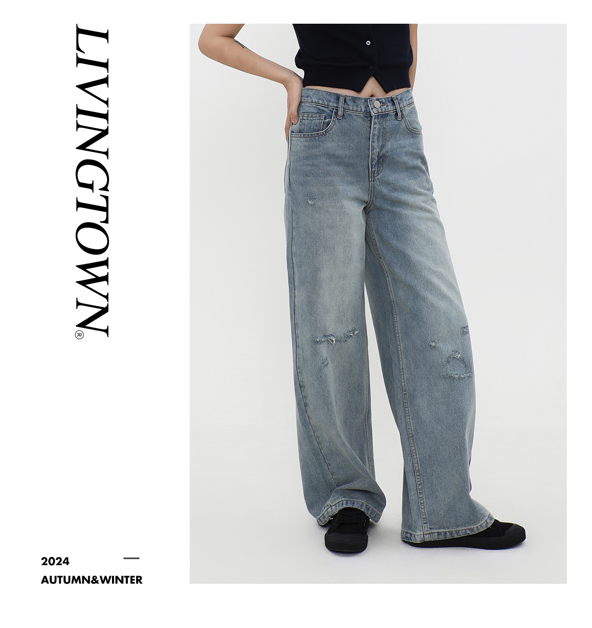 LIVINGTOWN/LT超宽松水洗牛仔裤