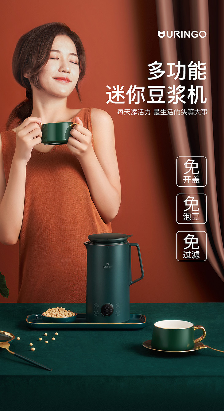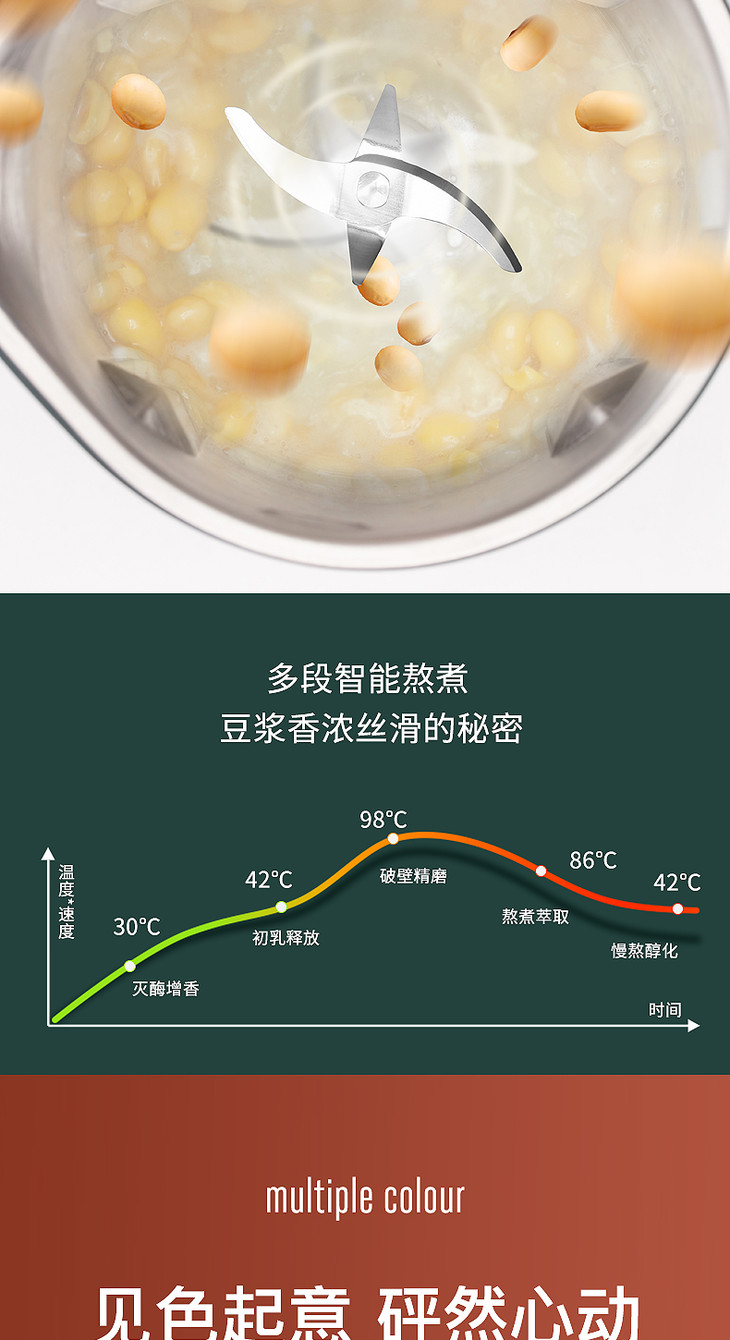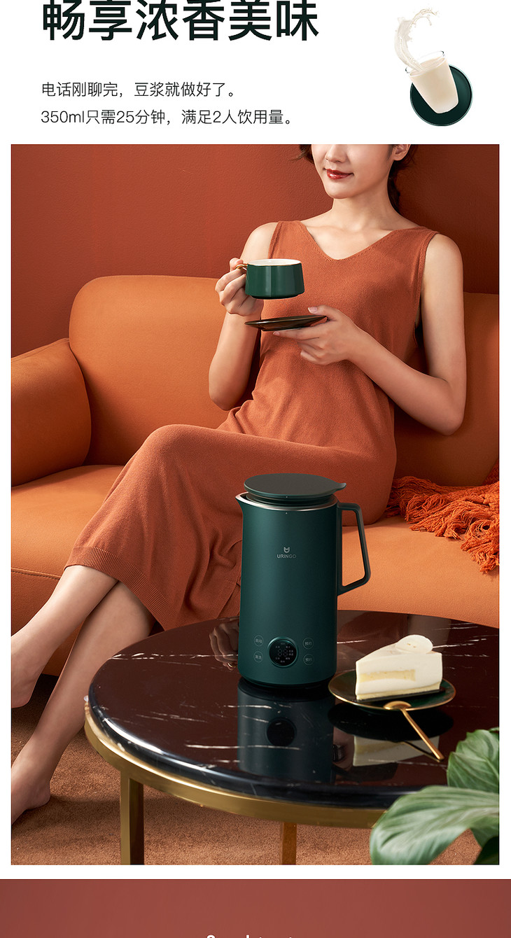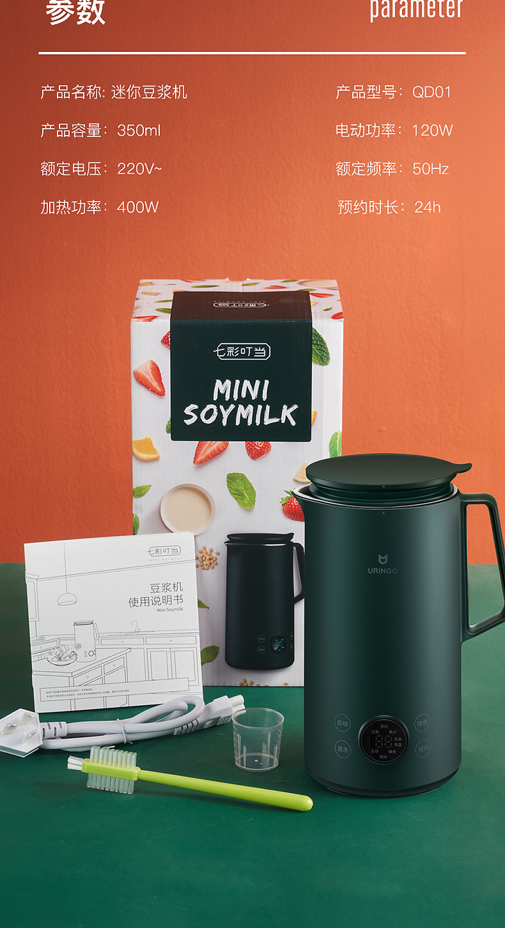 【高颜值免开盖加热】七彩叮当豆浆机家用迷你全自动多功能破壁机免泡无渣过滤免开盖加热7大预约功能5大料理模式350ml大容量