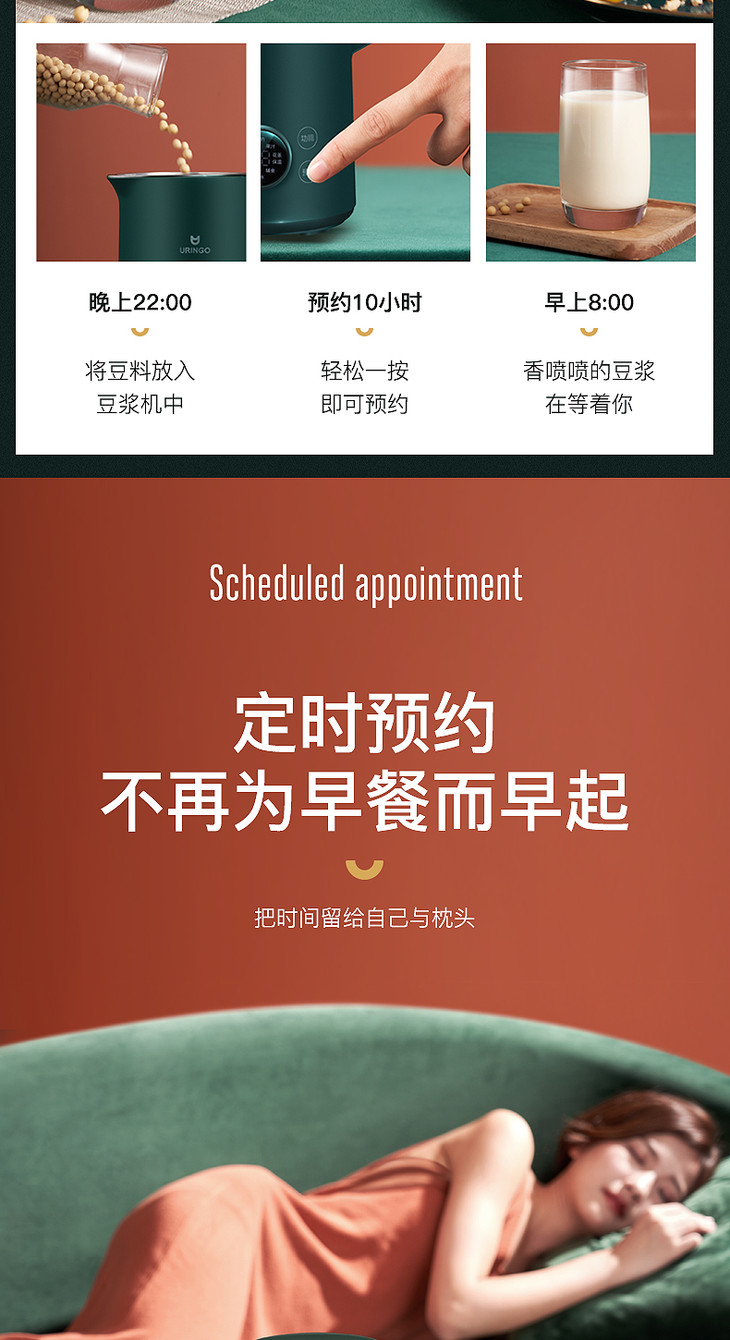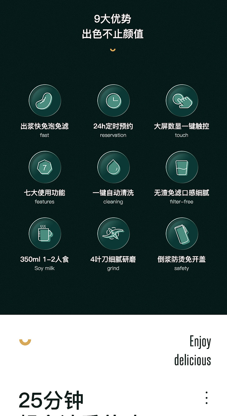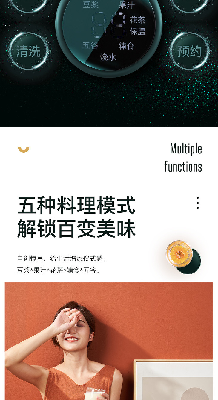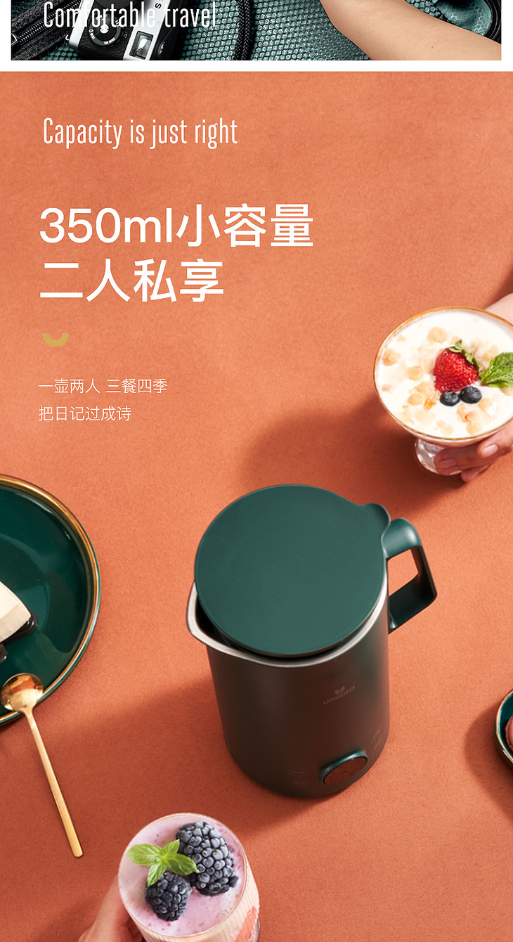 【高颜值免开盖加热】七彩叮当豆浆机家用迷你全自动多功能破壁机免泡无渣过滤免开盖加热7大预约功能5大料理模式350ml大容量