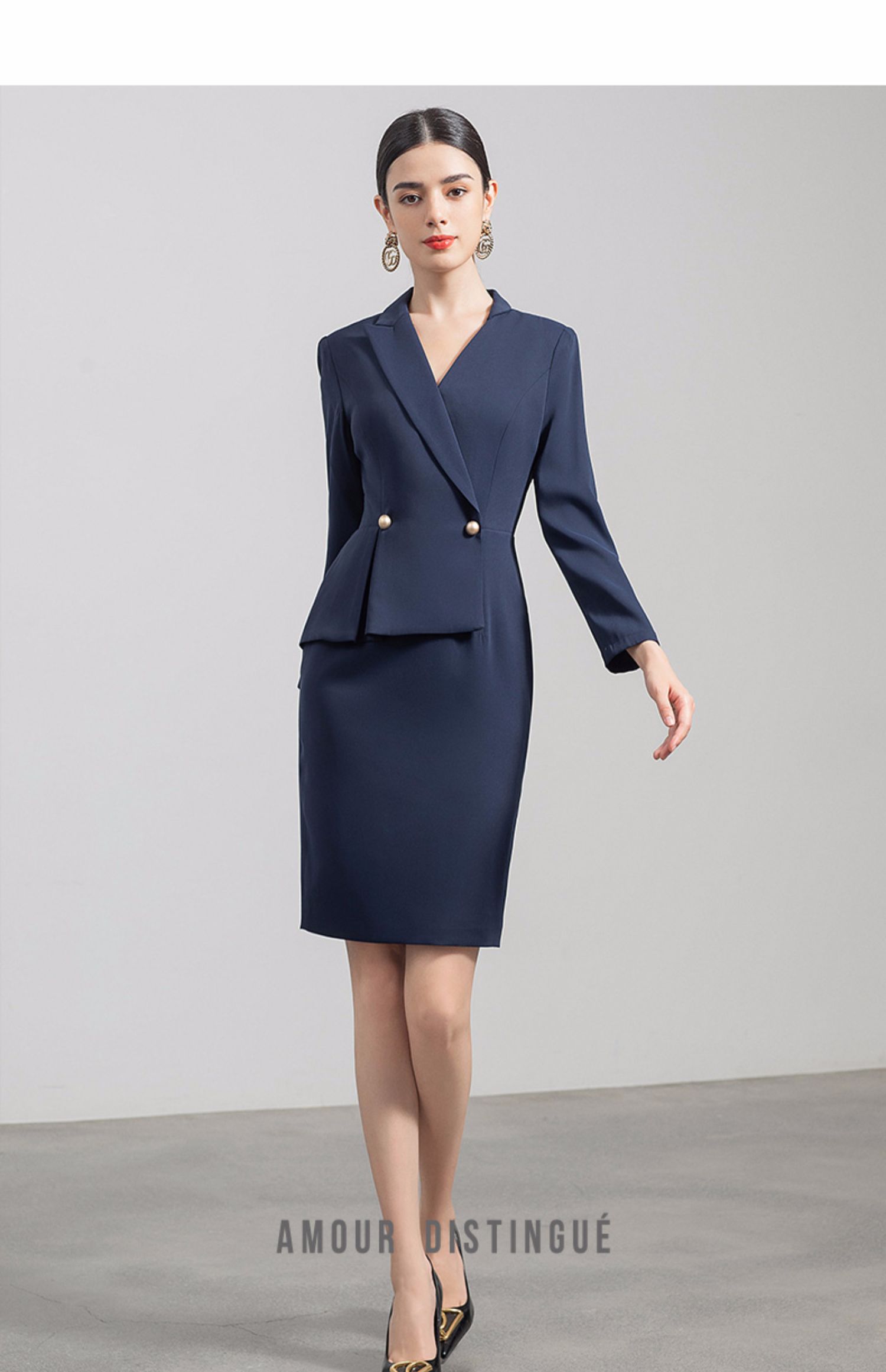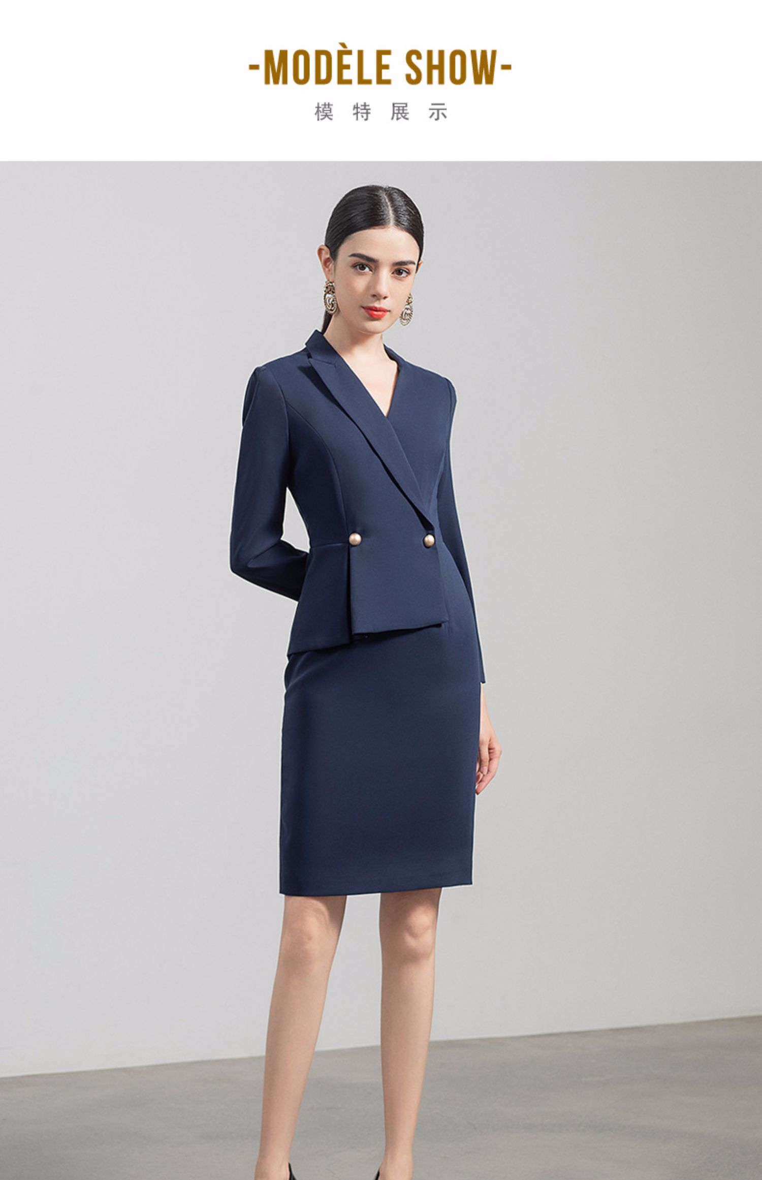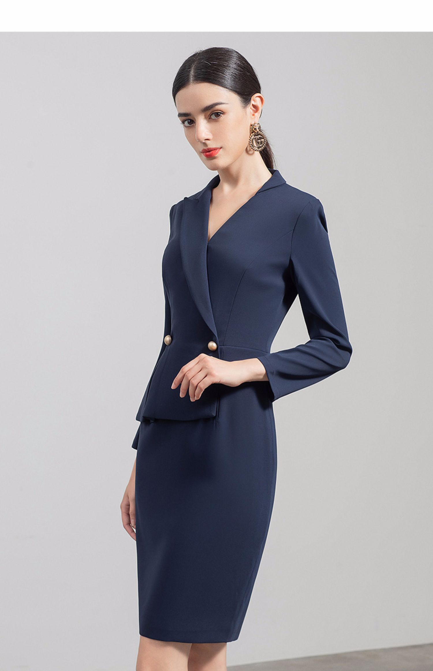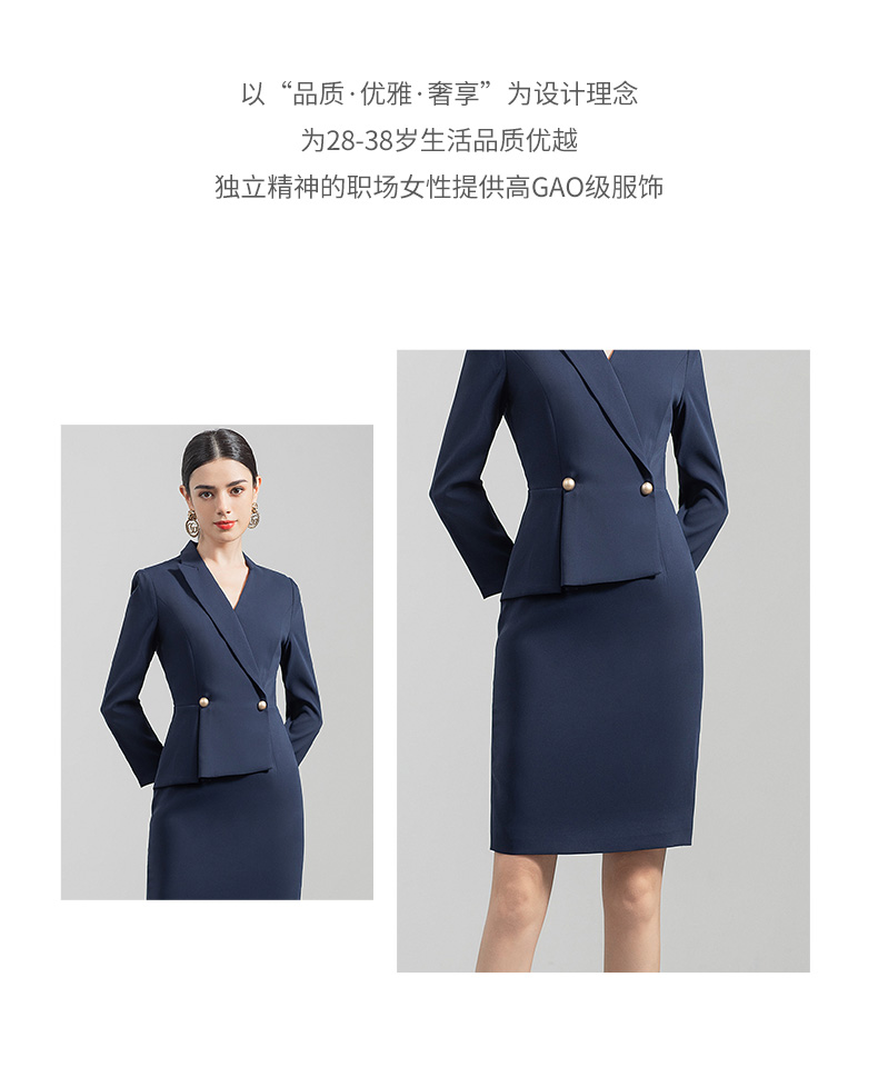 IWY/高端职业装女套裙气质藏青西装连衣裙薄款售楼部工作服通勤正装Q520