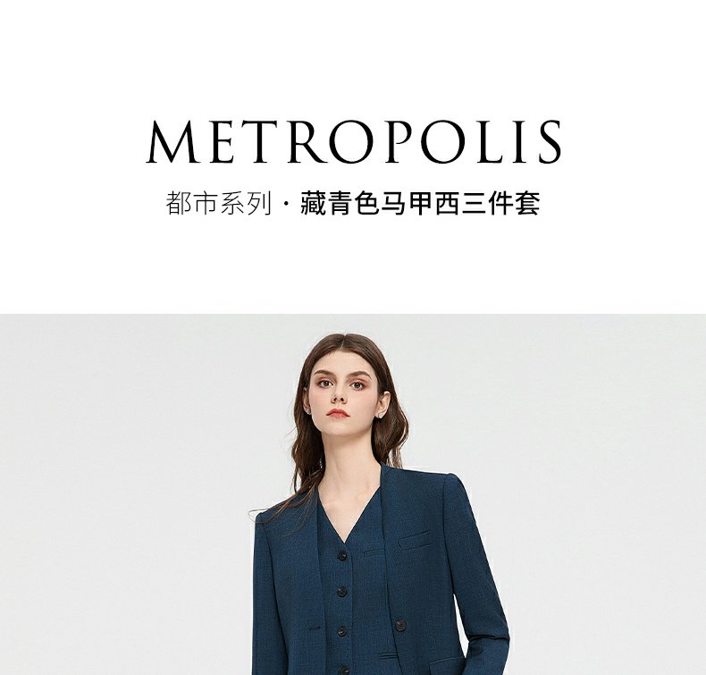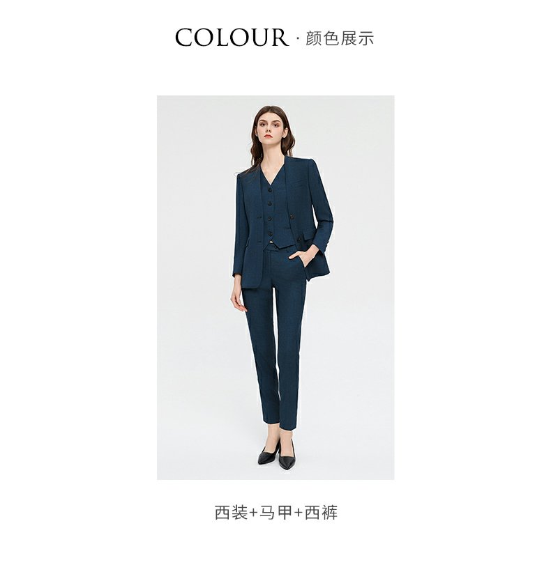 IWY/高级感藏青色西装马甲三件套职业装珠宝店工作服正式场合商务正装CM13322+P12222
