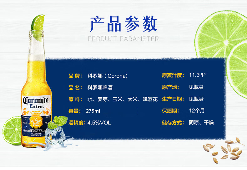 【整箱】科罗娜特级啤酒 275ml*24瓶 4.5%vol 麦芽汁浓度11.3度