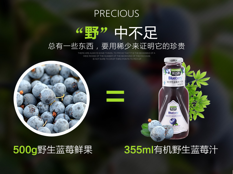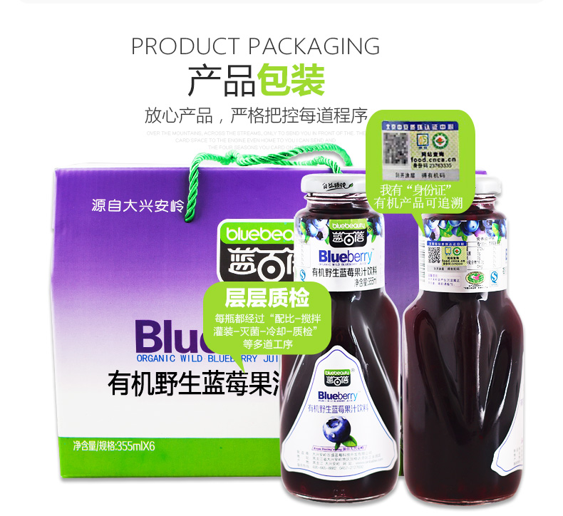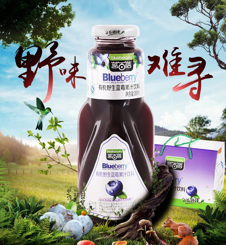 蓝百蓓有机野生蓝莓果汁饮料355ml/瓶