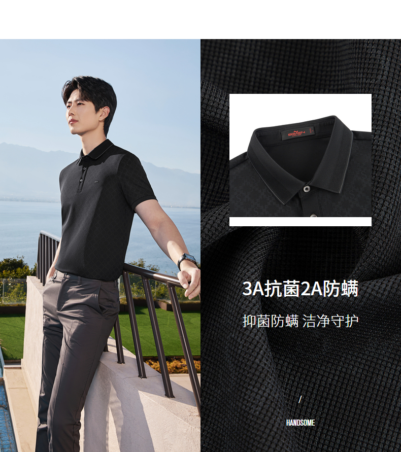 【华夫格肌理/印花POLO衫】柒牌短袖POLO衫2026夏季新款商务上衣 130T70640