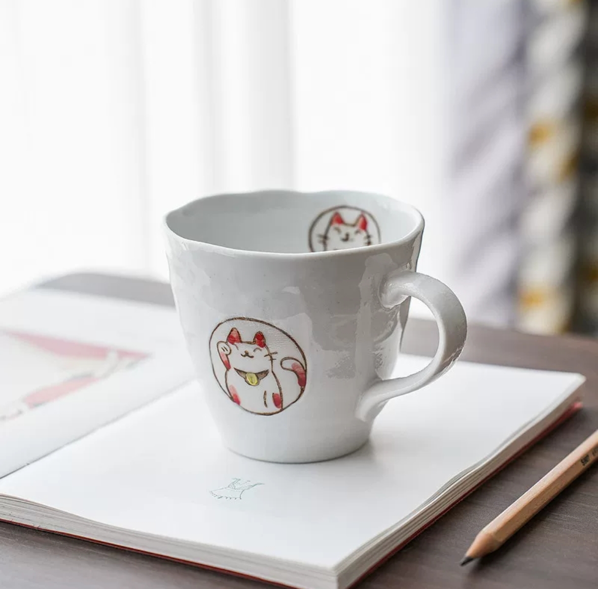 日本西庵窰美浓烧手工制手绘风水猫马克杯