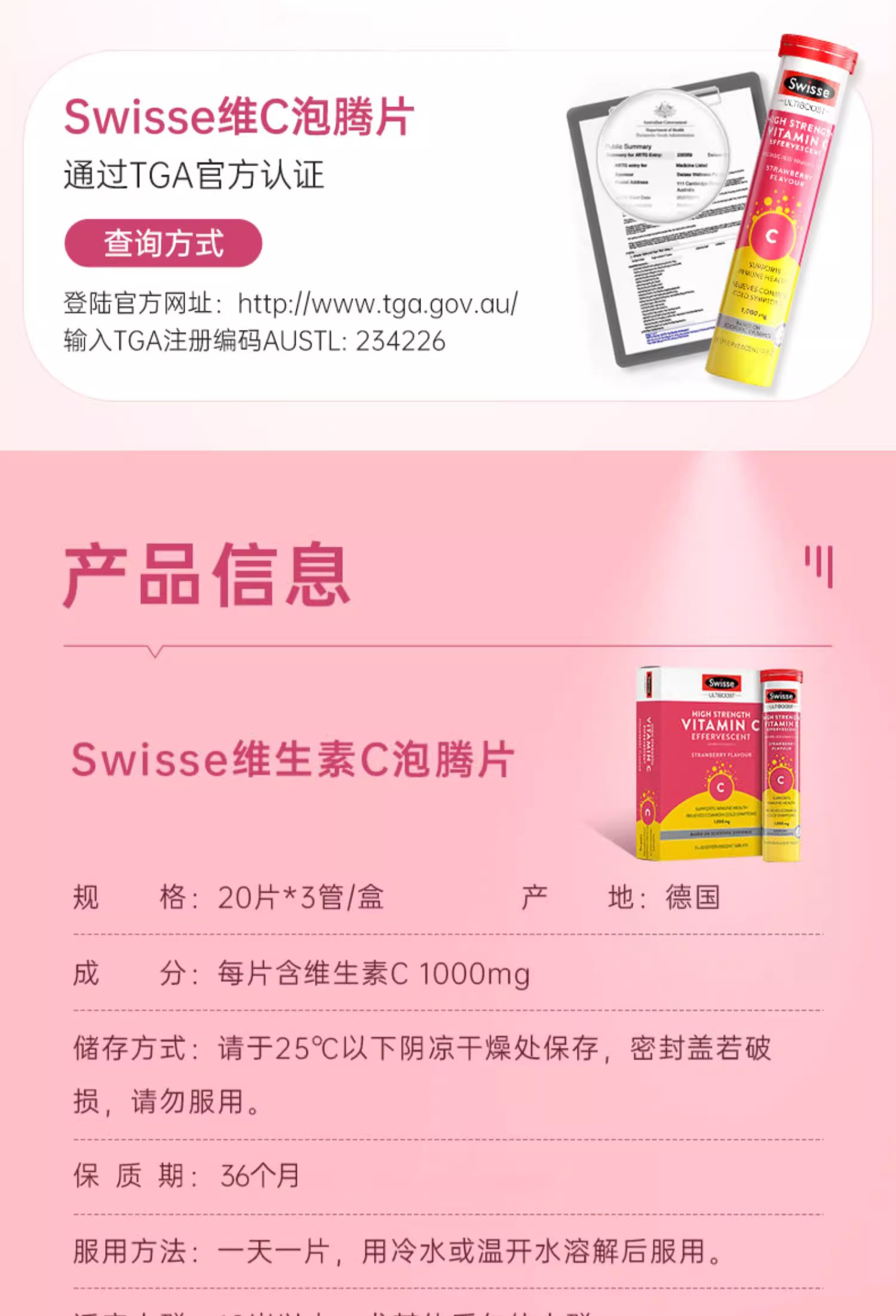 【保税】澳洲 Swisse 高浓度维生素C泡腾片 20片*3支 澳洲原装进口