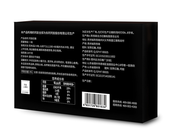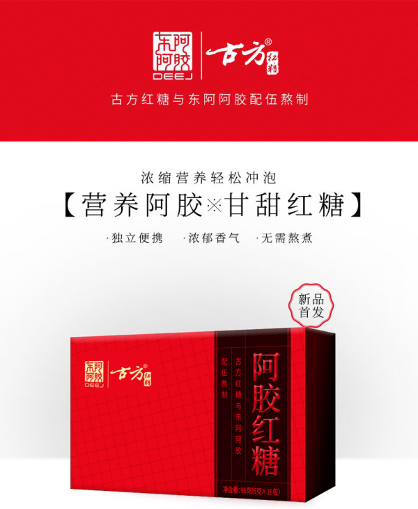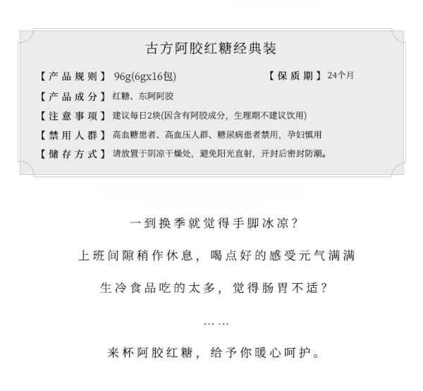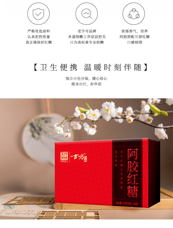 古方 阿胶红糖 甘蔗熬制 古方红糖块 东阿阿胶联名款 经典盒装96g*2盒