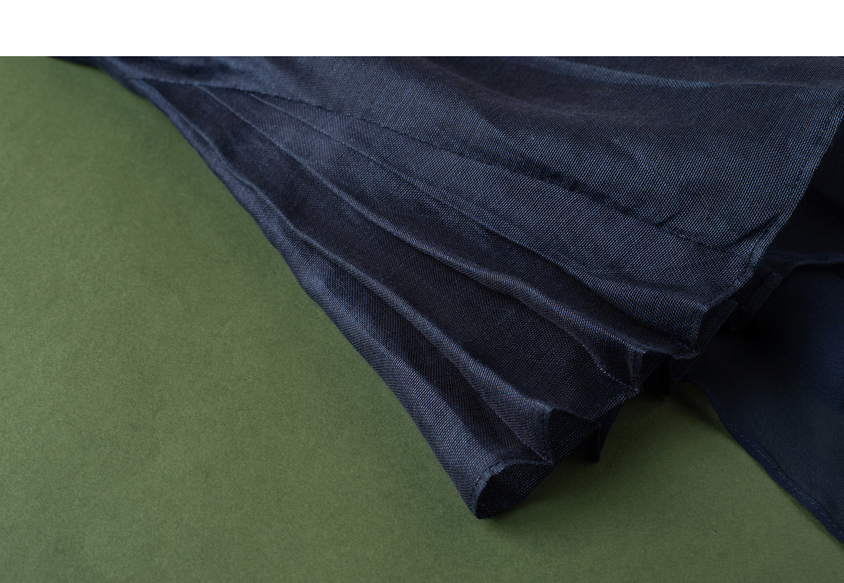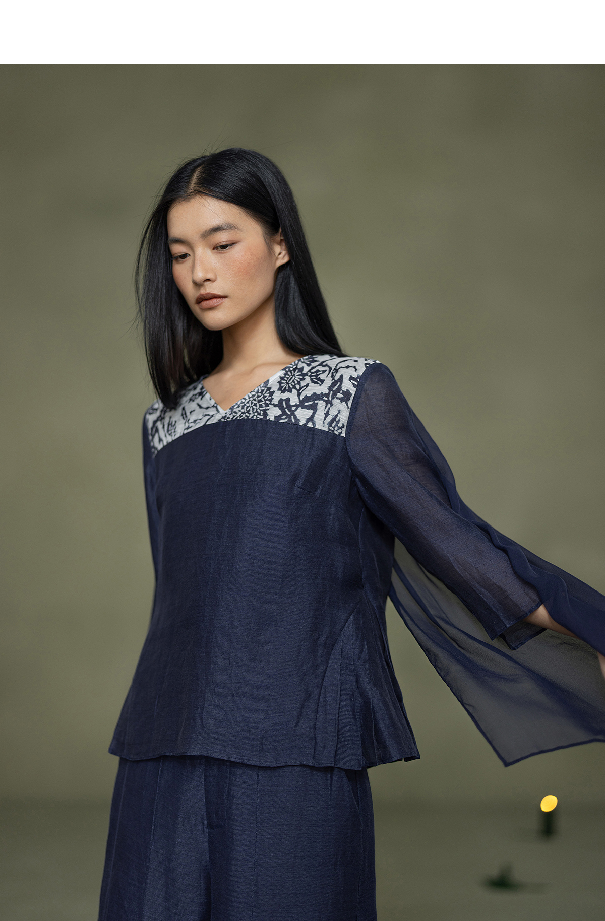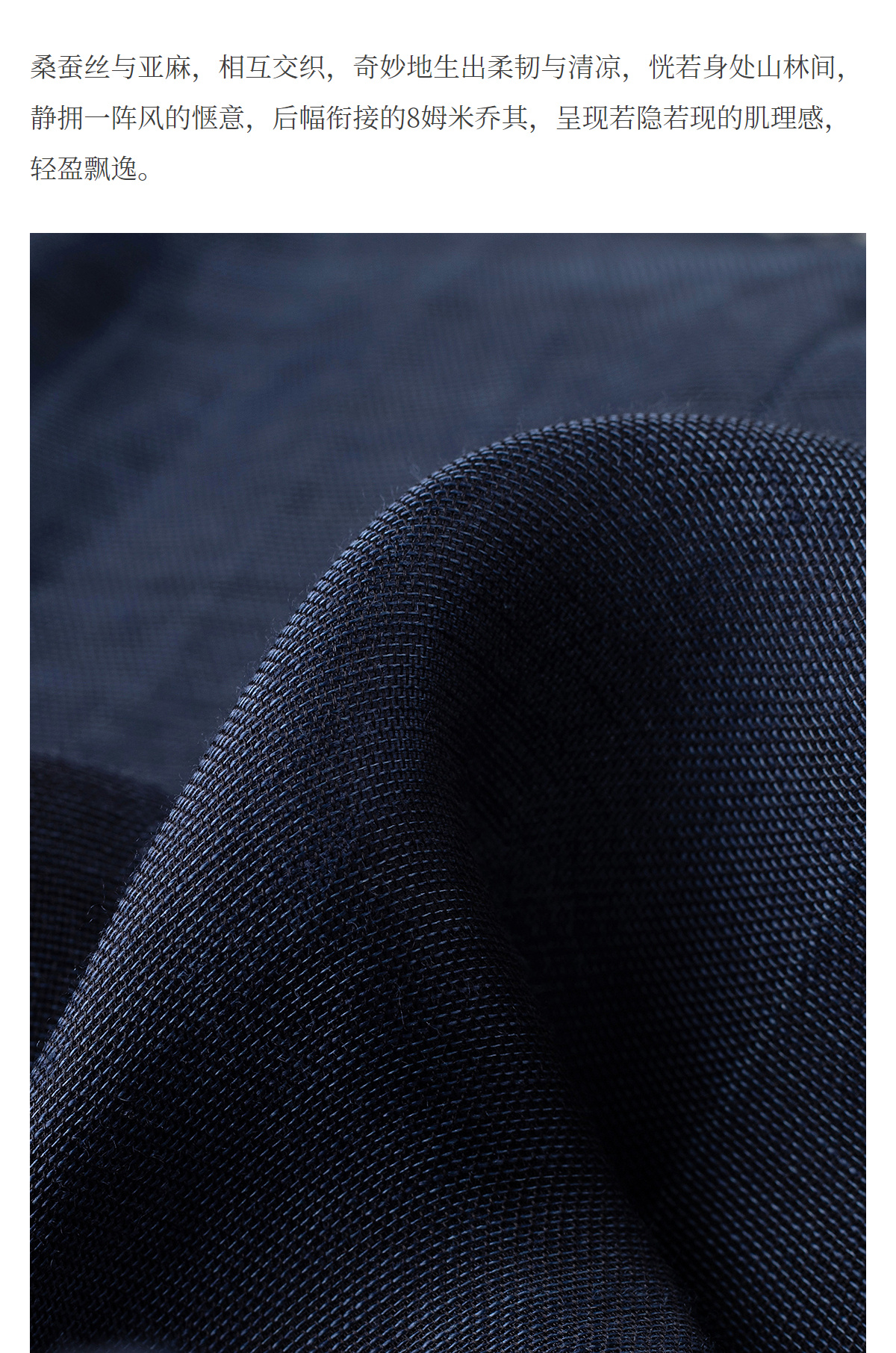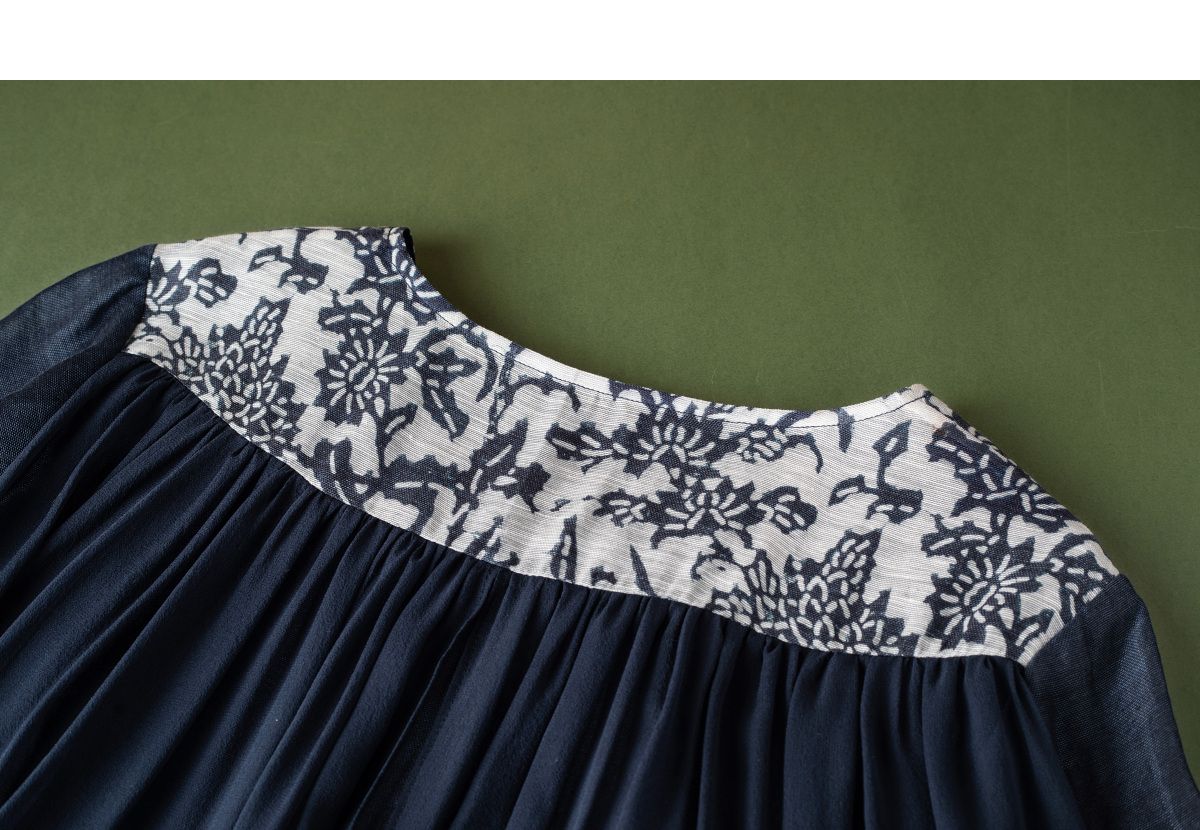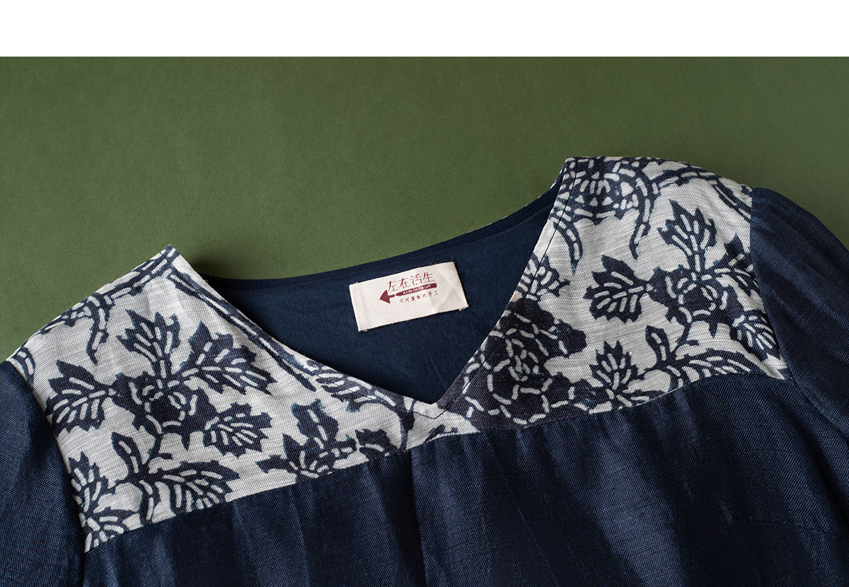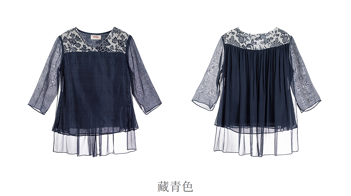 【林栖设计小店】缠枝牡丹|藏青色丝麻拼桑蚕丝飞片2026春新款优雅衬衣1961142