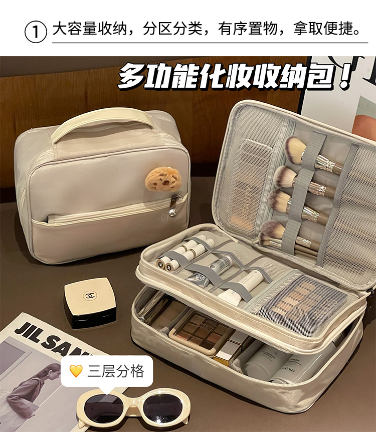 【多功能化妆收纳包】新款化妆包大容量多功能外出便携洗漱包高颜值防水化妆收纳包三层,便携手拎, 旅行出门全ok。ry
