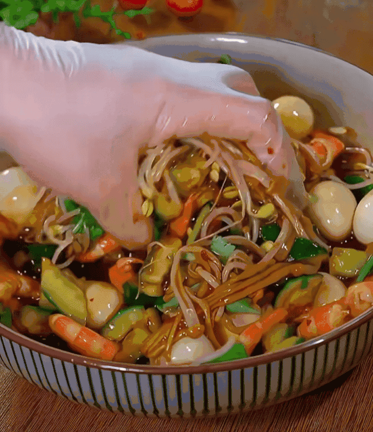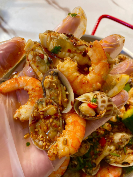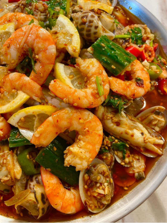 【凉拌海鲜】 🤩🤩把爱吃的海鲜煮熟加入麻香凉拌汁,加入香菜撒上芝麻,搅拌即可开吃! 浸透了料汁的鲜香,酸酸辣辣,都化作入口的终极幸福!