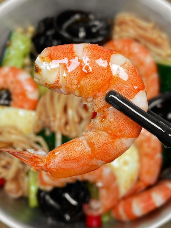 【凉拌鲜虾】 🍤把虾仁煮熟后,加入凉拌汁,拌上一份鲜虾,真的开胃了,蛋白质足足的❗️❗️ 🥳入口酸酸辣辣,凉凉爽爽,入口轻轻咀嚼,汁水爆发,虾肉Q弹,一口一个停不下来!🤭
