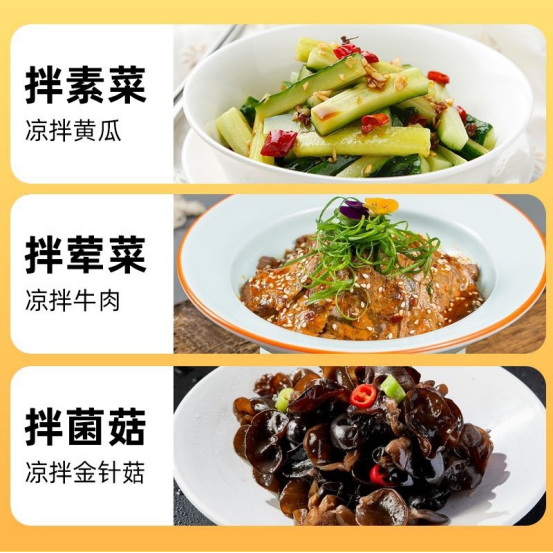 这款酸辣凉拌汁对各类食材都很适配,拿它拌个水煮菜,就是咱们中国人自己的沙拉,吃起来很上头! 除了做各种拌菜,还能做酸辣鸡丝、香菜牛肉、酸辣鸡爪、捞汁小海鲜更是绝杀,不用费劲巴拉调配料汁,用它味道准没错!