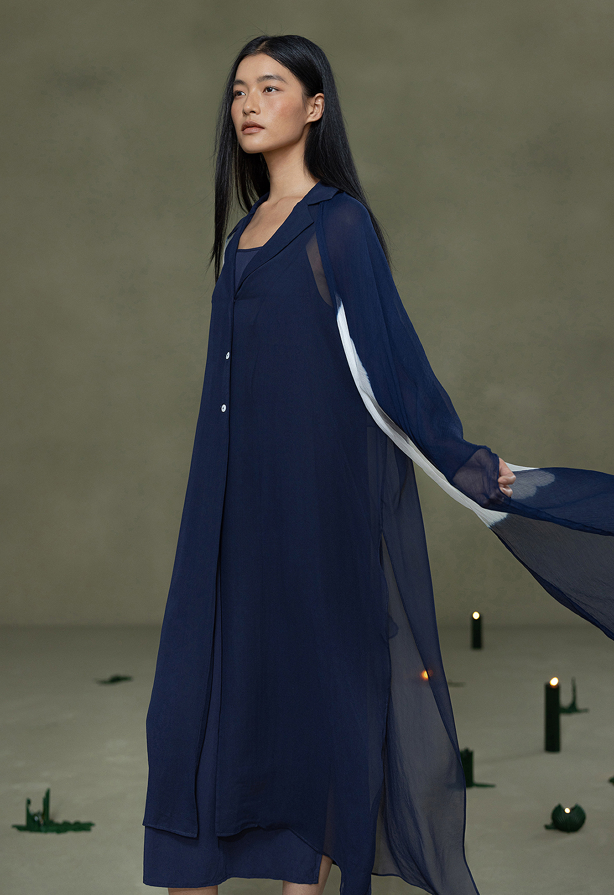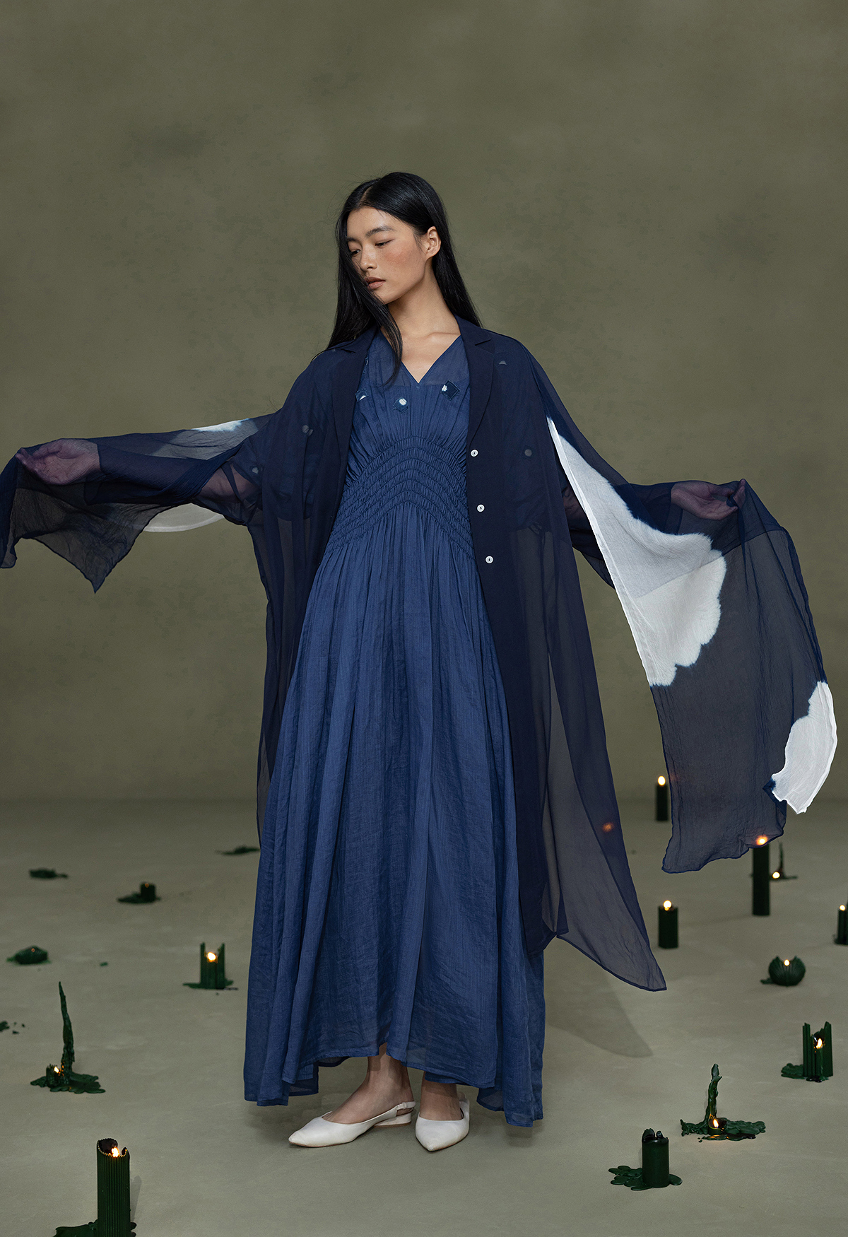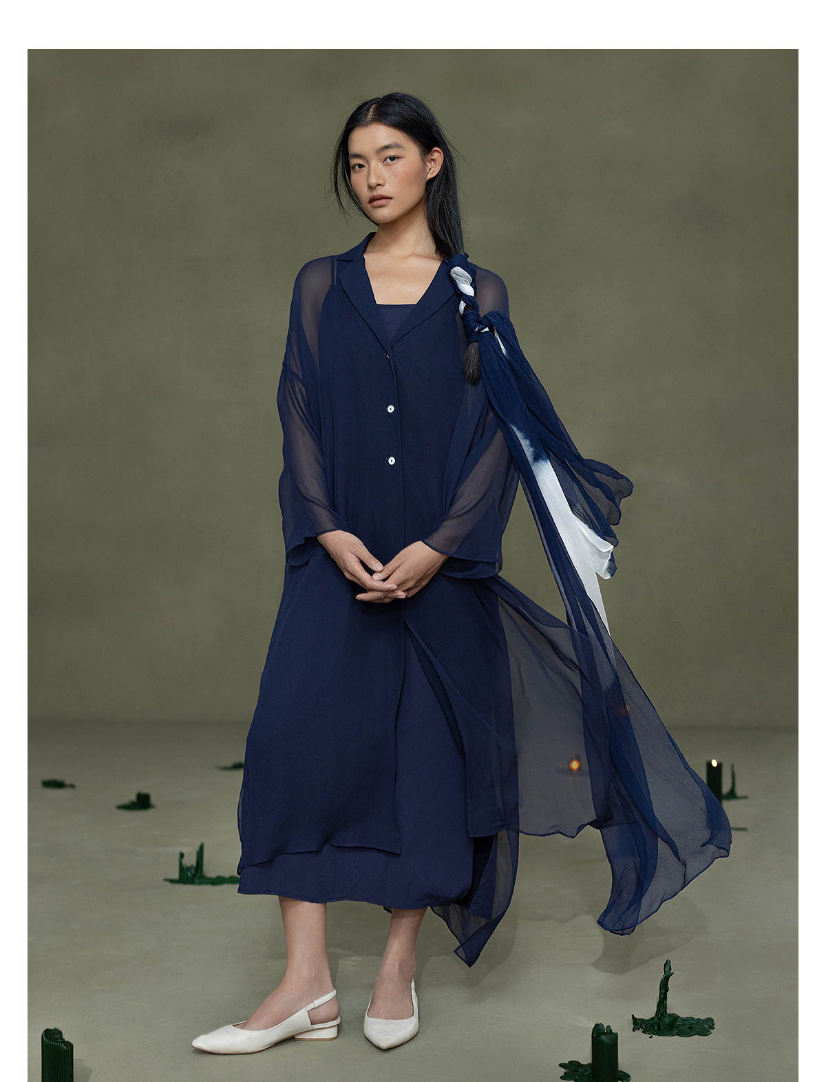 【林栖设计小店】植物染色|手工花绞真丝宽松百搭2026春新款连衣裙三件套1961027