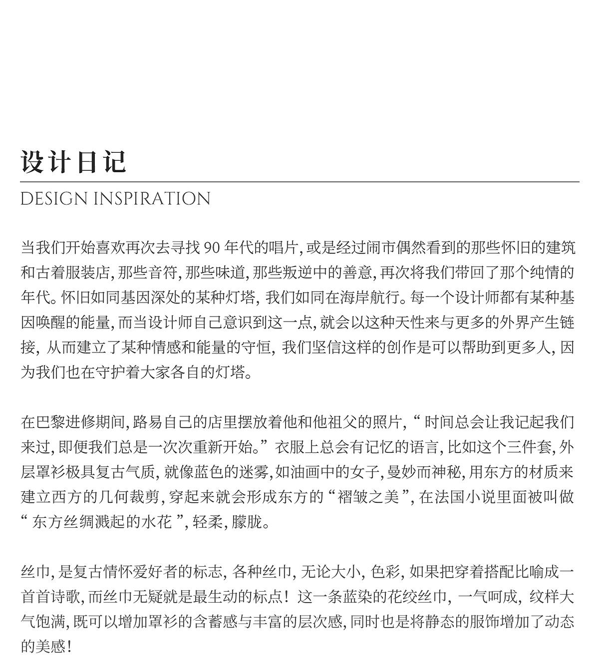 - hi~我是林栖 很高兴你也在关注和热爱着传统手工艺 我想让你穿上 用传统手工艺做出的、不输给国外奢侈品的衣服