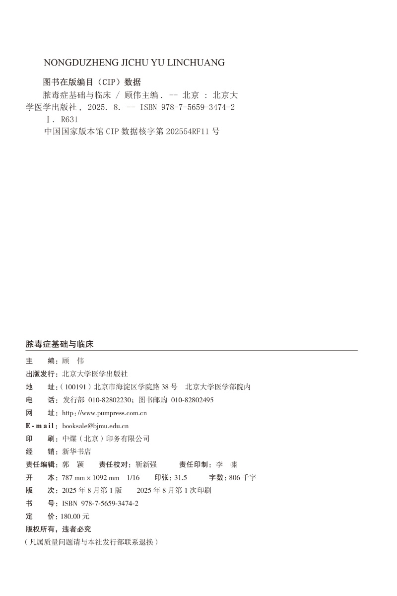 脓毒症基础与临床 顾伟 主编 系统且全面的阐述脓毒症这一疾病 注重理论与实践相结合 内容丰富 新颖且全面 北京大学医学出版社