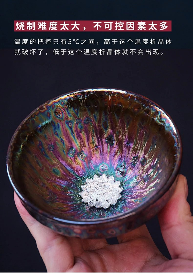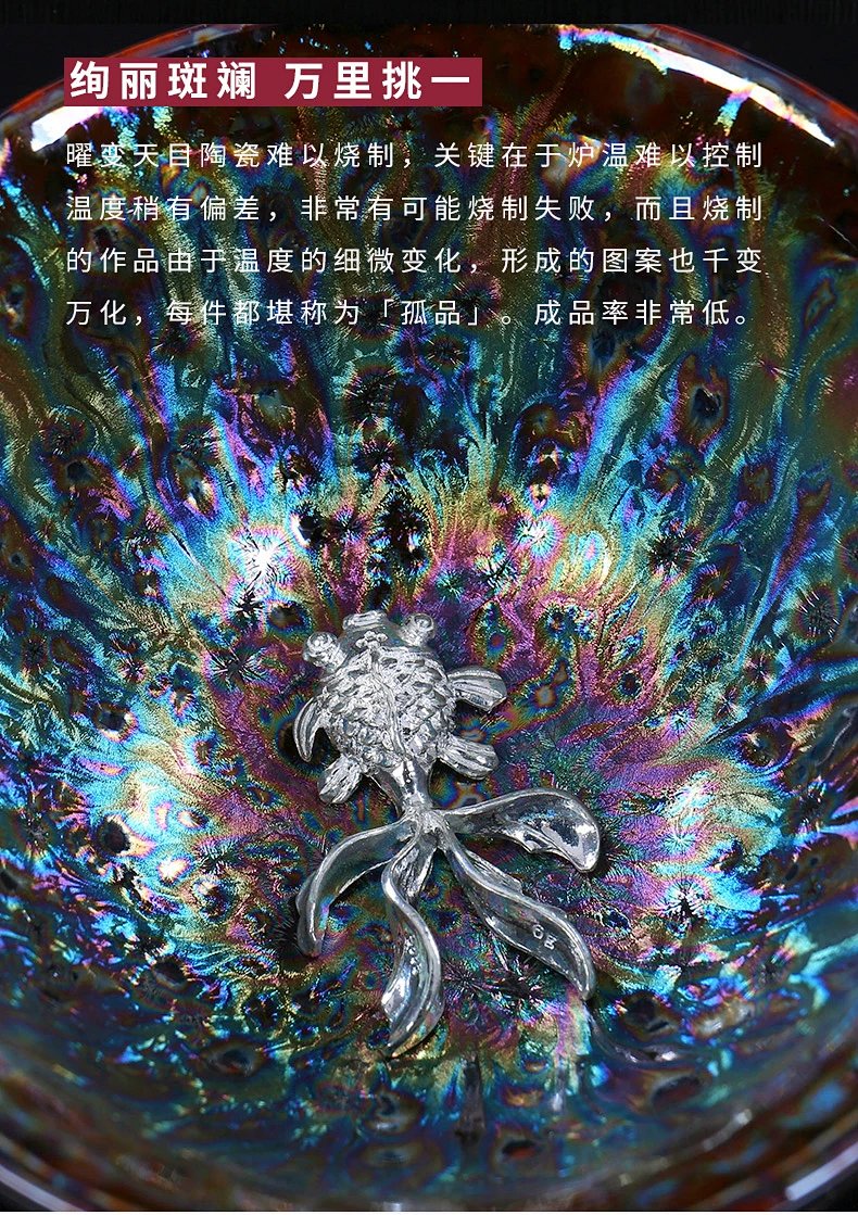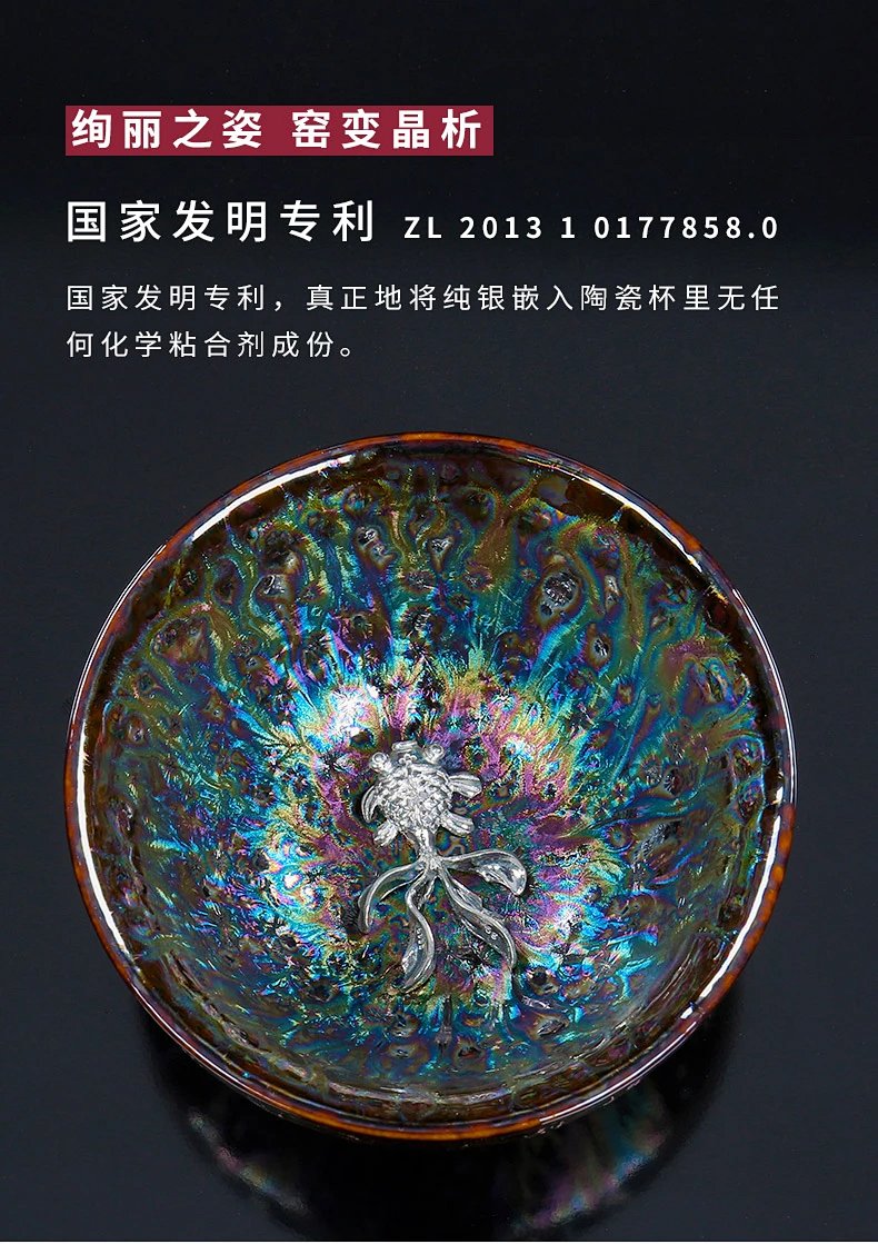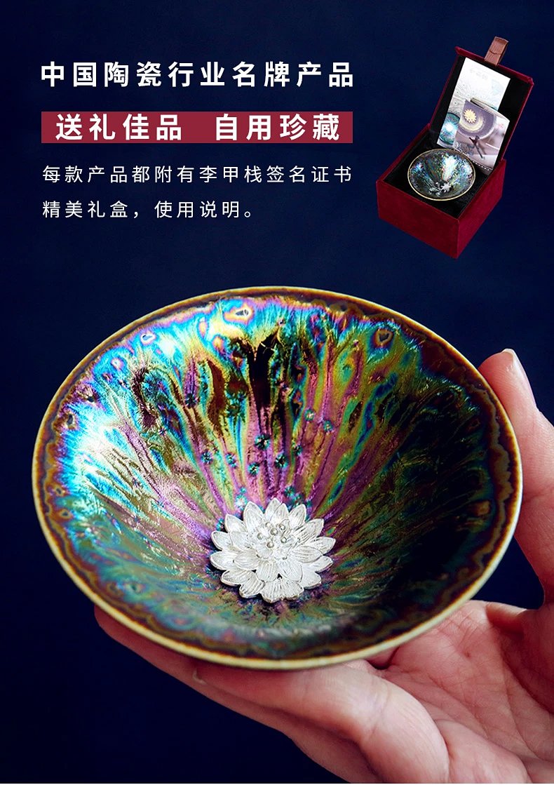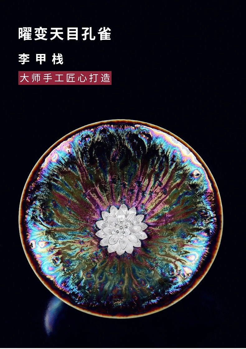 甲盏窑 李甲栈 曜变孔雀天目盏 建盏纯银饰杯 功夫品茗杯茶杯主人杯 纯银镶嵌