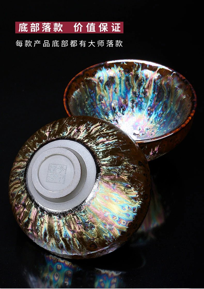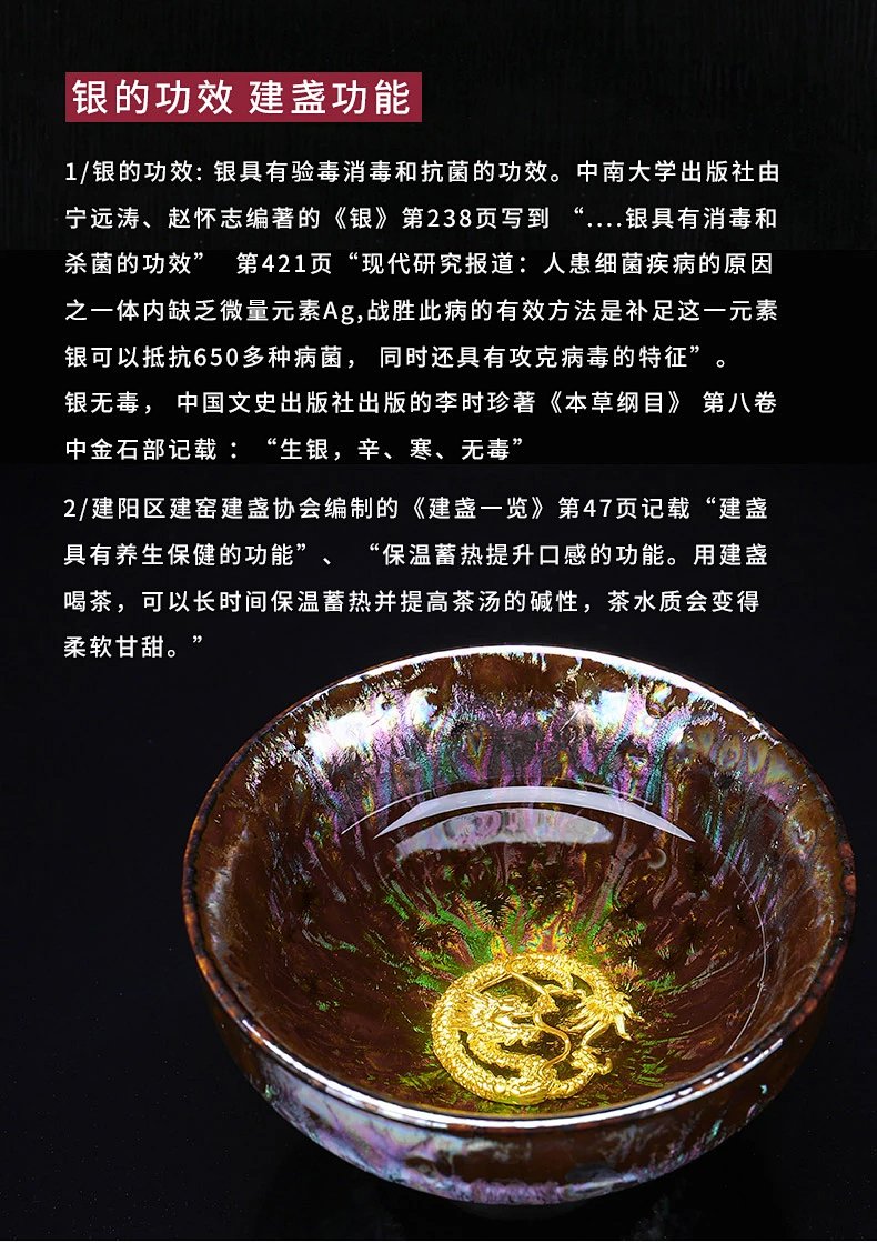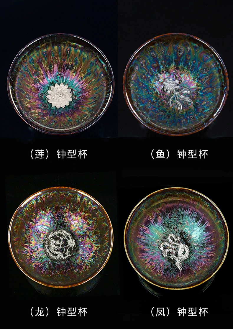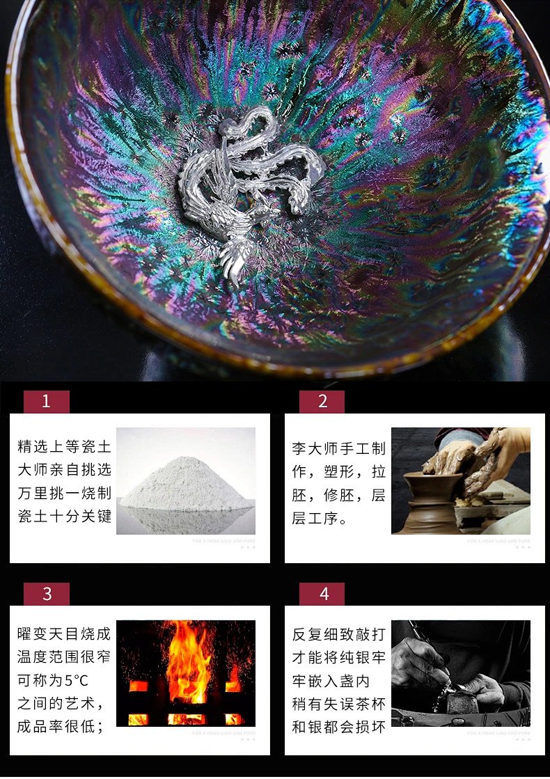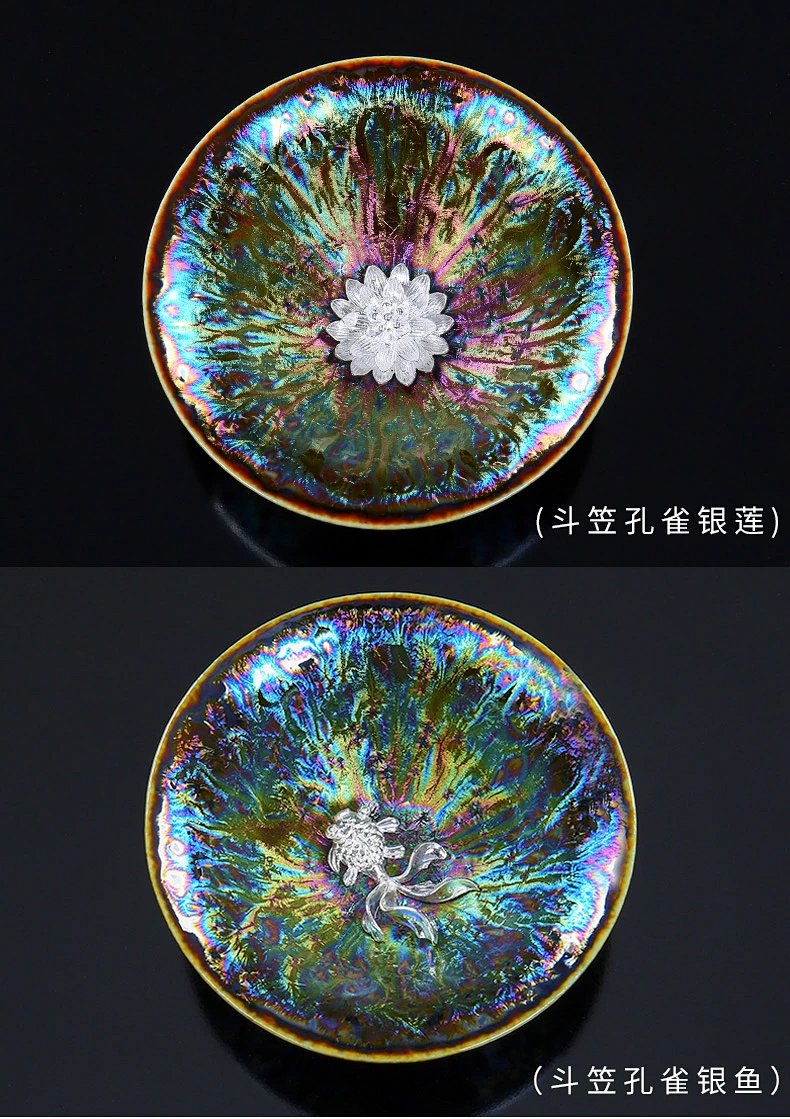 甲盏窑 李甲栈 曜变孔雀天目盏 建盏纯银饰杯 功夫品茗杯茶杯主人杯 纯银镶嵌