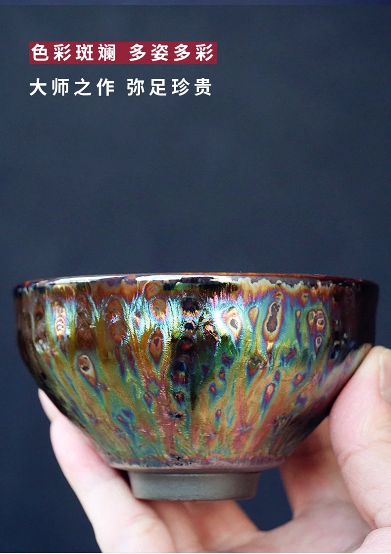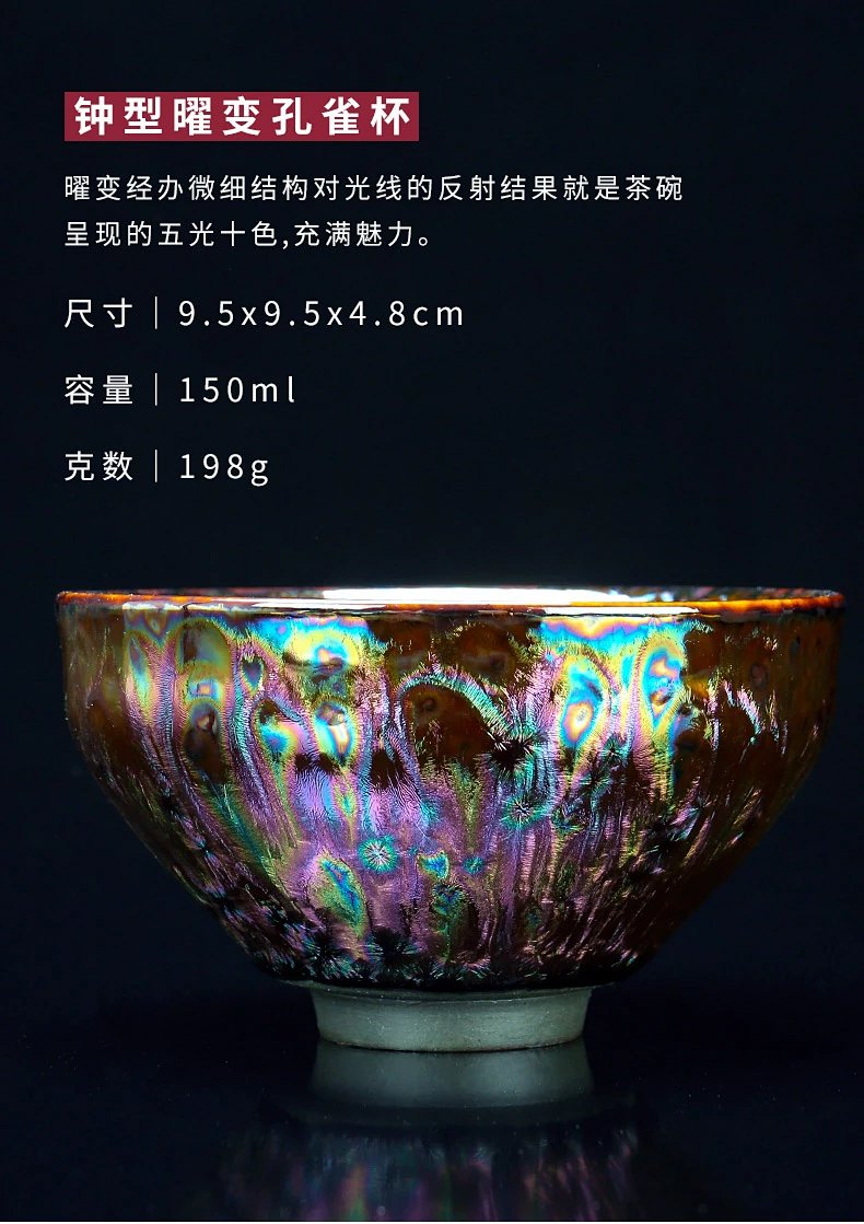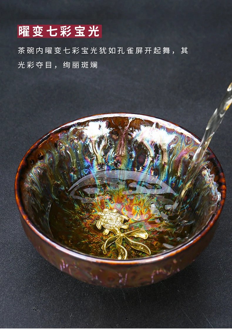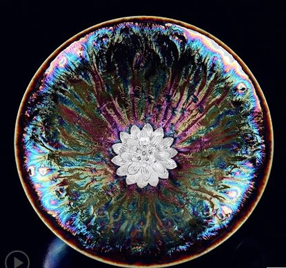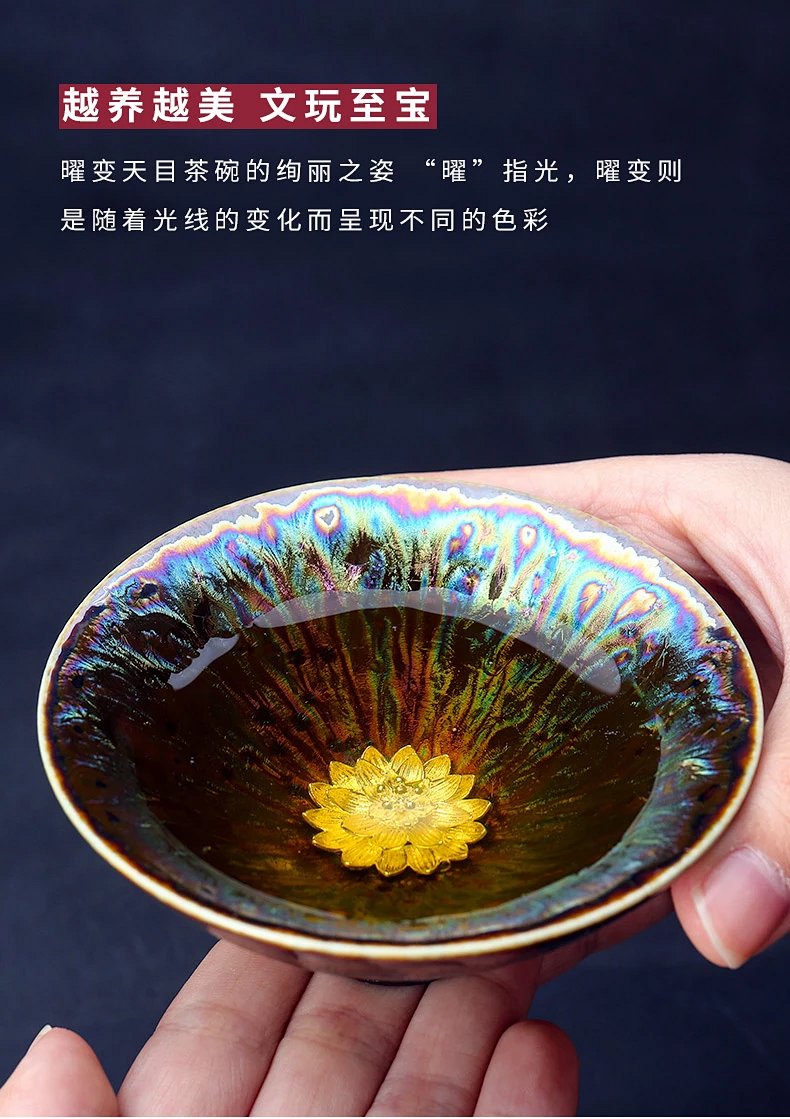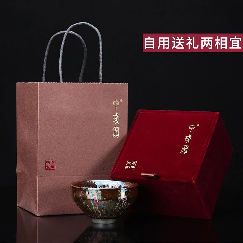 甲盏窑 李甲栈 曜变孔雀天目盏 建盏纯银饰杯 功夫品茗杯茶杯主人杯 纯银镶嵌