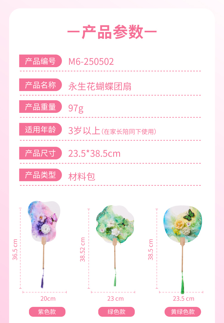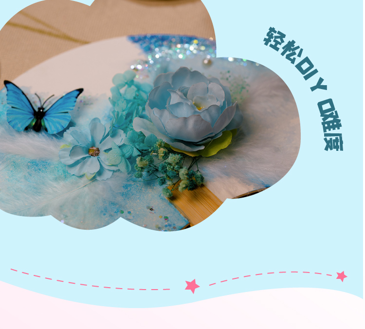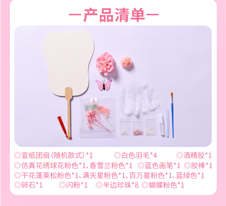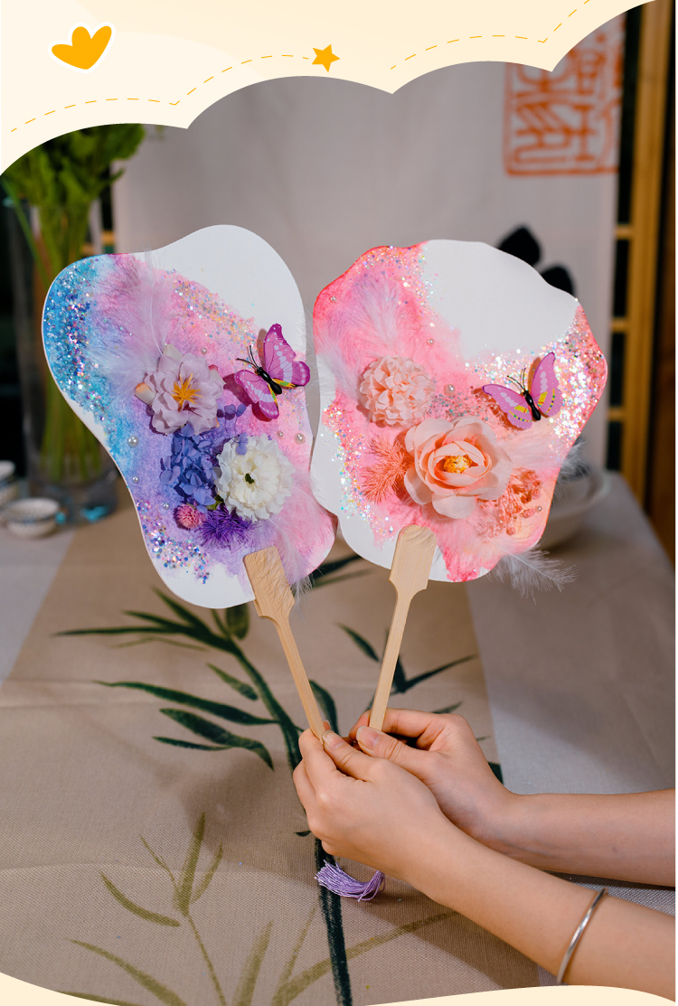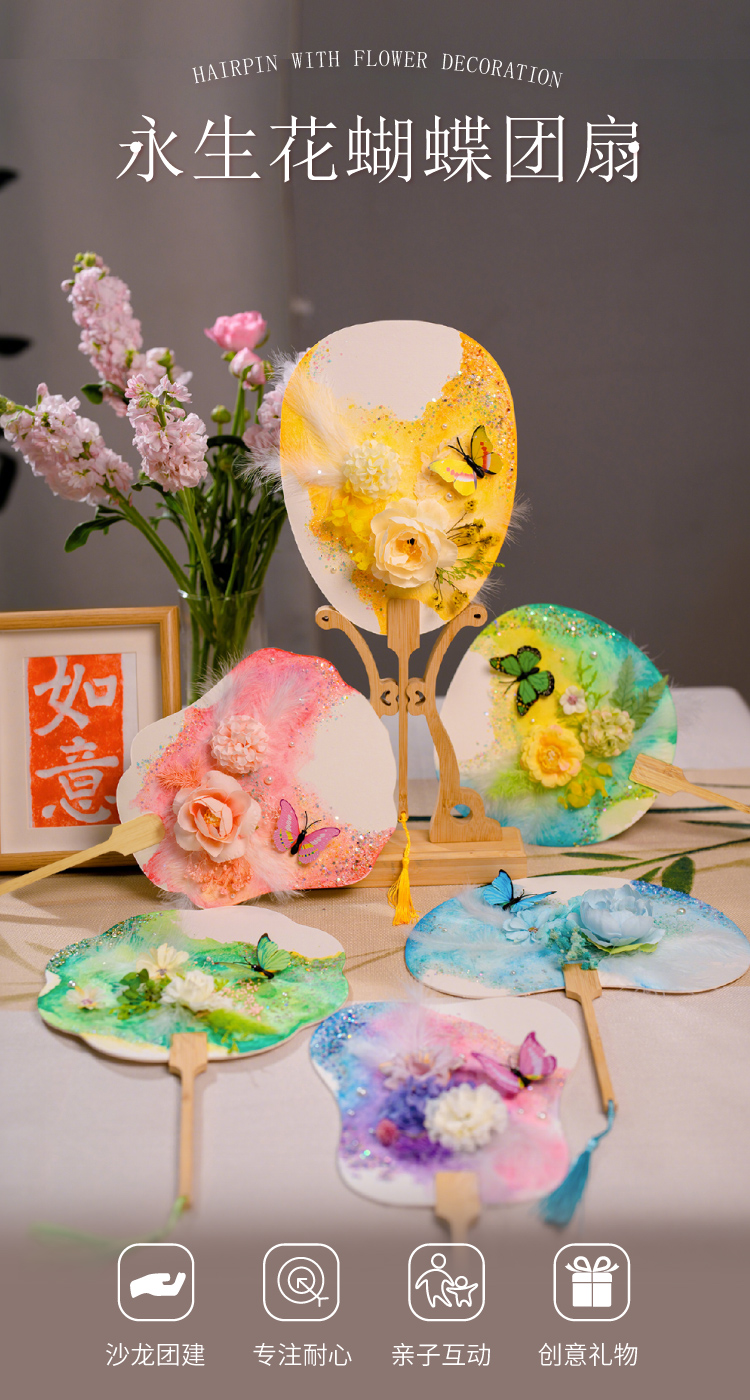 母亲节礼物永生花蝴蝶团扇手工diy儿童扇子材料包暖场活动幼儿园