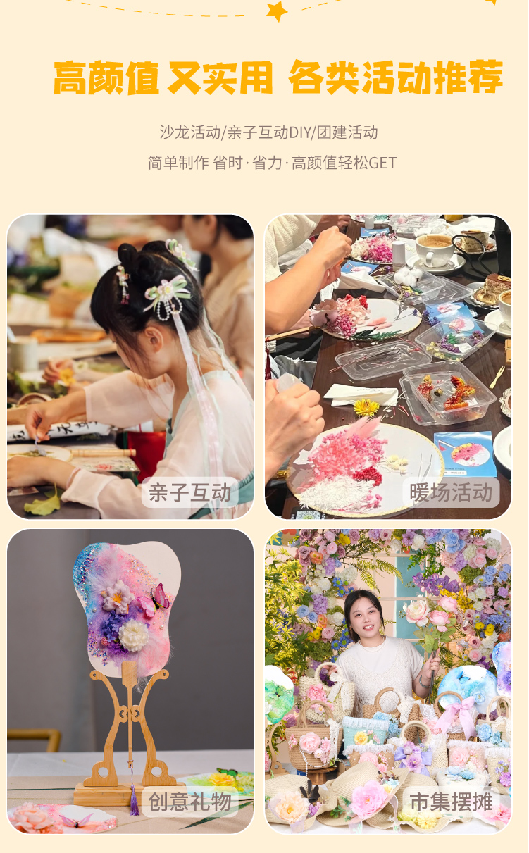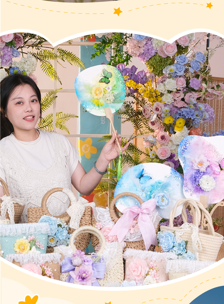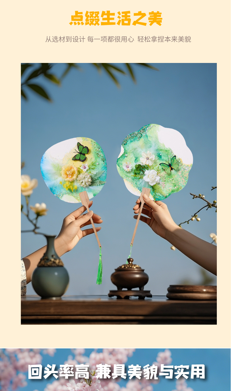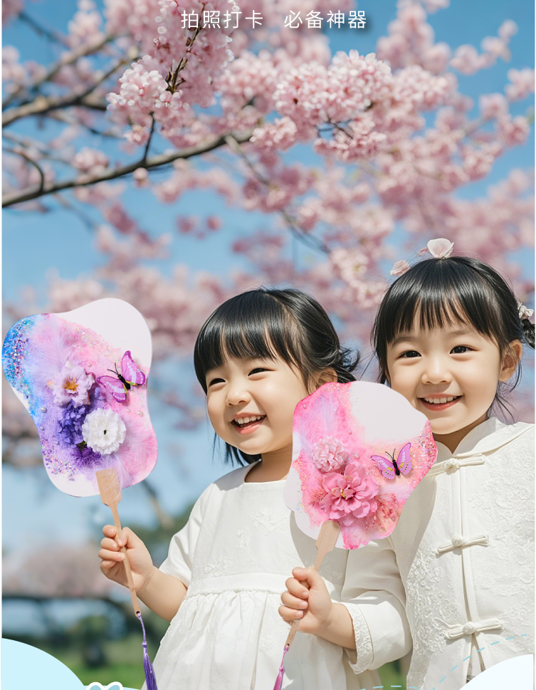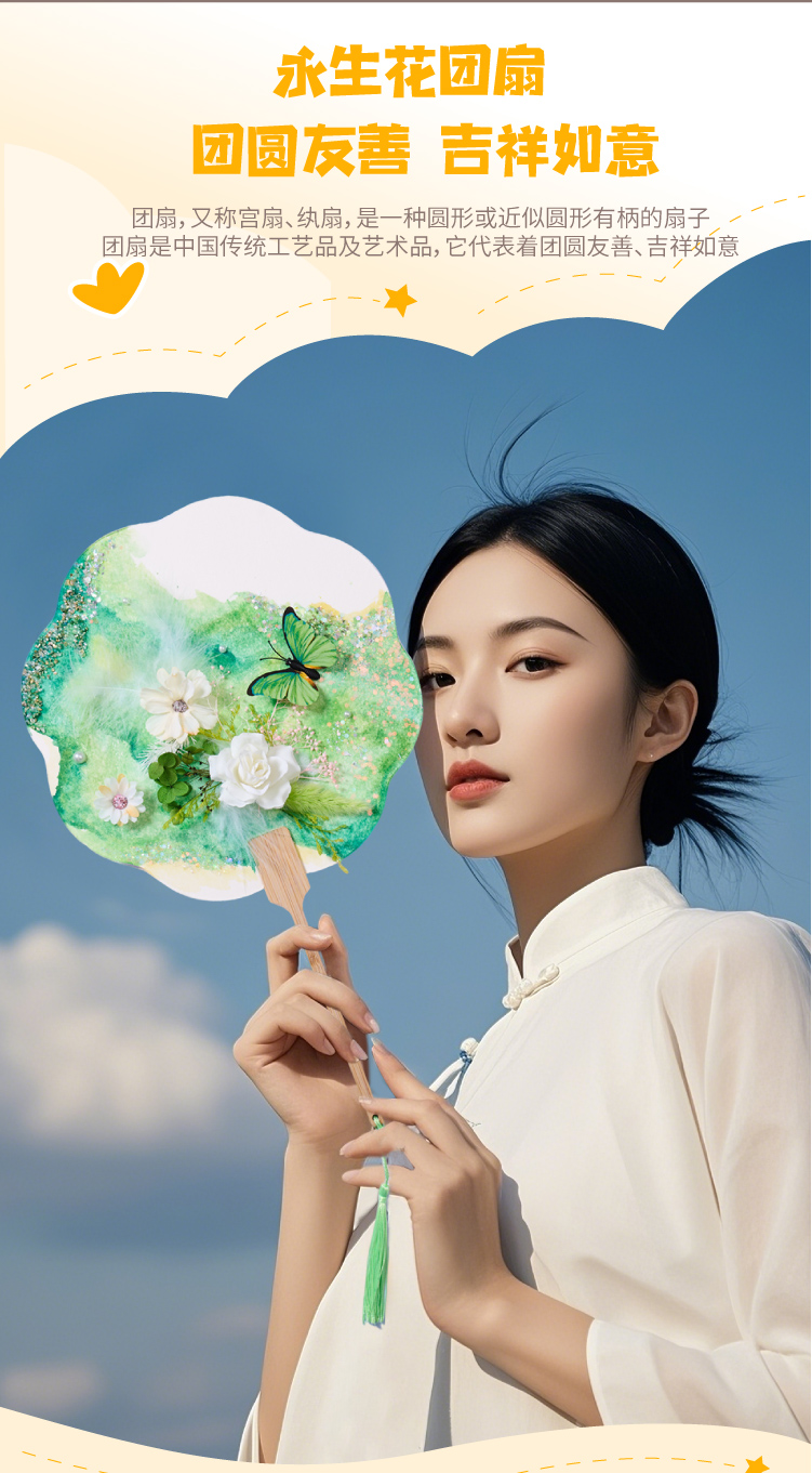 母亲节礼物永生花蝴蝶团扇手工diy儿童扇子材料包暖场活动幼儿园