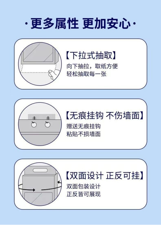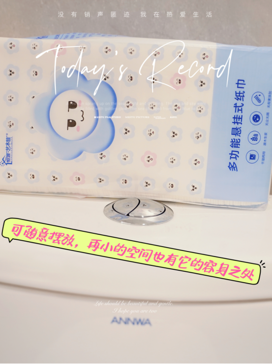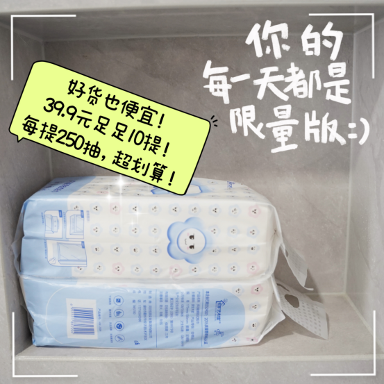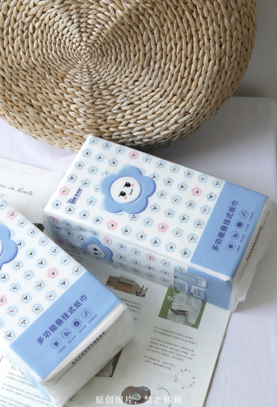 每一张纸巾上都有精美的印花呦 而且还是壁挂式,不占空间 厨房、客厅、卧室、洗手间各放一提 从底部抽取不要太方便好吗,纸张又大又厚实~ 简直是我这种懒人的福音 姐妹们快冲啊,太划算了!!