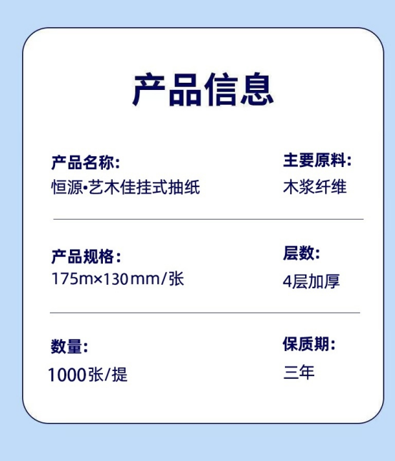 可以挂起来的抽纸 一大提可以抽好久! 日常挂在卫生间/客厅,随抽随用太方便了 🔺4层加厚用料足,湿水完整不掉屑,非常厚实 🔺纸张细密、气垫式压花,外柔内韧,拉扯不易断 🔺优选原生木浆纤维,不含荧光增白剂 🔺悬挂式底部抽取 方便易抽 实在好用