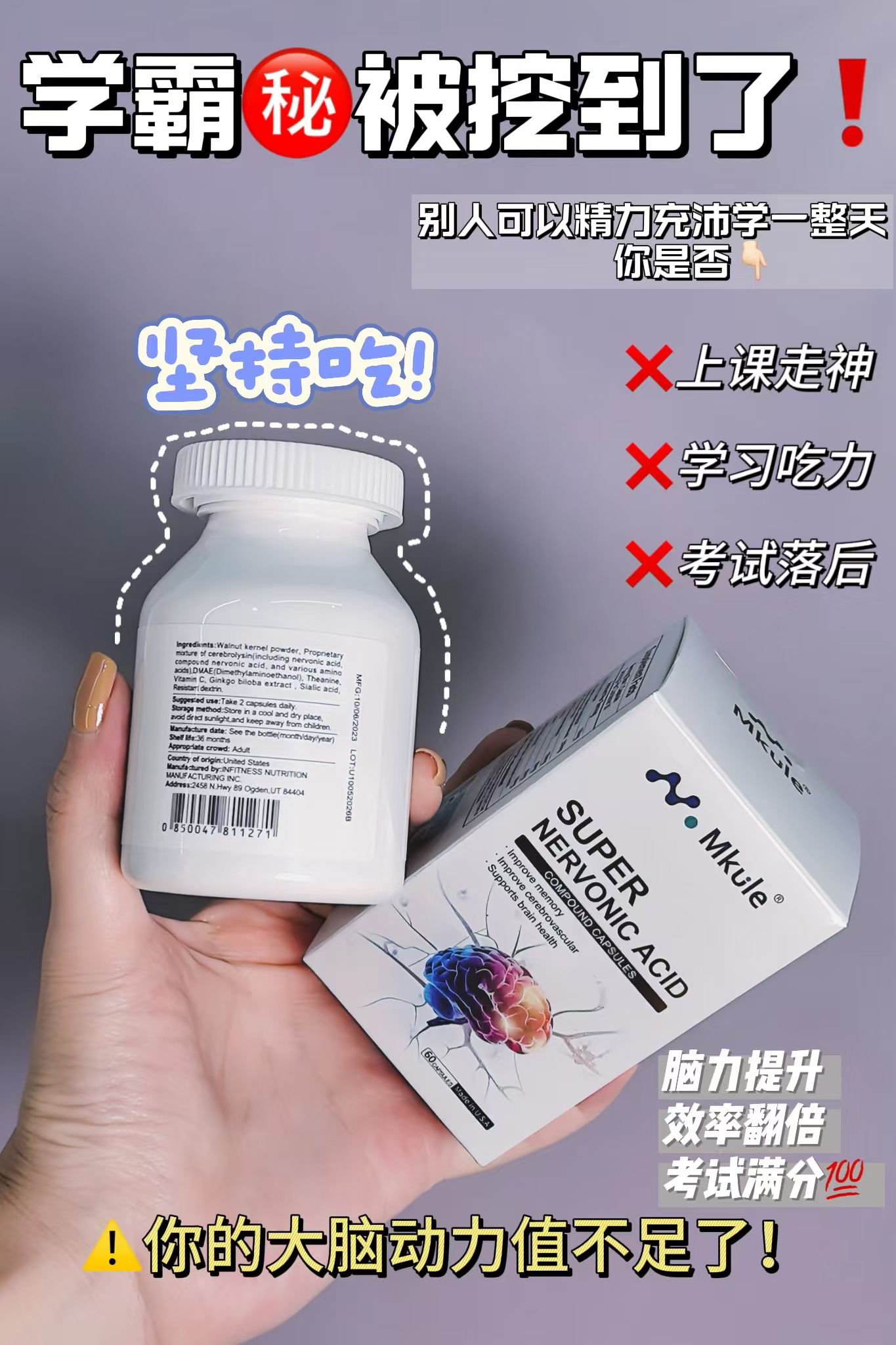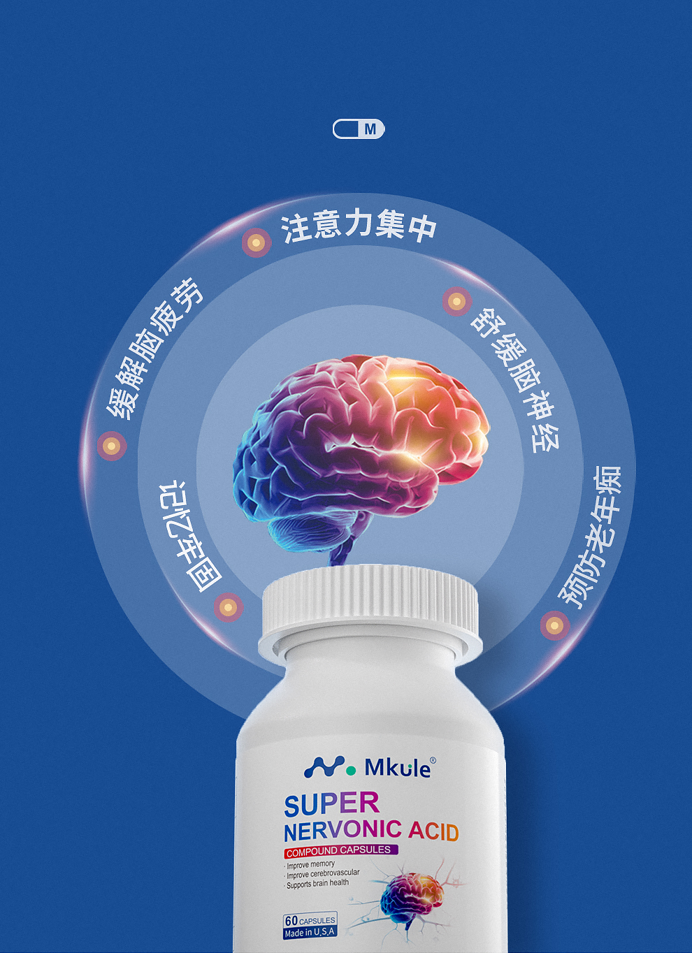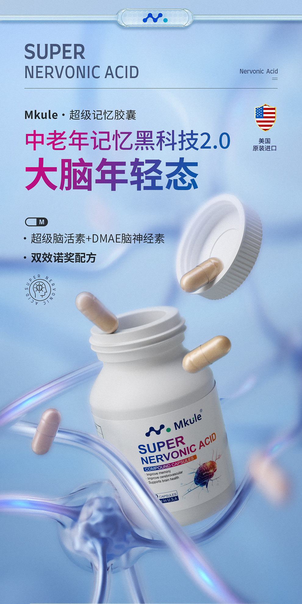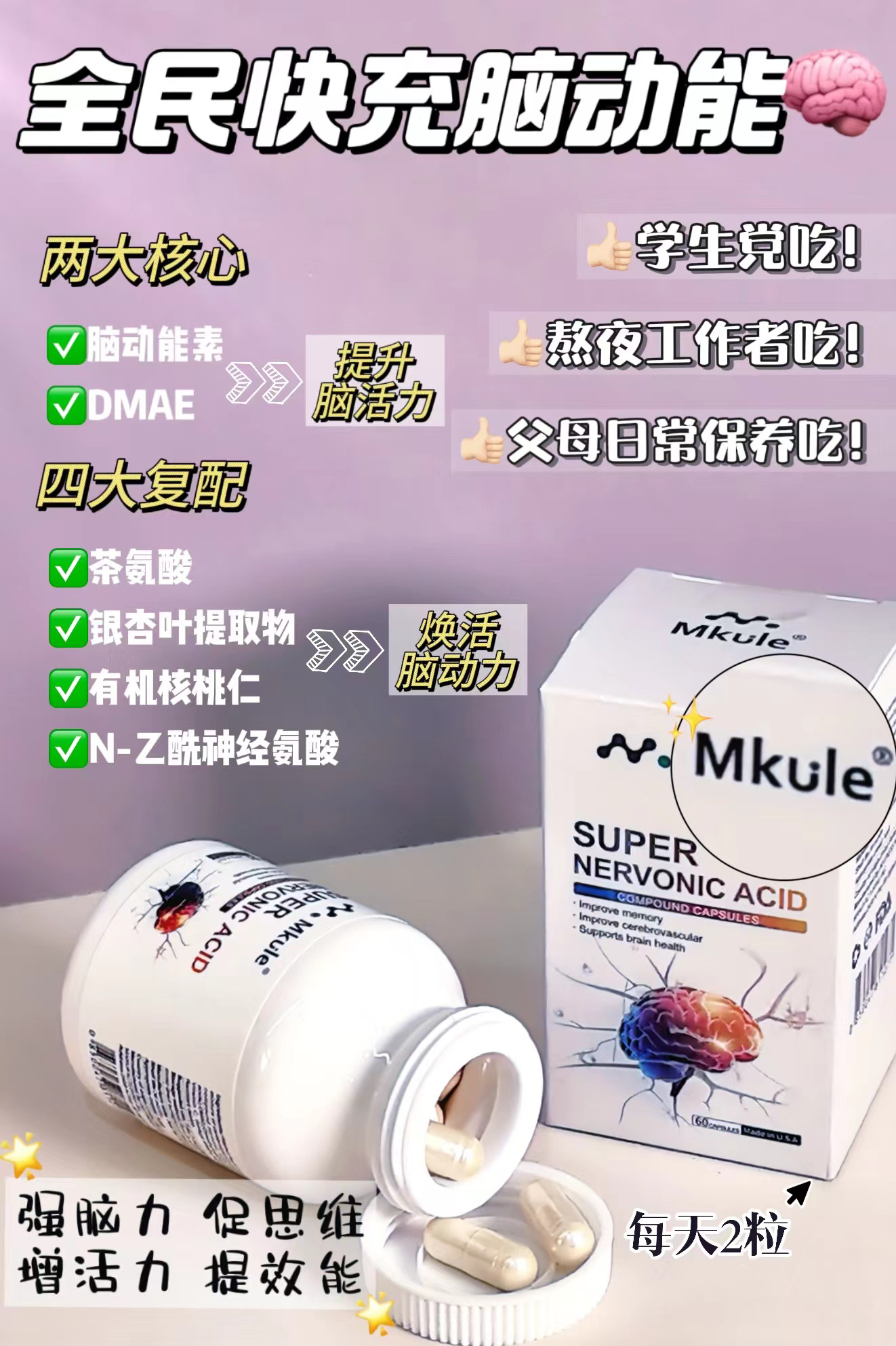 ⁵近效清仓美国进口【专研脑配方胶囊】 脑神经素+ 复合脑活素+茶叶茶氨酸+ N-乙酰神经氨酸 有效期到26.10 6岁及以上 60粒/瓶 YY05-QTT-SA