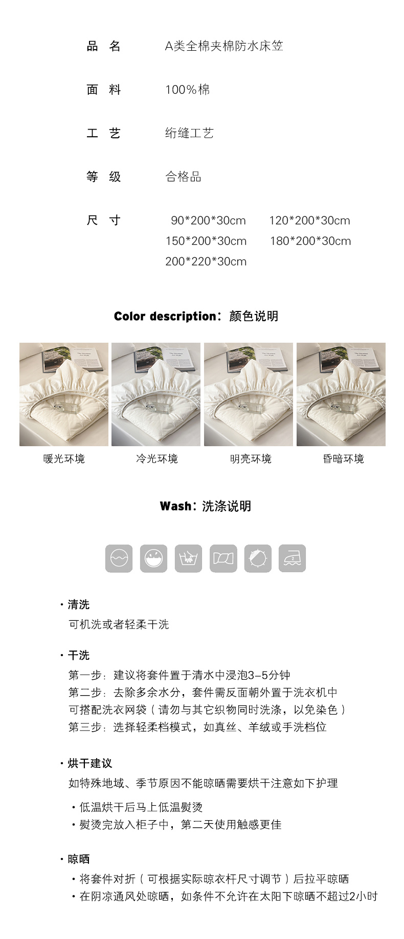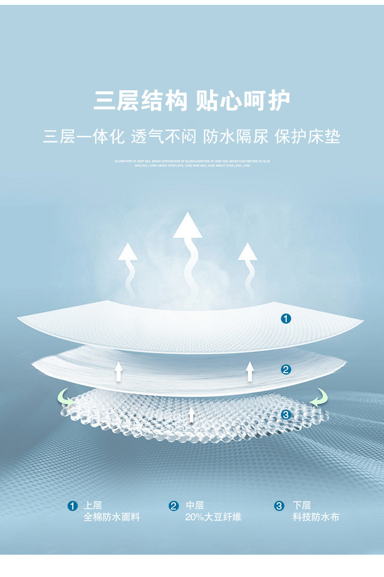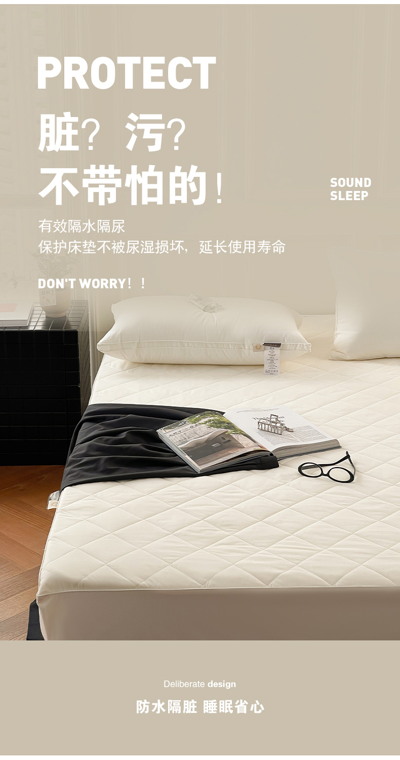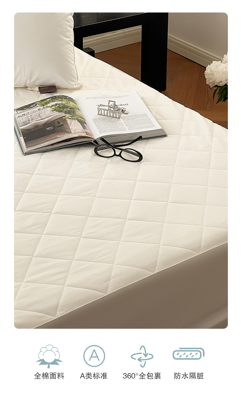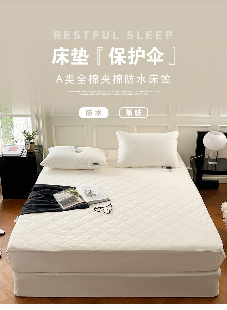 全棉A类三防大豆夹棉床笠 防水隔尿隔污床垫保护垫