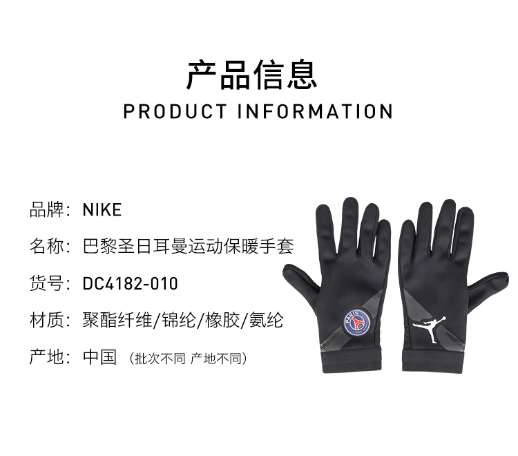 NIKE/耐克巴黎乔丹足球运动休闲训练保暖手套男DC4182010