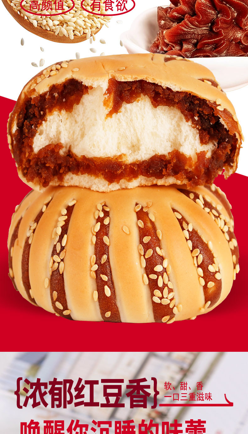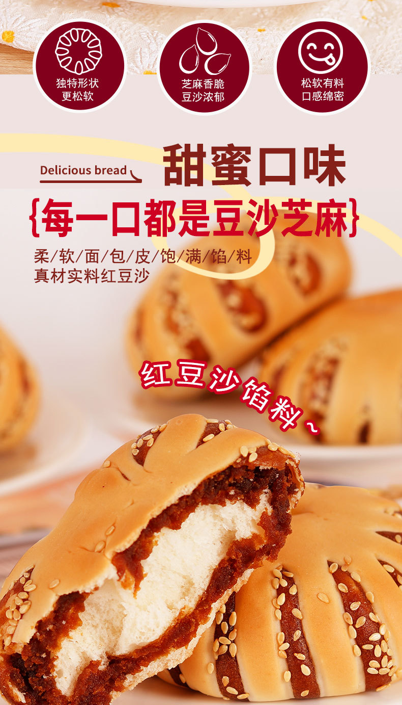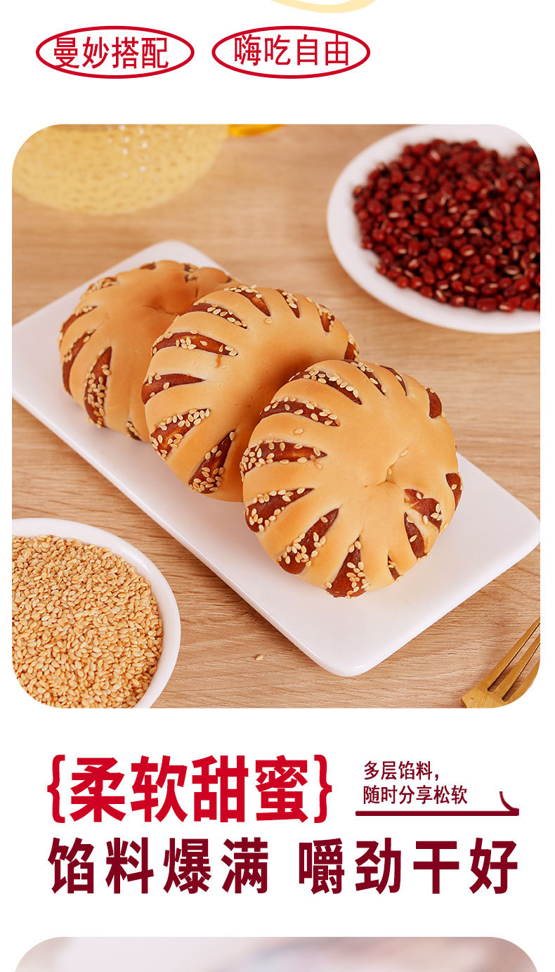【超好吃❗️红豆沙+芝麻面包圈】0反式脂肪酸,馅料爆满,营养加倍,早餐标配!老式豆沙馅1kg整箱手撕红豆夹心欧包网红爆款零食开学季