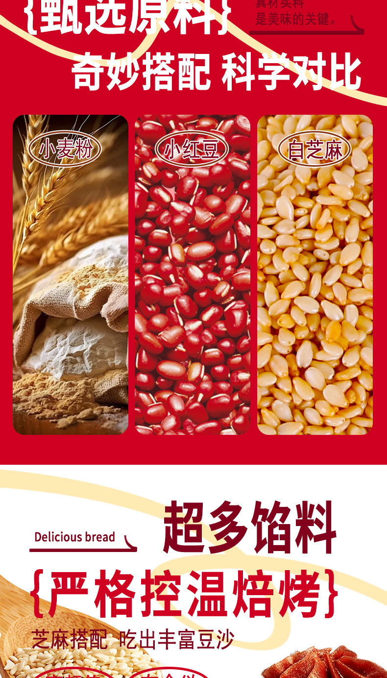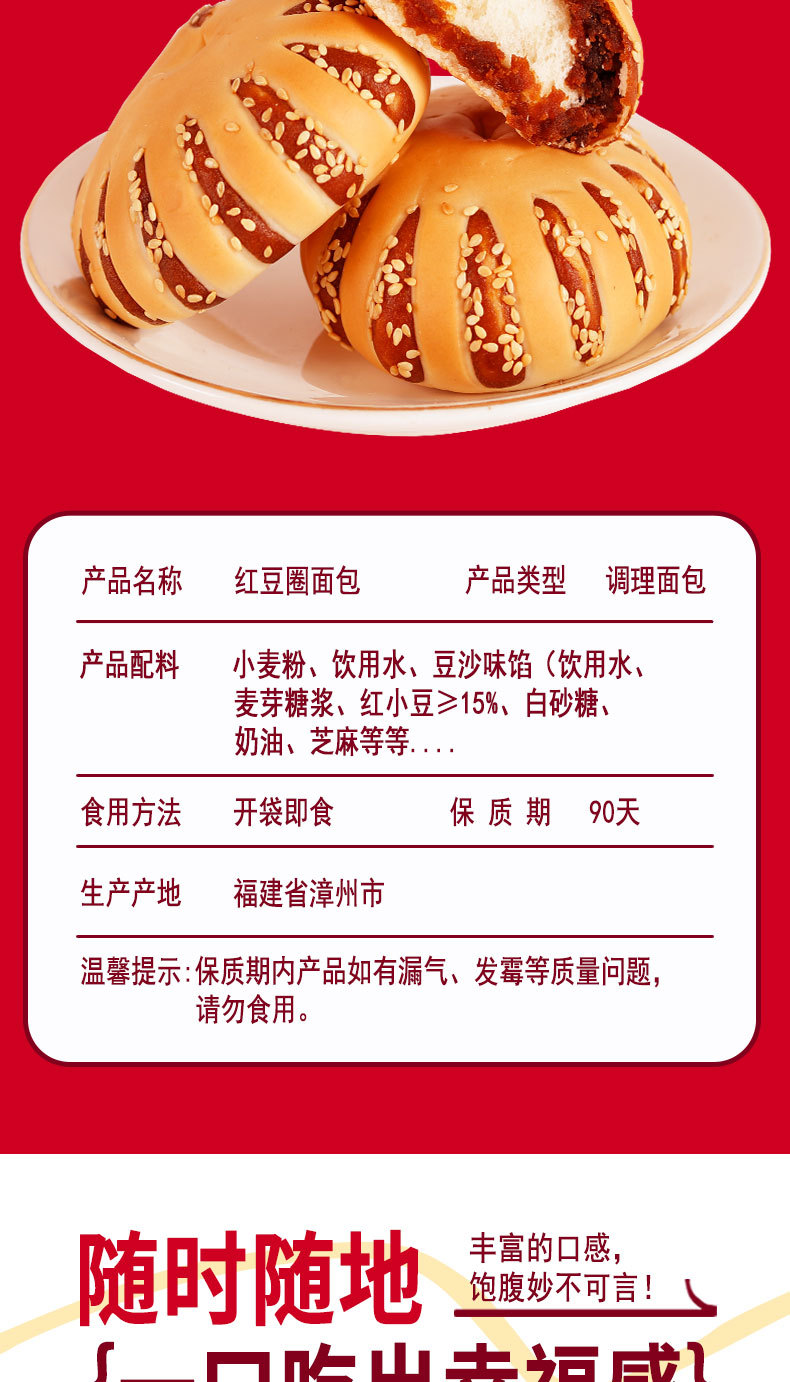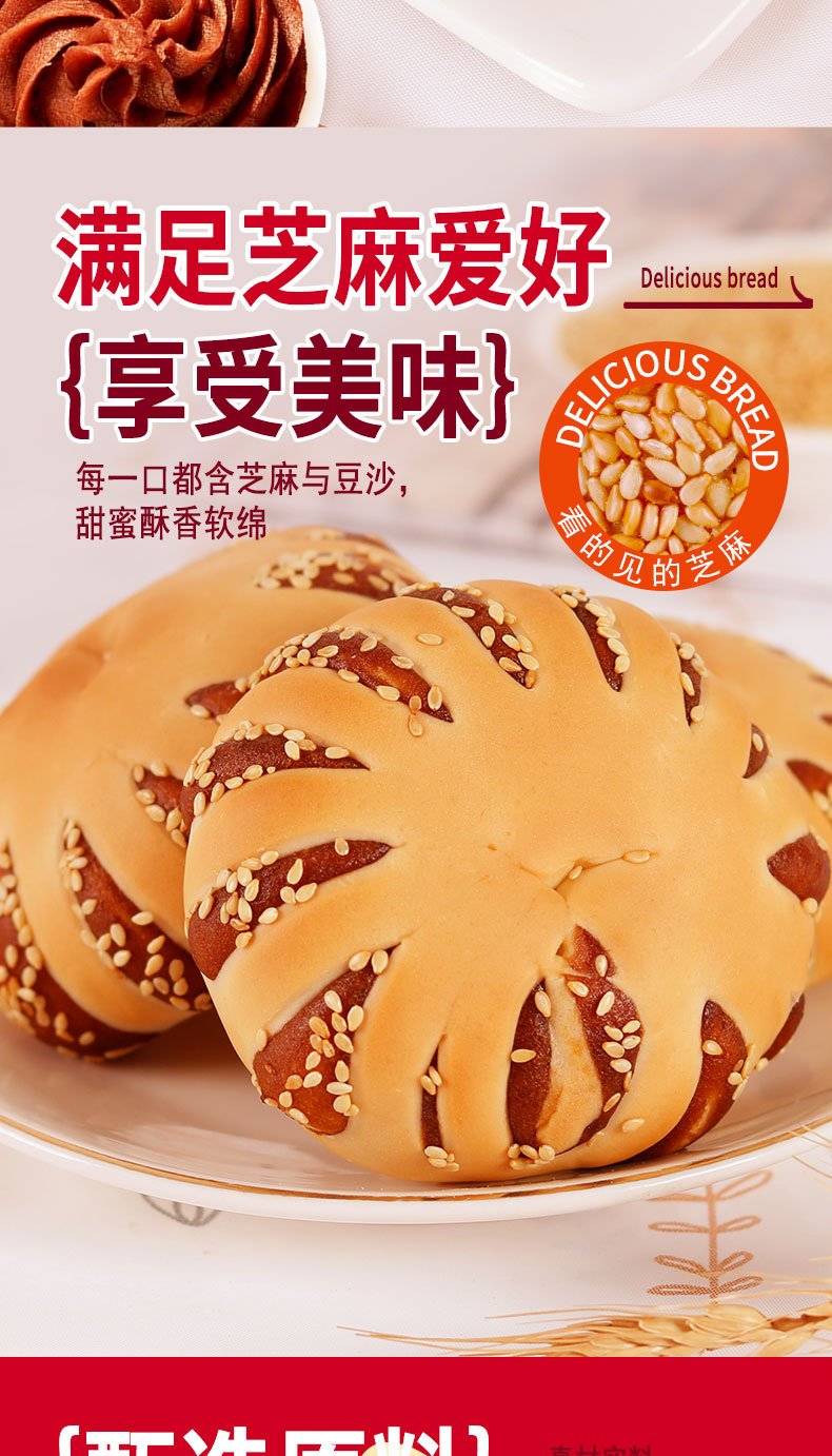 【超好吃❗️红豆沙+芝麻面包圈】0反式脂肪酸,馅料爆满,营养加倍,早餐标配!老式豆沙馅1kg整箱手撕红豆夹心欧包网红爆款零食开学季
