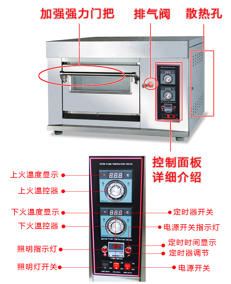 注:普通版燃气烤箱内部不含有火山石板,若要内置火山石板请购买豪华版烤箱。